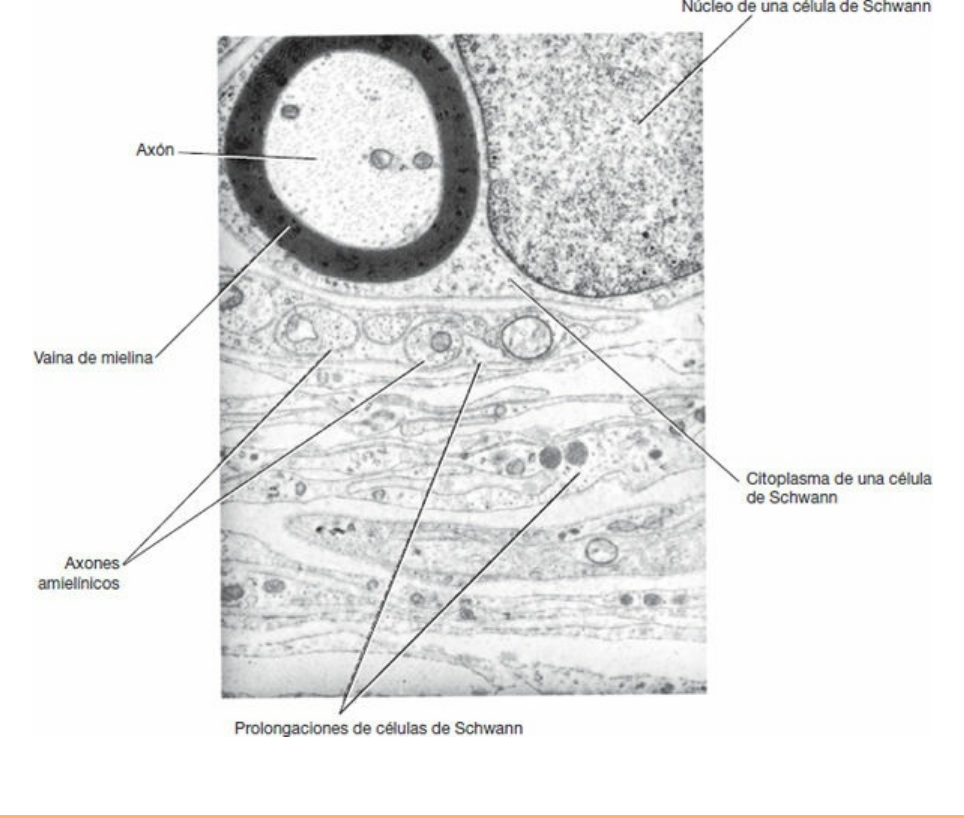 Figura 3-8 Microfotografía electrónica de un corte transversal de una fibra nerviosa mielínica y de varias fibras