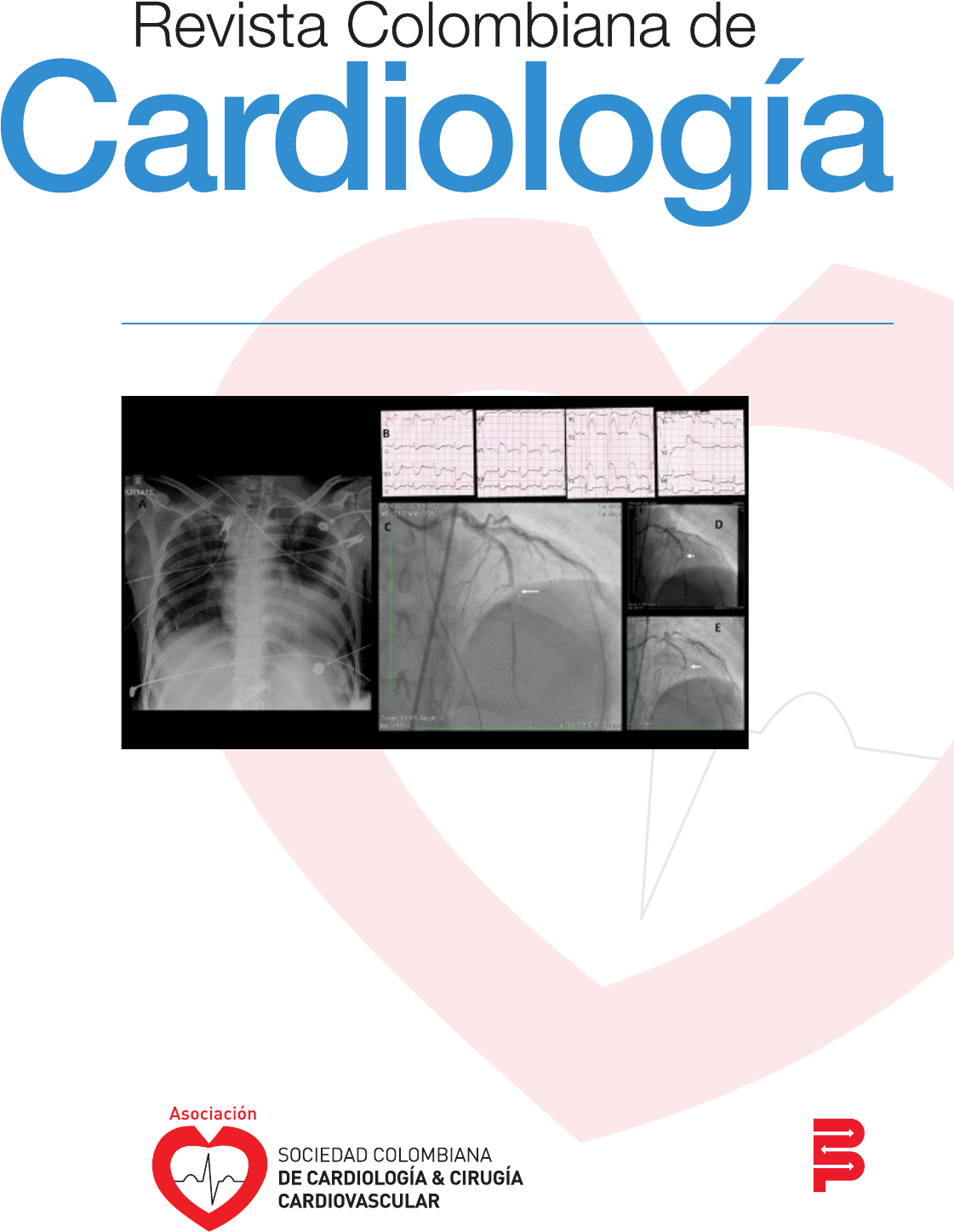 Órgano oficial de la Órgano oficial de la Volumen 29 Número 1 Enero / Febrero 2022 ISSN: 0120-5633 www.rccardiologia.com www.revcolcard.org PERMANYER www.permanyer.com • Riesgo cardiovascular en la menopausia • Seguimiento remoto y huella de carbono • Prevalencia de hipertensión arterial • PSAP por tipo de terapia renal • Ventilación no invasiva y edema pulmonar • Síndrome coronario agudo en edad temprana • Obesidad y riesgo cardiovascular • Anticoagulación en población pediátrica • Corrección quirúrgica de cardiopatías congénitas Órgano oficial de la Órgano oficial de la PERMANYER www.permanyer.com EDITOR JEFE / EDITOR IN CHIEF Darío Echeverri Departamento de Cardiología, La Cardio/Fundación Cardioinfantil, Bogotá, Colombia EDITOR EMÉRITO / EMERITUS EDITOR Jorge León-Galindo Departamento de Cardiología, Fundación Santa Fe de Bogotá, Bogotá, Colombia EDITORES ASOCIADOS / ASSOCIATE EDITORS Claudia V. Anchique Servicio de Cardiología, Mediagnóstica Tecmedi S.A.S., Duitama, Colombia Dagnóvar Aristizábal Centro Clínico y de Investigación SICOR, Medellín, Colombia Julián M. Aristizábal Servicio de Electrofisiología, Clínica CES, Medellín, Colombia Alberto Barón Departamento de Cardiología, Clínica de Marly, Bogotá, Colombia Luis M. Benítez Departamento de Cardiología, Centro Médico Clínica de Occidente, Cali, Colombia Ricardo Bohórquez Departamento de Cardiología, Hospital Universitario San Ignacio, Bogotá, Colombia Marisol Carreño Servicio de Cirugía Cardiovascular Adultos, Cardiología, Hospital Militar Central, Bogotá, Colombia Alejandro Escobar Servicio de Cirugía Cardiovascular, Centro Cardiovascular Somer Incare, Medellín, Colombia Edgar Hernández Departamento de Cardiología, La Cardio/Fundación Cardioinfantil, Bogotá, Colombia Víctor M. Huertas Instituto de Cardiopatías Congénitas, La Cardio/Fundacion Cardioinfantil, Bogotá, Colombia Nicolás I. Jaramillo Unidad de Hemodinamia, Clínica Las Américas, Medellín, Colombia Fernando Lizcano Centro de Investigación Biomédica, Universidad de La Sabana, Bogotá, Colombia Patricio López Fundación Oftalmológica de Santander - Clínica FOSCAL, Bucaramanga, Colombia Dora I. Molina Facultad de Ciencias para la Salud, Universidad de Caldas, Manizales, Colombia Guillermo Mora Servicio de Electrofisiología, Fundación Santa Fe de Bogotá, Bogotá, Colombia Federico Núñez Departamento de Cirugía Cardiovascular, Fundación Clínica Shaio, Bogotá, Colombia Alejandro Orjuela Servicio de Electrofisiología, Hospital Universitario Santa Sofía de Caldas, Manizales, Colombia Ana C. Palacio Departamento de Cardiología, Fundación Santa Fe de Bogotá, Bogotá, Colombia Clara I. Saldarriaga Unidad de Insuficiencia Cardíaca, Clínica Cardiovid, Medellín, Colombia Néstor Sandoval Instituto de Cardiopatías Congénitas, La Cardio/Fundación Cardioinfantil, Bogotá, Colombia Carlos E. Uribe Servicio de Hemodinamia, Clínica Cardio VID, Hospital Pablo Tobón Uribe (HPTU), Medellín, Colombia Miguel Urina Fundación del Caribe para la Investigación Biomédica, Barranquilla, Colombia Sebastián Vélez Departamento de Cardiología, Hospital Pablo Tobón Uribe (HPTU), Medellín, Colombia COMITÉ CIENTÍFICO INTERNACIONAL / INTERNATIONAL SCIENTIFIC COMMITTEE Juan J. Badimón Atherothrombosis Research Unit, Cardiovascular Institute, New York, Estados Unidos Tomasa Centella Área de Cardiología, Hospital “Ramón y Cajal”, Madrid, España José G. Diez Interventional Cardiology, Texas Heart Institute, Texas, Estados Unidos José R. González-Juanatey Área de Cardiología, Hospital Clínico Universitario de Santiago de Compostela, Santiago de Compostela, España Andrés Iñiguez Área de Cardiología, Complejo Hospitalario Universitario de Vigo, Vigo, España Pedro Moreno Cardiology Research, Interventional Cardiology, Mount Sinai Hospital, New York, Estados Unidos Carlos A. Morillo Department of Medicine, McMaster University, Hamilton General Hospital, Hamilton, Canada Daniel J. Piñeiro Departamento de Medicina, Universidad de Buenos Aires, Buenos Aires, Argentina Héctor R. Villarraga Division of Cardiovascular Diseases, Mayo Clinic, Rochester Minessota, Estados Unidos COMITÉ DE ARBITRAJE / REVIEW COMMITTEE Ana C. Palacio Departamento de Cardiología, Fundación Santa Fe de Bogotá, Bogotá, Colombia Dagnóvar Aristizábal Centro Clínico y de Investigación SICOR, Medellín, Colombia John Bustamante Centro de Bioingeniería, Universidad Pontificia Bolivariana, Medellín, Colombia Nicolás I. Jaramillo Unidad de Hemodinamia, Clínica Las Américas, Medellín, Colombia Néstor Sandoval Instituto de Cardiopatías Congénitas, La Cardio/Fundación Cardioinfantil, Bogotá, Colombia COMITÉ DE COMUNICACIÓN DIGITAL / DIGITAL COMMUNICATION COMMITTEE Julián M. Aristizábal Servicio de Electrofisiología, Clínica CES, Medellín, Colombia Darío Echeverri Departamento de Cardiología, La Cardio/Fundación Cardioinfantil, Bogotá, Colombia Clara Saldarriaga Unidad de Insuficiencia Cardíaca, Clínica Cardio Vid, Medellín, Colombia Juan H. Del Portillo Servicio de Hemodinamia, La Cardio/Fundación Cardioinfantil, Bogotá, Colombia Juan C. Díaz CES Cardiología, Clínica Las Américas, Clinica Las Vegas, Medellín, Colombia LISTA DE REVISORES / REVIEWERS LIST Pedro Abad Claudia V. Anchique Carlos Arias Dagnóvar Aristizábal Julián M. Aristizábal Álvaro Avezum José R. Azpiri Ana M. Barón César Barrera Daniel Berrocal Juan C. Briceño Andrés F. Buitrago John Bustamante Jaime Cabrales Lina Caicedo Víctor Caicedo Jaime Camacho Paul Camacho Ivonne J. Cárdenas Jonathan Cardona Marisol Carreño Carlos Carvajal Gabriel Cassalett Mauricio Cassinelli Roque A. Córdoba Gina Cuenca Tomás Chalela Juan A. Delgado Gabriel Díaz José F. Díaz Juan C. Díaz Mónica Duarte Mauricio Duque Pedro Forcada Argemiro Fragozo Ángel A. García Juan E. Gómez Mabel Gómez Efraín Gómez Nathal