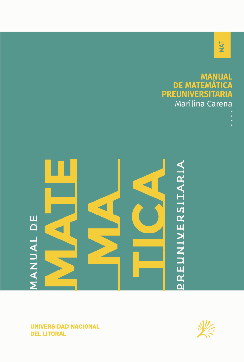 Enrique Mammarella · Rector Claudio Lizárraga · Vicerrector y Secretario de Planeamiento Institucional y Académico Adrián Bonivardi · Decano Facultad de Ingeniería Química Ivana Tosti · Directora Ediciones UNL Universidad Nacional del Litoral Marilina Carena Licenciada en Matemática Aplicada. Doctora en Matemática. Profesora Adjunta (Facultad de Ingeniería Química, Universidad Nacional del Litoral). Investigadora Adjunta del CONICET. Directora y codirectora de diversos proyectos de investigación. Directora de tesis. Este es su primer libro. marilcarena@gmail.com � � � � � � � � � � � � � � � � Carena, Marilina Manual de matemática preuniversitaria / Marilina Carena. - ed . - Santa Fe : Ediciones UNL, � �� � a � . Libro digital, PDF - (Cátedra) Archivo Digital: descarga y online ISBN - - - -��� ��� ��� ��� � � . Matemática. . Educación Superior. Educación Secundaria. I. Título. � �. CDD ��� ���. � � � � � � � � � � � � � � � Q ���� ����� �� �������� ��� ����� �� �� ����� ��������� ����� ��� �������� L . R . Reservados todos los derechos Consejo Asesor de la Colección Cátedra Claudio Lizárraga, Daniel Comba, Ivana Tosti, Héctor Odetti, Bárbara Mántaras, Gustavo Martínez, Liliana Dillon Dirección editorial Ivana Tosti Coordinación editorial Ma. Alejandra Sedrán © Marilina Carena, ����. © Secretaría de Planeamiento Institucional y Académico, Universidad Nacional del Litoral, Santa Fe, Argentina, .���� Facundo Zuviría Santa Fe, Argentina editorial@unl.edu.ar www.unl.edu.ar/editorial ���� ����( ) Haciendo CLICK AQUÍ puedes acceder a la colección completa de más de 3.500 libros gratis en infolibros.org https://infolibros.org/libros-pdf-gratis/?utm_source=PDF Manual de matemática preuniversitaria Marilina Carena C O L E C C I Ó N C át e d r a Dedicado a Franco ∙ ∙ ∙ ∙ ∙ ∙ ∙ ∙ ∙ ∙ ∙ ∙ ∙ ∙ ∙ ∙ colaboraron con la revisión de los textos Florencia Acosta, Marta Bergallo, Gustavo Cabaña, Estefanía Dalmasso, Osvaldo Gorosito, Miguel Marcos, Berardino Santirocco Contenido Prefacio III El razonamiento matemático VII 1. Conjuntos 1 1.1. El concepto de conjunto . . . . . . . . . . . . . . . . . . . . . . . 1 1.2. Operaciones entre conjuntos . . . . . . . . . . . . . . . . . . . . . 5 2. Conjuntos numéricos 11 2.1. Números naturales y enteros . . . . . . . . . . . . . . . . . . . . . 11 2.2. Números racionales e irracionales . . . . . . . . . . . . . . . . . 14 2.3. Números reales . . . . . . . . . . . . . . . . . . . . . . . . . . . . 18 2.3.1. Operaciones y propiedades . . . . . . . . . . . . . . . . . 19 2.3.2. Notación cientı́fica . . . . . . . . . . . . . . . . . . . . . 41 2.3.3. Orden en los números reales . . . . . . . . . . . . . . . . 42 2.3.4. Valor absoluto . . . . . . . . . . . . . . . . . . . . . . . . 46 3. Polinomios y expresiones racionales 55 3.1. Polinomios . . . . . . . . . . . . . . . . . . . . . . . . . . . . . . 55 3.2. Operaciones entre polinomios . . . . . . . . . . . . . . . . . . . . 59 3.2.1. Suma y resta de polinomios . . . . . . . . . . . . . . . . 59 3.2.2. Producto de polinomios . . . . . . . . . . . . . . . . . . . 62 3.2.3. División de polinomios . . . . . . . . . . . . . . . . . . . 67 3.3. Factorización de polinomios . . . . . . . . . . . . . . . . . . . . . 73 3.4. Expresiones racionales . . . . . . . . . . . . . . . . . . . . . . . . 89 4. Ecuaciones e inecuaciones 97 4.1. El lenguaje matemático . . . . . . . . . . . . . . . . . . . . . . . 97 4.2. Resolución de ecuaciones . . . . . . . . . . . . . . . . . . . . . . 100 4.3. Ecuaciones de segundo grado . . . . . . . . . . . . . . . . . . . . 116 4.4. Sistemas de ecuaciones lineales . . . . . . . . . . . . . . . . . . . 127 4.5. Inecuaciones . . . . . . . . . . . . . . . . . . . . . . . . . . . . . . 134 I usuario Rectángulo 151senoicnuF.5 5.1. El concepto de función . . . . . . . . . . . . . . . . . . . . . . . . 151 5.2. Función afı́n . . . . . . . . . . . . . . . . . . . . . . . . . . . . . . 175 5.3. Sistemas de ecuaciones lineales: interpretación gráfica . . . . . . 205 5.4. Sistemas de inecuaciones lineales . . . . . . . . . . . . . . . . . . 211 5.5. Función cuadrática . . . . . . . . . . . . . . . . . . . . . . . . . . 221 5.6. Función exponencial . . . . . . . . . . . . . . . . . . . . . . . . . 245 5.7. Función logarı́tmica . . . . . . . . . . . . . . . . . . . . . . . . . 266 6. Resolución de triángulos rect´ 182solugna 6.1. Razones trigonométricas . . . . . . . . . . . . . . . . . . . . . . . 281 6.2. Problemas del observador . . . . . . . . . . . . . . . . . . . . . . 293 992senoicaulaveotuA Los Student Birds . . . . . . . . . . . . . . . . . . . . . . . . . . . . . . 299 El tiro libre . . . . . . . . . . . . . . . . . . . . . . . . . . . . . . . . . . 309 El problema de Bart . . . . . . . . . . . . . . . . . . . . . . . . . . . . . 310 Autoevaluación clásica 1 . . . . . . . . . . . . . . . . . . . . . . . . . . 312 Autoevaluación clásica 2 . . . . . . . . . . . . . . . . . . . . . . . . . . 314 713satseupseR Índice alfab´ 553ocite II Prefacio El objetivo principal de este libro es presentar algunas de las herramientas matemáticas básicas que serán necesarias para comprender los contenidos que se requieren al ingresar a la Universidad. Los temas trabajados en este mate- rial tienen el fin de “nivelar” los conocimientos matemáticos para lograr una base sólida que permita un correcto desempeño a nivel universitario. Para ello, se abordarán muchos de los temas que fueron estudiados durante la formación media, para recordarlos, fijarlos e integrarlos. Tratando de conseguir un equilibrio entre el contenido de este libro y el t