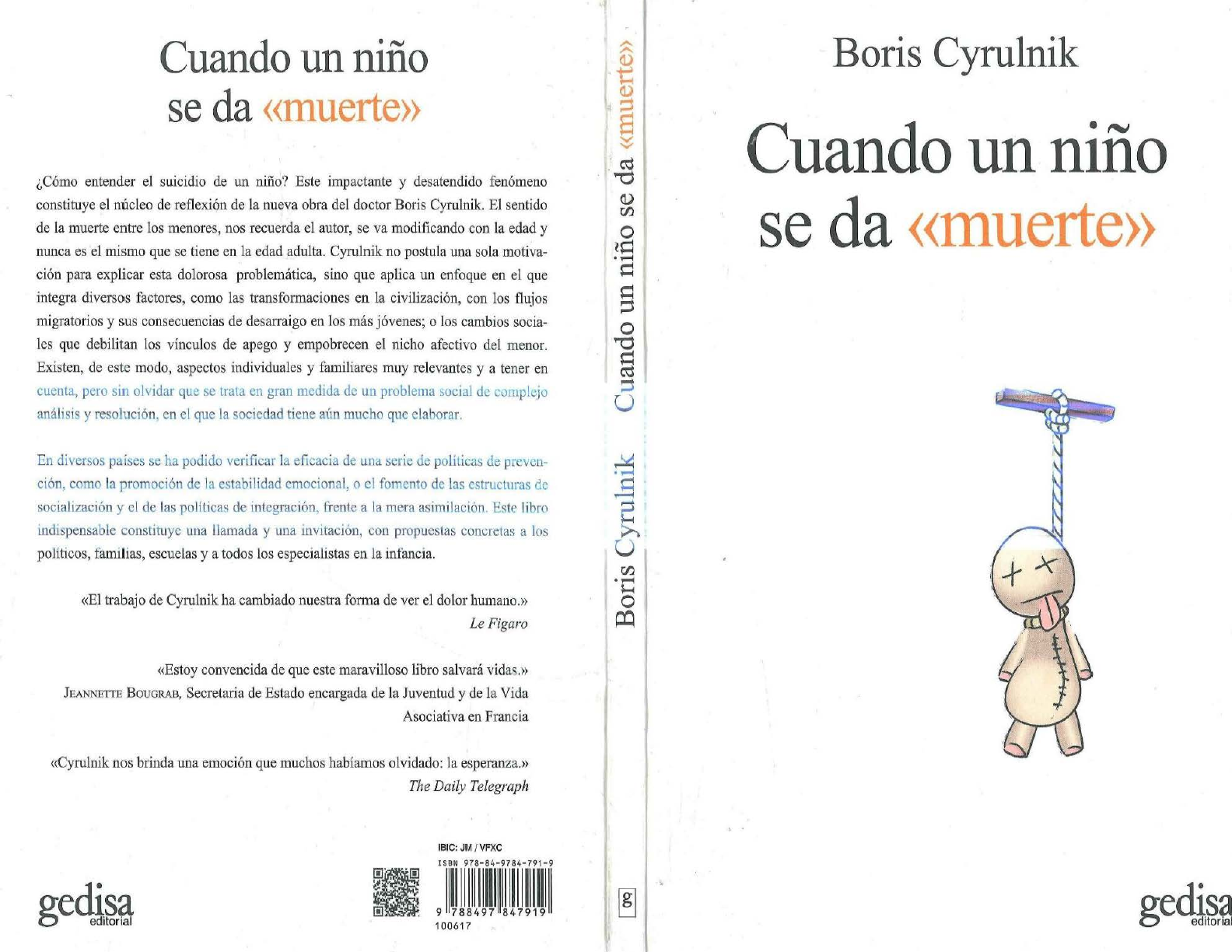 Cuando un niño se da <<muerte>> ¿Cómo entender el suicidio de un niño? Este impactante y desatendido fenómeno constituye el núcleo de reflexión de la nueva obra del doctor Boris Cyruloik. El sentido de la muerte entre los menores, nos recuerda el autor, se va modificando con la edad y nunca es el mismo que se tiene en la edad adulta. Cyrulnik no postula una sola motiva- ción para explicar esta dolorosa problemática, sino que aplica un enfoque en el que integra diversos factores, como las transformaciones en la civilización, con los flujos migratorios y sus consecuencias de desarraigo en los más jóvenes; o los cambios socia- les que debilitan los vínculos de apego y empobrecen el nicho afectivo del menor. Existen, de este modo, aspectos individuales y familiares muy relevantes y a tener en cuenta, pero srn olvidar que se trata en gran medida de un problema social de complejo análisis y resolución, en el que la sociedad tiene aún mucho que elaborar. En diversos países se ha podido verificar la eficacia de una serie de políticas de preven- ción, como la promoción de la estabilidad emocional, o el fomento de las cstn1cturas de socialización y el de las políticas de integración, frente a la mera asimilación Este libro indispensable constituye una llamada y una invitación, con propuestas concretas a los políticos, familias, escuelas y a todos los especialistas en la infancia. «El trabajo de Cyrulnik ha cambiado nuestra fonna de ver el dolor humano.» LeFigaro «Estoy convencida de que este maravilloso libro salvará vida!l.» JEANNETTE BouGRAB, Secretaria de Estado encargada de la Juventud y de la Vida Asociativa en Francia «Cyrulnik nos brinda una emoción que muchos habíamos olvidado: la esperanza.» The Daily Telegraph lBlC: JM 1 VFXC 1 0061 7 Boris Cyrulnik Cuando un niño se da «muerte» Boris Cyrulnik Cuando un niño se da <<muerte>> Colección Psicología Social 1 Resiliencia Editorial Gedisa RESILIENCIA La resiliencia designa la capacidad humana de superar traumas y heridas. Las expe- riencias de huérfanos, niños maltratados o abandonados, víctimas de guerras o ca- tástrofes naturales, han permitido constatar que las personas no quedan encadena- das a los traumas toda la vida, sino que cuentan con un antídoto: la resiliencia. No es una receta de felicidad, sino una actitud vital positiva que estimula a reparar daños sufridos, convirtiéndolos, a veces, hasta en obras de arte. Pero la resiliencia difícilmente puede brotar en la soledad. La confianza y solidaridad de otros, ya sean amigos, maestros o tutores, es una de las condiciones para que cual- quier ser humano pueda recuperar la confianza en sí mismo y su capacidad de afec- to. La serie Resiliencia tiene como objetivo difundir las experiencias y los descubri- mientos en todos los ámbitos en los que el concepto está abriendo nuevos horizontes, tanto en psicología y asistencia social como en pedagogía, medicina y gerontología. GuADALUPE AcLE ToMASINI (COORD.) JORGE BARUDY Y MARYORIE DANTAGNAN NATHALIE CHARPAK Borus CYRULNIK JosÉ ÁNGEL GIMÉNEZ AL VIRA Borus CYRULNIK Resiliencia en educación especial Una experiencia en la escuela regular La fiesta mágica y realista de la resiliencia infantil Manual de técnicas terapéuticas para apoyar y promover la resiliencia Bebes canguros El recién nacido y su contacto con la madre Me acuerdo ... El exilio de la infancia Indómito y entrañable El hijo que vino de fuera Autobiografía de un espantapájaros Testimonios de resiliencia: el retorno a la vida e uando un niño se da «muerte» Boris Cyrulnik geclj~~ Título original en francés: Quand un enfant se donne «la mort» © Odile Jacob, 2011 © Boris Cyrulnik Traducción: Alfonso Díez Diseño de cubierta: Marco Sandoval/Estudio Alterna Preimpresión: ebc, serveis editorials Fotocomposición: Montserrat Gómez Lao Primera edición: febrero de 2014, Barcelona Derechos reservados para todas las ediciones en castellano © Editorial Gedisa, S.A. Avenida del Tibidabo, 12, 3.0 08022 Barcelona, España Tel. 93 253 09 04 correo electrónico: gedisa@gedisa.com http:/ /www.gedisa.com ISBN: 978-84-9784-791-9 Depósito legal: B.349-2014 Impreso por: Romanya-Valls, S.A. Impreso en España Printed in Spain Queda prohibida la reproducción total o parcial por cualquier medio de impresión, en forma idéntica, extractada o modificada de esta versión en castellano o en cualquier otro idioma ~ In dice Prefacio 9 1. Apego y sociedades . . . . . . . . . . . . . . . . . . . . . . . . . . . . . 13 ¿Cómo saber? . . . . . . . . . . . . . . . . . . . . . . . . . . . . . . . . . . 13 Epistemología . . . . . . . . . . . . . . . . . . . . . . . . . . . . . . . . . . 15 Suicidios según el sexo . . . . . . . . . . . . . . . . . . . . . . . . . . . 20 Cuestión de matarse 25 ¿Cómo es cuando uno está muerto? . . . . . . . . . . . . . . . . 27 Genética del suicidio . . . . . . . . . . . . . . . . . . . . . . . . . . . . 31 Epigénesis . . . . . . . . . . . . . . . . . . . . . . . . . . . . . . . . . . . . . 33 La adopción lleva a cabo una especie de experimentación cultural . . . . . . . . . . . . . . . . . . . . 41 Hormonas y suicidio . . . . . . . . . . . . . . . . . . . . . . . . . . . . 42 Vínculos y deseo de muerte . . . . . . . . . . . . . . . . . . . . . . 47 Psicología del pasaje al acto . . . . . . . . . . . . . . . . . . . . . . 53 El mundo mental de los suicidas . . . . . . . . . . . . . . . . . . 58 Maduración precoz y suicidios . . . . . . . . . . . . . . . . . . . . 62 Desarrollo doloroso . . . . . . . . . . . . . . . . . . . . . . . . . . . . . 66 El compromiso impide el suicidio . . . . . . . . . . . . . . . . . 68 Erotización del miedo a morir . . . . . . . . . . . . . . . . . . . . . 71 Suicidios en la escuela . . . . . . . . . . . . . . . . . . . . . . . . . . . 77 Carencias sensoriales y autoagresión . . . . . . . . . . . . . . . 81 7 Suicidios y migraciones ................... : . . . . . .