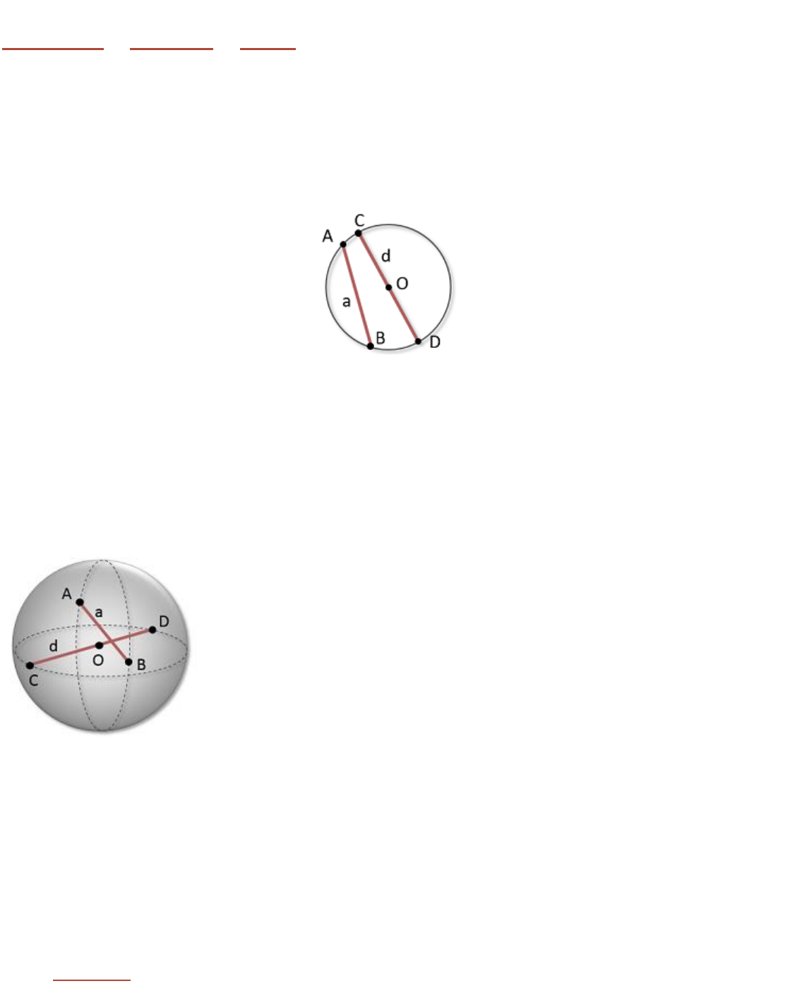 Ejemplos de Cuerdas Matemáticas → Geometría → Rectas → Cuerda Las Cuerdas: Las cuerdas son segmentos cuyos extremos están en dos puntos de una curva (es una porción de una recta secante a la curva). Cuerdas de una Circunferencia: En una circunferencia, una cuerda es el segmento que une dos puntos cualquiera de la circunferencia (por ejemplo la cuerda a que une los puntos A y B en la imagen). La cuerda de mayor tamaño de una circunferencia es aquella que pasa por su centro y que coincide con su diámetro (por ejemplo la cuerda que une los puntos C y D pasando por el centro O en la imagen) Cuerdas de una Esfera: En una esfera, una cuerda es el segmento que une dos puntos cualquiera de la superficie de la esfera (por ejemplo la cuerda a que une los puntos A y B en la imagen). La cuerda de mayor tamaño de una esfera es aquella que pasa por su centro y que coincide con su diámetro (por ejemplo la cuerda que une los puntos C y D pasando por el centro O en la imagen) Otros Tipos de Rectas: Semirecta: cada una de las 2 partes en las que se divide una recta al ser cortada en uno de sus puntos http://www.matematicas10.net/2015/11/las-matematicas.html http://www.matematicas10.net/2015/11/la-geometria.html http://www.matematicas10.net/2015/12/ejemplos-y-tipos-de-rectas.html http://www.matematicas10.net/2015/12/las-semirrectas.html https://4.bp.blogspot.com/-byGL1xmp1N0/WK8zsReDfKI/AAAAAAAAZ34/S8VIoC0s2g05-76vDIHWIXIrjtfry4zSwCLcB/s1600/Cuerdas_circunferencia.png https://1.bp.blogspot.com/-HifblKA4Jp8/WK81mZmkVaI/AAAAAAAAZ4I/2mY-xWS9TEkIdYAr3ptg1cDr9XBoMlSbQCLcB/s1600/Cuerdas_esfera.png Secantes: las secantes son rectas que cortan a una curva en dos puntos Tangentes: son rectas secantes que cortan a una curva solo en un punto Paralelas: son rectas que están en un mismo plano y solo se cortan en el infinito Perpendiculares: rectas que se cortan en un único punto con un ángulo de 90º (ángulo recto) Segmento: es una porción finita de una recta que está comprendido entre dos puntos extremos Cuerda: segmento con extremos en dos puntos de una curva (es una porción de una recta secante) Radio: es el segmento que une el centro de una circunferencia y cualquiera de sus puntos Diámetro: segmento que pasa por el centro y une 2 puntos extremos de una circunferencia Coincidentes: rectas que tienen los mismos puntos en común Mediatriz de un segmento: recta que corta a un segmento perpendicularmente por su punto medio http://www.matematicas10.net/2015/12/rectas-secantes.html http://www.matematicas10.net/2015/12/rectas-tangentes.html http://www.matematicas10.net/2015/12/rectas-paralelas.html http://www.matematicas10.net/2015/12/rectas-perpendiculares.html http://www.matematicas10.net/2015/12/los-segmentos.html http://www.matematicas10.net/2015/12/las-cuerdas.html http://www.matematicas10.net/2015/12/radios.html http://www.matematicas10.net/2015/12/el-diametro.html http://www.matematicas10.net/2017/02/ejemplos-de-rectas-coincidentes.html http://www.matematicas10.net/2017/02/ejemplos-de-mediatriz.html Ejemplos de Cuerdas