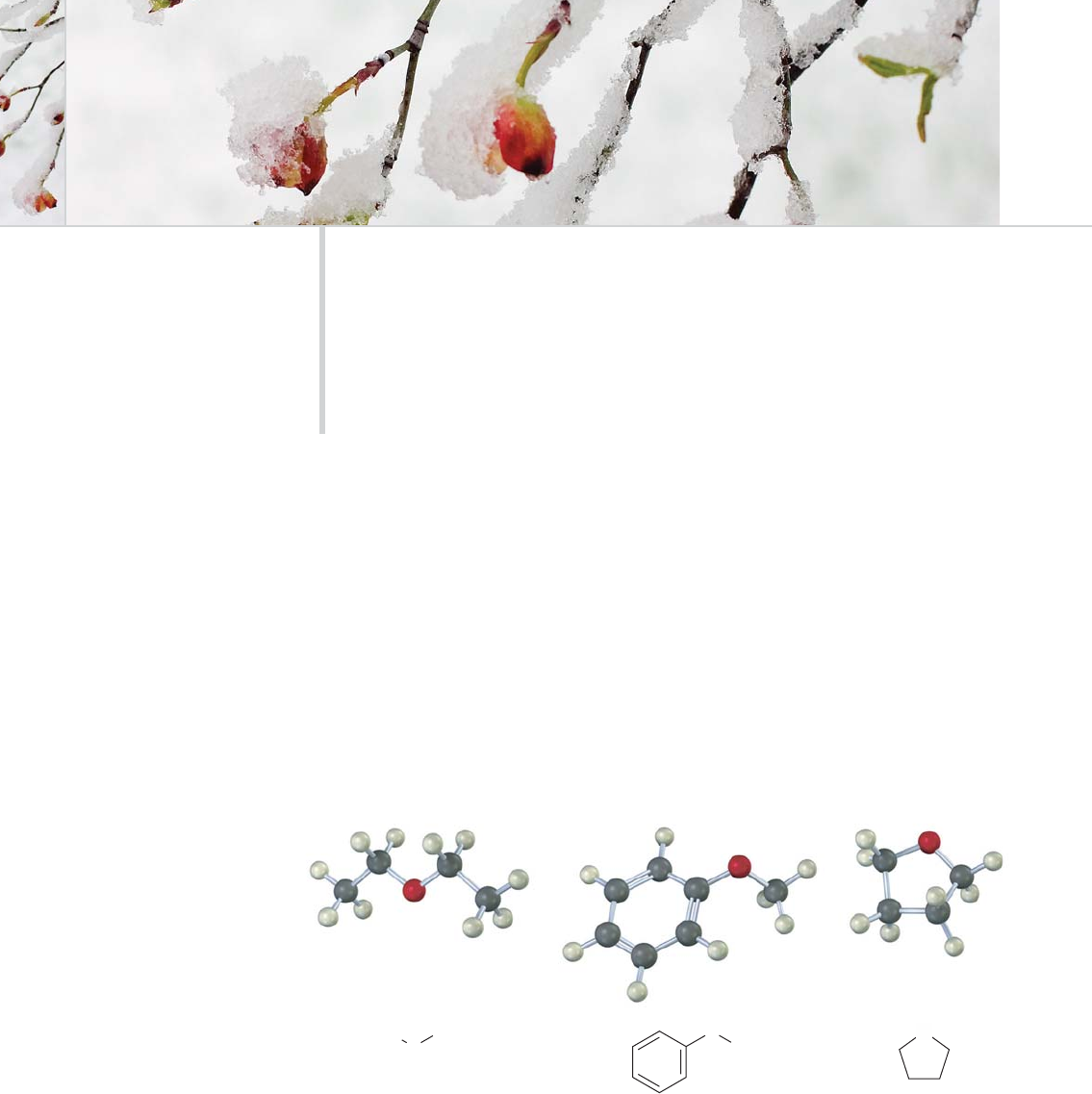 652 18 Éteres y epóxidos: tioles y sulfuros Los éteres (R�O�R�), al igual que los alcoholes que vimos en el capítulo ante- rior, son derivados orgánicos del agua pero tienen dos grupos orgánicos unidos al mismo átomo de oxígeno en lugar de uno. Los grupos orgánicos pueden ser alquilo, arilo o vinilo, y el átomo de oxígeno puede estar en una cadena abierta o en un anillo. Quizás el éter más conocido es el dietílico, el cual tiene una lar- ga historia de uso medicinal como anestésico y de uso industrial como disolven- te. Otros éteres útiles incluyen el anisol, un éter aromático de olor agradable utilizado en perfumería, y el tetrahidrofurano (THF), un éter cíclico utilizado fre- cuentemente como disolvente. Los tioles (R�S�H) y los sulfuros (R�S�R�) son los análogos de azufre de los alcoholes y los éteres, respectivamente, y ambos grupos funcionales se en- cuentran en varias biomoléculas, aunque no tan comúnmente como sus análo- gos que contienen oxígeno. CH3CH2 CH2CH3 O O CH3 Éter dietílico Anisol (éter metil fenílico) Tetrahidrofurano O Se an D ug ga n 18McMurry0652-694.qxd 2/5/08 7:56 PM Page 652 ¿POR QUÉ ESTE CAPÍTULO? Este capítulo finaliza la revisión de los grupos funcionales con enlaces sencillos C�O y C�S que se inició en el capítulo 17. Nos enfocaremos principalmente en los éteres y sólo daremos un breve vistazo a los tioles y a los sulfuros antes de continuar con una amplia revisión de los compuestos con enlaces C�O en los capítulos 19 al 23. 18.1 Nombres y propiedades de los éteres Los éteres sencillos sin otros grupos funcionales, se nombran identificando los dos sustituyentes orgánicos y anteponiendo la palabra éter. Si están presentes otros grupos funcionales, el grupo funcional éter se con- sidera un sustituyente alcoxi, por ejemplo: Al igual que los alcoholes, los éteres tienen casi la misma geometría que la del agua. Los enlaces R�O�R tienen un ángulo de enlace aproximadamente tetraédrico (112° en el éter dimetílico), y el átomo de oxígeno tiene hibridación sp3. El átomo de oxígeno electronegativo les da a los éteres un pequeño momen- to dipolar, y los puntos de ebullición de los éteres son con frecuencia un poco más altos que los puntos de ebullición de los alcanos equiparables. La tabla 18.1 compara los puntos de ebullición de algunos éteres comunes y los hidrocarbu- ros correspondientes. Los éteres son relativamente estables y no reactivos en varios aspectos, pe- ro algunos éteres reaccionan lentamente con el oxígeno del aire para dar peróxi- dos, compuestos que contienen un enlace O�O. Los peróxidos de éteres con baja masa molecular, como el éter diisopropílico y el tetrahidrofurano, son explosi- vos y extremadamente peligrosos, aun en cantidades pequeñas. Los éteres son muy útiles como disolventes en el laboratorio, pero siempre deben utilizarse con cuidado y no almacenarse por largos periodos. CH3H3C 112° O 4-ter-butoxi--1-ciclohexeno O 3 2 4 1 C H3C CH3 CH3 p-dimetoxibenceno OCH3 CH3O H CH3 O CH2CH3 Éter etil fenílico O CH3 CH3C Éter isopropil metílico 18.1 Nombres y propiedades de los éteres 653 18McMurry0652-694.qxd 2/5/08 7:56 PM Page 653 Tabla 18.1 Comparación de los puntos de ebullición de éteres e hidrocarburos Punto de ebullición Punto de ebullición Éter °C Hidrocarburo °C CH3OCH3 �25 CH3CH2CH3 �45 CH3CH2OCH2CH3 34.6 CH3CH2CH2CH2CH3 36 65 49 158 136 Problema 18.1 Nombre los siguientes éteres: 18.2 Síntesis de éteres El éter dietílico y otros éteres simétricos sencillos se preparan industrialmente por la deshidratación de alcoholes catalizada por ácido sulfúrico. La reacción ocurre por el desplazamiento SN2 del agua de una molécula de etanol protona- da por el átomo de oxígeno de un segundo etanol. Desafortunadamente, el mé- todo se limita al uso con alcoholes primarios, debido a que los alcoholes secundarios y terciarios se deshidratan por un mecanismo E1 para producir al- quenos (sección 17.6). OH + OH2 CH3CH2 AH CH2CH3HO OH2 + CH3CH2 CH3CH2 CH2CH3O CH3CH2 CH2CH3 H3O ++O H SN2 OCH2CH2CH3CH3CHOCHCH3 CH3 CH3(a) (b) CH3CHCH2OCH2CH3 CH3(e) (f) (c) (d)OCH3 Br OCH3 H2C CHCH2OCH CH2 CH2CH3OCH3 O 654 CAPÍTULO 18 Éteres y epóxidos: tioles y sulfuros 18McMurry0652-694.qxd 2/5/08 7:56 PM Page 654 Síntesis de éteres de Williamson El método que más se utiliza para la preparación de éteres es por medio de la síntesis de éteres de Williamson, en la cual un ion alcóxido reacciona con un halu- ro de alquilo primario o un tosilato en una reacción SN2. Como vimos anterior- mente en la sección 17.2, por lo general el ion alcóxido se prepara por la reacción de un alcohol con una base fuerte como el hidruro de sodio, NaH. Una variación útil de la síntesis de Williamson involucra el óxido de plata, Ag2O, como una base suave en vez de NaH. Bajo estas condiciones, el alcohol li- bre reacciona directamente con el haluro de alquilo, de tal manera que no es ne- cesario preformar el alcóxido metálico intermediario. Los azúcares reaccionan particularmente bien; por ejemplo, la glucosa reacciona con yodometano en ex- ceso en presencia de Ag2O para generar un pentaéter con un rendimiento de 85%. Debido a que la síntesis de Williamson es una reacción SN2, está sujeta a to- das las restricciones usuales, como se explicó en la sección 11.2. Los haluros pri- marios y los tosilatos funcionan mejor debido a que la reacción de eliminación E2 competitiva puede ocurrir con sustratos más impedidos; por tanto, los éteres asimétricos deben sintetizarse por la reacción entre el alcóxido más impedido y el haluro menos impedido, y no a la inversa; por ejemplo, el éter ter-butil me- tílico, una sustancia utilizada en la década de 1990 como un potenciador de octano en la gasolina, se prepara mejor por la reacción del ion ter-butóxido con yodometano en vez de la reacción del ion metóxido con 2-cloro-2-metilpro- pano. + CH