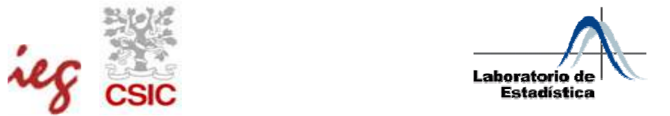 SERIES TEMPORALES Cecilia Esparza Catalán Cecilia Esparza Catalán Series Temporales ÍNDICE Página 1.- INTRODUCCIÓN……………………………………………………….. 2 2.- ANÁLISIS PRELIMINAR DE UNA SERIE….……………………….. 3 - Tendencia y nivel de la serie…...………………………………. 4 - Estacionalidad…………... ………………………………………. 9 - Dependencia entre variabilidad y nivel…..……………………. 13 - Comportamientos anómalos…………………... ………………. 16 3.- MÉTODOS CLÁSICOS…………………………….………………….. 17 - Métodos de descomposición estacional y ajuste de tenden- cia……………………………………………………………........ 18 - Métodos de suavizado……………………….………………….. 30 - SERIES SIN TENDENCIA NI ESTACIONALIDAD…………… 31 - Modelos “naive” o ingenuos………………………….. 31 - Modelos de medias móviles………………………….. 33 - Modelos de suavizado exponencial simple………… 34 - SERIES CON TENDENCIA Y SIN ESTACIONALIDAD……… 38 - SERIES CON TENDENCIA Y CON ESTACIONALIDAD……. 41 4.- MODELOS ARIMA…………………………….………………………. 47 - Modelos de medias móviles (MA)....…………………………... 50 - Modelos autorregresivos (AR)………………………………….. 51 - Modelos autorregresivos de medias móviles (ARMA).………. 52 - Modelos no estacionarios (ARIMA)………...………………….. 52 BIBLIOGRAFÍA………………………..…………………………………… 53 - 1 - Cecilia Esparza Catalán Series Temporales SERIES TEMPORALES 1.- INTRODUCCIÓN1 Una serie temporal es una colección de observaciones de una variable realiza- das de forma secuencial en el tiempo, en las que el orden de observación es importante. Los valores de una serie temporal van ligados a instantes de tiem- po, de manera que el análisis de una serie implica el manejo conjunto de dos variables; la variable en estudio propiamente dicha y la variable tiempo. Las series pueden tener una periodicidad anual, semestral, trimestral, mensual, etc., según los periodos de tiempo en los que están recogidos los datos que la componen. Las ventas trimestrales de una empresa, el número de casos men- suales de personas afectadas por el SIDA, la cantidad de accidentes semana- les de tráfico o el número de exportaciones efectuadas cada año por un deter- minado país, son ejemplos de series temporales con diferentes periodicidades. El análisis de series temporales presenta un conjunto de técnicas estadísticas que permiten, además de estudiar y modelizar el comportamiento de un fenó- meno que evoluciona a lo largo del tiempo, realizar previsiones de los valores que se alcanzarán en el futuro. Con el análisis de series temporales se pretende extraer las regularidades que se observan en el comportamiento pasado de la variable, es decir, obtener el mecanismo que la genera, para tener un mejor conocimiento de la misma en el tiempo. Además, bajo el supuesto de que las condiciones estructurales que conforman la serie objeto de estudio permanecen constantes, también se trata de predecir el comportamiento futuro. El estudio de una serie temporal puede tener distintas motivaciones. El tipo de análisis, así como los modelos en los que basemos el estudio, dependerán en gran medida del tipo de preguntas que queramos responder. Cuando las ob- servaciones corresponden a una única variable, el análisis de series tempora- les suele tener como objetivo construir un modelo para explicar la estructura (descripción) y prever la evolución (predicción) de la variable de interés. Cuan- do se observa simultáneamente un grupo de variables, el objetivo que se persi- gue consiste generalmente en analizar las posibles relaciones entre las varia- bles observadas y su evolución conjunta. Este último punto, que debe ser tra- tado mediante técnicas multivariantes de análisis de series temporales, no queda cubierto por el presente manual, solamente nos referiremos al análisis univariante de series temporales, al análisis de una única serie. 1 OBSERVACIÓN: Todos los contenidos del presente manual han sido elaborados empleando la versión 14.0 del programa SPSS. - 2 - Cecilia Esparza Catalán Series Temporales 2.- ANÁLISIS PRELIMINAR DE UNA SERIE El análisis preliminar de una serie constituye el primer paso a seguir a la hora de estudiar una serie temporal. Esta fase nos permite detectar las característi- cas más importantes de una serie, tales como su tendencia (creciente o decre- ciente), la existencia de ciclos, presencia de valores atípicos, etc. La forma más sencilla de comenzar el análisis de una serie temporal es me- diante su representación gráfica. El gráfico que se emplea para representar las series temporales es el gráfico de secuencia. Los gráficos de secuencia son diagramas de líneas en los cuales el tiempo se representa en el eje de absci- sas (x), y la variable cuya evolución en el tiempo estudiamos en el eje de orde- nadas (y). Para obtener el gráfico de secuencia de una serie temporal empleando el pro- grama SPSS debemos seleccionar el menú Gráficos – secuencia… En la casi- lla Variables del cuadro de diálogo debemos introducir la variable a estudiar y en la correspondiente a Etiquetas del eje del tiempo la variable que nos indica la fecha a la que corresponde cada observación. En el caso de que en el archivo de SPSS tengamos la variable de interés pero no la correspondiente al tiempo, debemos generarla. Para ello basta con ir al menú Datos – Definir fechas y seleccionar la adecuada. Veamos un ejemplo de gráfico de secuencia obtenido con los datos de la serie temporal Airline, serie que representa el volumen de pasajeros de una compa- ñía aérea estadounidense. Figura 1: gráfico de secuencia d
