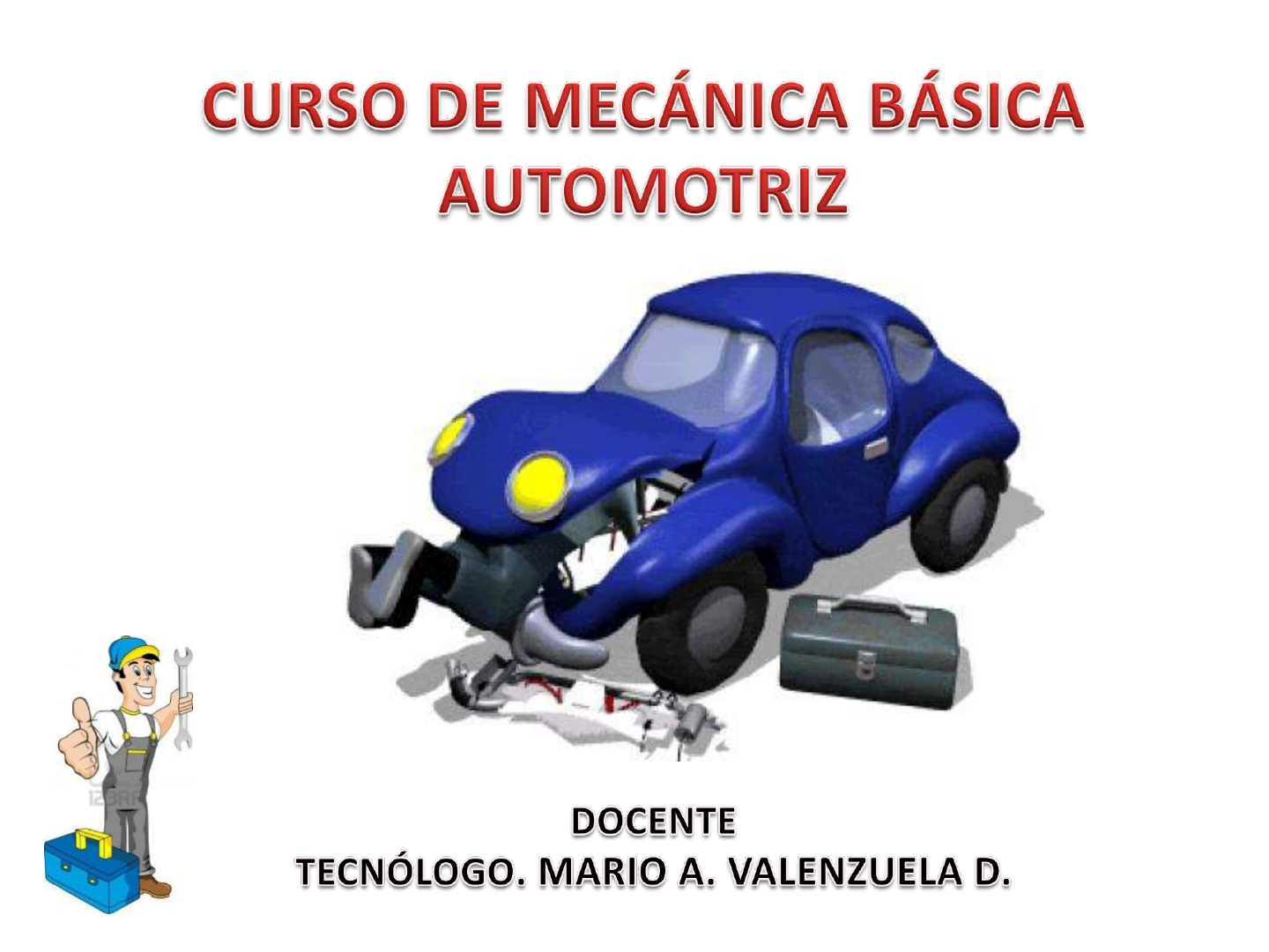 Para poder conducir un vehículo en forma segura, hay que mantenerlo en buenas condiciones de operación. Es necesario saber cómo esta constituido y como funciona. Un motor de gasolina constituye una máquina termodinámica formada por un conjunto de piezas o mecanismos fijos y móviles, cuya función principal es transformar la energía química que proporciona la combustión producida por una mezcla de aire y combustible en energía mecánica o movimiento. Cuando ocurre esa transformación de energía química en mecánica se puede realizar un trabajo útil como, por ejemplo, mover un vehículo automotor como un coche o automóvil, o cualquier otro mecanismo, como pudiera ser un generador de corriente eléctrica, una bomba de agua, la cuchilla de una cortadora de césped, etc. En líneas generales los motores térmicos de combustión interna pueden ser de varios tipos, de acuerdo con el combustible que empleen para poder funcionar: GASOLINA, DIESEL, GAS O COMBINACIONES DE COMBUSTIBLES Y ELÉCTRICOS. 2 TECNÓLOGO. MARIO A. VALENZUELA D. •Conocer como esta construido y como funciona un vehículo para poder conducir en forma segura. •Explicar como funciona el motor y como debemos actuar para obtener un mayor rendimiento y durabilidad. •Conocer los diversos sistemas que componen un vehículo, su funcionamiento, como realizar el mantenimiento y que hacer en caso de fallas. •Practicar actitudes y hábitos responsables sobre beneficios de la mecánica preventiva. 3 TECNÓLOGO. MARIO A. VALENZUELA D. • Un automóvil esta construido de 5000 o mas piezas. con el uso el rendimiento de los componentes (incluyendo lubricantes) se ven reducidos debido al desgaste, deterioro, corrosión, etc. Estos cambios ocurren gradualmente con muchas de las piezas durante la operación normal del vehículo. • La fabrica, por lo tanto, especifica intervalos periódicos de inspección y regulaciones o reemplazo de las piezas y componentes que pueden ser anticipados a sufrir estos cambios con el tiempo o con el uso. Por lo tanto, el propósito del mantenimiento periódico es restaurar el rendimiento del vehículo a la mejor condición, a fin de prevenir que pequeños problemas se hagan grandes en el futuro y hacer que el vehículo sea seguro y conforme con las leyes y reglamentos locales. • Con la ejecución continua del mantenimiento periódico especifico, el cliente puede asegurar larga vida del vehículo, mayor economía y una operación mas segura. 4 TECNÓLOGO. MARIO A. VALENZUELA D. • Mantenimiento periódico. Inspección, revisión, observación. Regulación o calibración. Reemplazo. • Vehículo mantenido en la mejor forma. Prevención de problemas. Conducción segura. Conformidad con las leyes y reglamentos. • Satisfacción del propietario. Larga vida del vehículo. Economía. Operación segura. 5 TECNÓLOGO. MARIO A. VALENZUELA D. El termino “automóvil” significa: 6 • Que se mueve por si mismo, sin intervención externa. Es decir es un vehículo que esta conformado por sistemas mecánicos, eléctricos, electrónicos, neumáticos e hidráulicos que le permiten su autopropulsión. EVOLUCIÓN DEL AUTOMÓVIL • Bastidor • Carrocería • Motor • Sistema de alimentación • Sistema de lubricación • Sistema de refrigeración • Sistema eléctrico • Sistema de transmisión • Ruedas y neumáticos • Sistema de frenado • Sistema de suspensión • Sistema de dirección 7 TECNÓLOGO. MARIO A. VALENZUELA D. Es la estructura básica diseñada para soportar todos los componentes del vehículo. Un bastidor es la estructura principal compuesta por largueros y travesaños que unidos forman el chasis del automóvil. 8 TECNÓLOGO. MARIO A. VALENZUELA D. En la actualidad con la carrocería autoportante (integral o monobloque), no existe un bastidor, sino un conjunto de chasis-carrocería, formado por perfiles de lámina estampada, mejorando el peso a igual que la relación mecánica peso- potencia. CARROCERÍA 9 TECNÓLOGO. MARIO A. VALENZUELA D. SEDÁN COUPÉ HATCHBACK STATION WAGON DOBLE CABINA (Crew Cab) CABINA SENCILLA (Single Cab) CABINA Y MEDIA (Extended Cab) VIDEO 10 TECNÓLOGO. MARIO A. VALENZUELA D. • La energía no se crea ni se destruye, solo se transforma de un estado a otro. Esta presente en todo momento y en todo lo que nos rodea. 11 TECNÓLOGO. MARIO A. VALENZUELA D. Se define como la capacidad para realizar un tipo de trabajo. W= F x d • Potencial gravitacional, elástica (resortes, muelles). • Eléctrica (luz eléctrica) (baterías) (alternador) • Cinética (movimiento o velocidad). 12 TECNÓLOGO. MARIO A. VALENZUELA D. • Química (combustibles) (baterías) • Calorífica (combustión) (gases de escape). • Térmica (combustión en las cámaras). • Mecánica (conjunto móvil del motor). TECNÓLOGO. MARIO A. VALENZUELA D. 13 Es una maquina termodinámica conformada por un conjunto de piezas perfectamente acopladas o engranadas que produce una fuerza o energía para producir un movimiento. 14 TECNÓLOGO. MARIO A. VALENZUELA D. Los cilindros varían en cantidad y posición de acuerdo al diseño del fabricante. Motor en línea: los cilindros se alinean en un sólo bloque. Motor en V: los cilindros se distribuyen en dos bloques unidos en el centro por el cigüeñal. EN LÍNEA EN V 15 TECNÓLOGO. MARIO A. VALENZUELA D. • Motores en horizontal: Los motores horizontales son los que sus cilindros se encuentran ubicados horizontalmente como su nombre lo indica a 180°, entre estos motores encontramos por ejemplo: wolksvagen. 16 TECNÓLOGO. MARIO A. VALENZUELA D. Los componentes fijos del motor que componen su estructura son: 17 TECNÓLOGO. MARIO A. VALENZUELA D. La culata o cabeza de cilindros es un elemento estructural del motor, que está atornillado sobre el bloque. Contiene en su interior: – Válvulas de admisión – Válvulas de escape – Conductos de admisión – Conductos de escape Además de la geometría necesaria para permitir su funcionamient