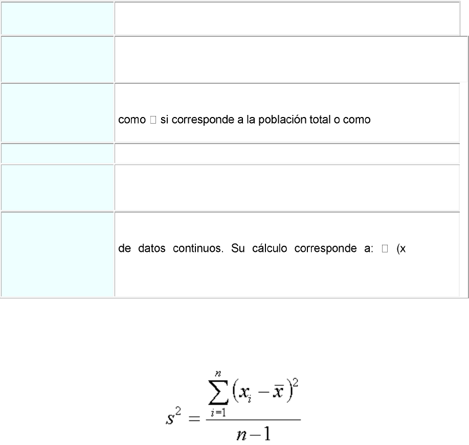 cuadrado, así S2 y s2. Las fórmulas para calcular la varianza son las mismas utilizadas por