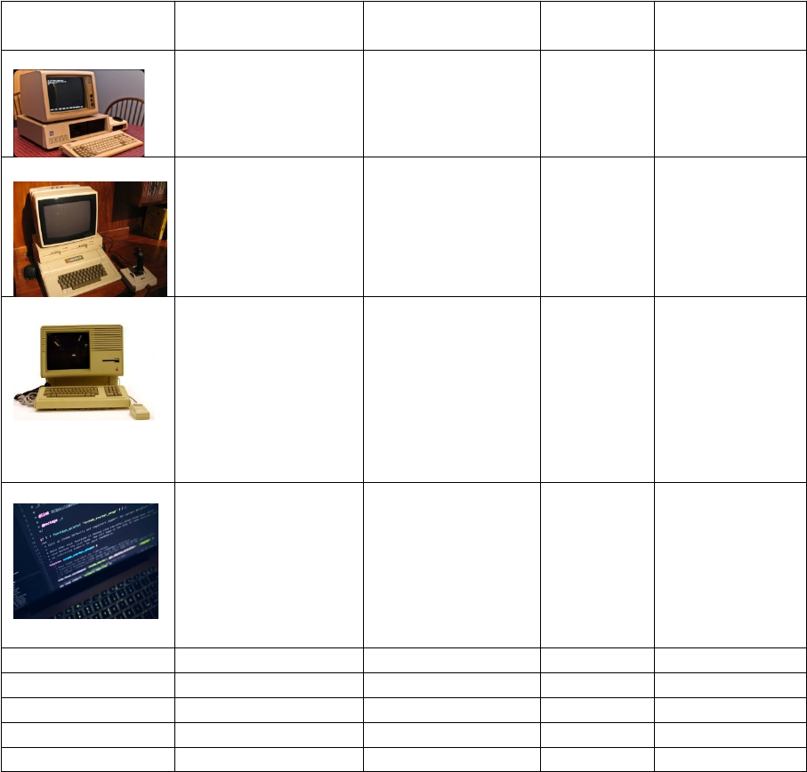 Tipo de monitor características desventajas Cuando apareció Quienes lo utilizaron Computadora antigua Un ordenador gigante que pesaba cerca de 30 toneladas requería de gran consumo de energía para su funcionamiento 1945 La gente de la Segunda Guerra Mundial Computadora (1956) se programaban con lenguajes de alto nivel como COBOL y FORTRAN Eran muy grandes y pesadas lo cual lo hacia impráctico 1956 La segunda generación Computadora (1964) por el uso de chips de silicón creados por Jack S. Kilby y Robert Noyce, los cuales permitieron obtener computadoras más eficientes con un menor consumo de energía. Las computadoras estaban fijas y no se podían mover 1964 La tercera generación intel 4004 (1971) el desarrollo de un microprocesador que permitió juntar los chips en un mismo bloque y contribuyó a la creación de ordenadores personales. 1971 La cuarta generación
