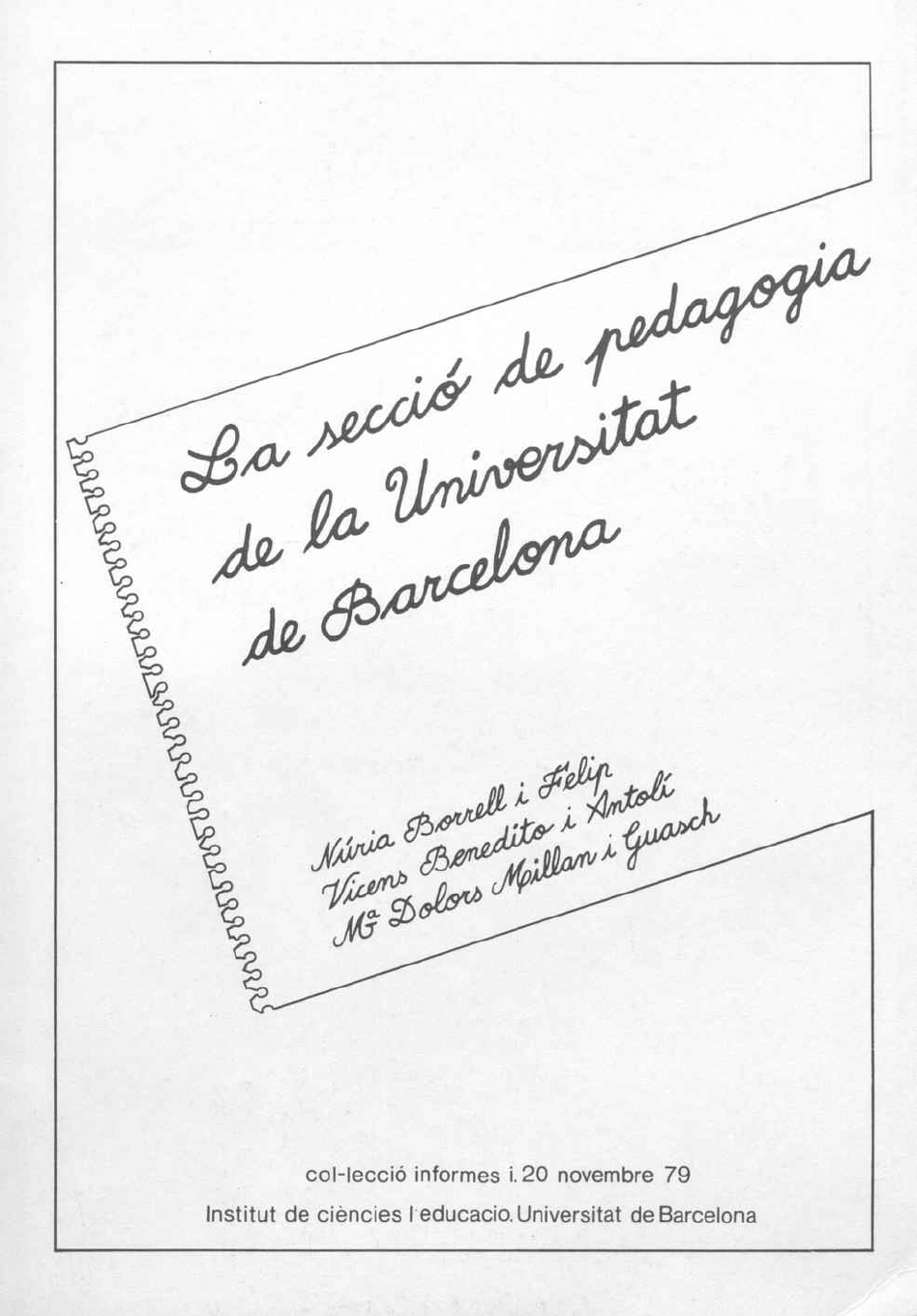 cà^a. a&ccüO'Am fi&dag&aÚL A&,za 2^rióve^/Utat d& (fàsal·cel&ricu J/aaaàcl SfosoweMi cfieÉífi 'TtooemJb é&&nezíbb&'À W/nt&& lMt£&<y£&tò u^àMcm/À ’ÇuabcJv co/. fe, c/'è, cdó ©s/ Ínfon euUl '^es c©c. ?0 '/QUi nOVi 'mv. e*b, erSits, 're ?9 ^B,drc<e'oné C>0,0, A&GCÒ&' scU. fwcíay&aia, scOl £cl 2/mwGVAi£a£ de> <&/artce£&rLcu Muda. i (tfeflifi r2£oem/> ó&j&n£zlub&' À )4m£&£C jKr £&&&yU O^fdifL·TVÀ, ’ÇucLüch col-leccio informes i. 20 novembre 79 Institut de ciencies I educació. Universitat de Barcelona Publicacions de l'I.C.E. Director: Miquel Siguan Soler Cial Offset - Dep. Leg. B.31140-80 INDEX PRESENTACIÓ EVOLUCIÓ DELS PLANS D'ESTUDIS DE LA SECCIÓ DE PEDAGOGIA DES DE LA SEVA CREACIÓ. 2.1Introducció 2.1.1 Estructuració dels estudis de la Secció abans de 1936. 2.1.2 Estructuració dels estudis de la Secció després de 1936. 2.2 2.3 2.4 Pla 1968 Pla 1969 Pla 1973 2.4.1 2.4.2 2.4.3 2.4.4 o PLA MALUQUER o PLA SUAREZ Modificació d'Organització Modificació d'Orientació Modificació d'Educació Especial Modificació de Pedagogia Sistemàtica. 2.5 Comparació PLA MALUQUER - PLA SUAREZ 2.6 Pla 1977. Modificacions al Pla Suarez. EVOLUCIÓ DE L'ESTRUCTURA ORGANITZATIVA DE LA SECCIÓ DE PEDAGOGIA. 3.1 Introducció 3.2 Relació de places dotades a la Secció 3.3 Situació en el curs 77-78. Divisió de la Secció de Pedagogia en quatre Depar¬ taments 2.-4.ALUMNAT DE LA SECCIÓ DE PEDAGOGIA DE LA UNIVERSITAT DE BARCELONA. 4.1 Introducció 4.2 Distribució de l'alumnat de la Secció de Pedagogia. 4.2.1 Alumnat Pla Maluquer. Període 1970-73. 4.2.2 Alumnat Pla Suarez. Període 1973-78.5.PROFESSORAT DE LA SECCIÓ DE PEDAGOGIA DE LA UNIVERSITAT DE BARCELONA. 5.1 Introducció 5.2 Quadre evolutiu de les places de professorat de la Secció de Pedagogia des del curs 72-73 al curs 78-79 5.3 Quadre comparatiu del professorat de les tres Sec¬ cions de la Facultat de Filosofia i Ciències de l'Educació (curs 73-74). 5.4 Distribució de les places dotades i contractades - per Seccions: Comparació curs 1973-74 amb el 78-79. 5.5 Distribució per categories i dedicació del Profes¬ sorat dels quatre Departaments actuals de la Secció de Pedagogia (curs 78-79).6.PROFESSORAT DE LES FACULTATS DE LA UNIVERSITAT DE BARCELONA. QUADRES COMPARATIUS. 6.1 Quadre comparatiu del professorat i de l'alumnat de les Facultats de la Universitat Central de Barcelo¬ na (curs 74-75). 6.2 Quadre comparatiu del professorat i de l'alumnat de les Facultats de la Universitat Central de Barcelo¬ na (curs 77-73). 6.3 Quadre comparatiu del professorat i alumnat de les Facultats de la Universitat de Barcelona. Cursos - 74-75 i 77-73. 7 REFLEXIONS FINALS 3.- PRESENTACIÓ. L'informe que us presentem és un senzill estudi sobre l'evolució i situació actual de la Secció de Pedagogia de la Universitat - de Barcelona. És un treball senzill, curt, panoràmic, amb finalitat fonamen¬ talment informativa. Pretén de donar unes dades que puguin ser vir al lector per a conèixer una mica millor la Secció de Peda gogia. El contingut de l'informe està dividit en quatre parts. - Plans d'estudis. Ens permet fer referència de la Secció en la seva primera època abans de 1939 i retrobar grans mestres de la Pedagogia a Catalunya, que varen ser pro¬ fessors de la Secció. Sens dubte és l'època d'or de la Pedagogia de la Universitat de Barcelona. Ens emociona i estimula veure que XIRAU, E.MIRA, M.COMAS, A.GALI, RUBIES, ESTARELLAS en una altra mida, varen estar lligats a la - Pedagogia. Organització de la Secció. En aquest apartat fem refe¬ rència al nombre i proporció de places dotades a mesura que la Secció ha anat creixent. Igualment s'informa de - la divisió de la Secció per Departaments, dos en una pri lAra fase i quatre actualment. Cada Departament imparteix unes matèries bàsiques que han anat canviant segons els successius plans. Alumnat. Aquesta part la tractem molt breument. És un - aspecte que podria donar lloc per sí sol a un altre info_r me. El nombre d'alumnes s'ha estabilitzat des de fa uns anys i la repartició entre els quatre Departaments és ca¬ da vegada més semblant. 4 Professorat. S'analitza la distribució entre els diferents Departaments i en comparació amb les altres Seccions de - la Facultat de Filosofia i Ciències de l'Educació, així - com les categories professionals. Diferents quadres estadístics ens fan veure la situació profes¬ sional inestable de la major part del professorat igual que en a_l tres Seccions de la Facultat. Aquest treball s'inclou en la col·lecció Informes de l'I.C.E. - Precisament el n2 16 va fer referència a la Secció de Psicologia. Fins a cert punt, l'informe que hara us presentem ve a ser una - continuació d'aquell, que ha estat una font d'informació utilitza da en molts punts. Se segueix el mateix camí i les mateixes tècniques de recull de dades. De la mateixa manera hem utilitzat alguns dels quadres - estadístics vàlids per a les dues Seccions. 5.- 2. EVOLUCIÓ DELS PLANS D'ESTUDIS DE LA SECCIÓ DE PEDAGOGIA. 2.1 Introducció. Els estudis de Pedagogia des de la seva creació l'any 1934, han experimentat succesives modificacions que en línies generals marquen una progressiva diferenciació d'aquests estudis dels de la resta de la Facultat, amb més contingut pedagògic i amb més especialització en els mòduls que s'imparteixen. Aquestes modificacions es concreten en els següents Plans d'Es¬ tudis: 1934 Creació de la Secció; 1954 Reinstauració de la Sec¬ ció; 1968 Pla Nacional i proposta de Barcelona; 1969 Pla Malu- quer; 1973 Pla Suarez i 1977 Modificacions al Pla anterior. 2.1.1 Estructuració dels estudis de la Secció de Pedagogia abans de 1936. Ineludiblement en aquest apartat ens cal recórrer a la cronolo¬ gia històrica per a poder situar el nostre objectiu: evolució - dels plans d'estudis de la Secció des d'una òptica estructural i organitzativa. En R.Navarro diu: "El 1930, un cop refet el Patro
