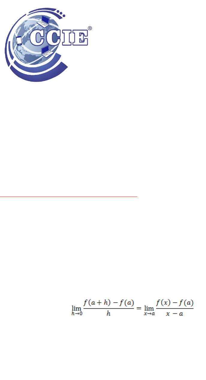 MATEMATICAS 3 Y 4 Introducción al Cálculo Diferencial INTRODUCCIÓN AL CÁLCULO DIFERENCIAL Derivable y derivada Consulta el siguiente material audiovisual: https://www.youtube.com/watch?v=-91UZ9S19Oo Sean II un intervalo abierto de los reales, aa un punto de II y sea la función f:I→Rf:I→R Entonces, decimos que ff es derivable en el punto aa si existe el siguiente límite y, en tal caso, a su valor lo denotamos por f′(a)f′(a): Nota: los dos límites anteriores son equivalentes. Decimos que ff es derivable en II si lo es en todos los puntos del intervalo II. Llamamos derivada de ff a la función f′(x)f′(x) siendo x∈I https://www.youtube.com/watch?v=-91UZ9S19Oo Derivadas elementales Llamamos derivadas elementales o inmediatas a las derivadas de funciones elementales (por ejemplo, la función constante, potencia, coseno, exponencial, logaritmo, etc.). Las funciones más complejas se pueden escribir como composición de funciones elementales. Podremos derivar estas funciones más complejas utilizando las reglas de derivación, la regla de la cadena y las derivadas elementales. Las derivadas elementales se calculan con la propia definición de derivada (calculando el límite) y las escribimos en una tabla (Tabla de derivadas elementales) para utilizarlas al derivar las funciones más complejas. Veamos dos ejemplos del cálculo de derivadas a partir de su definición: Ejemplo 1: derivada de la función constante. Mostrar límite https://www.matesfacil.com/tabla-derivadas.pdf https://www.matesfacil.com/tabla-derivadas.pdf Propiedades y Reglas de derivación Una de las más importantes propiedades es la relación entre derivabilidad y continuidad: Si ff es derivable en el punto aa, entonces ff es continua en aa. demostración Como la función es derivable en aa, Luego la función es continuida en aa. REGLAS DE DERIVACIÓN: 1. Derivada de la inversa: Sea ff derivable en el punto aa tal que la derivada en dicho punto no se anula, esto es, f′(a)≠0f′(a)≠0, y existe la inversa de ff en un entorno de f(a)f(a), entonces demostración Calculamos el límite: 2. Derivada del producto por una constante: Sea ff derivable en aa y sea kk una constante, entonces demostración Calculamos el límite: 3. Derivada de la suma de dos funciones: Sean ff y gg dos funciones derivables en aa, entonces (f+g)′(a)=f′(a)+g′(a)(f+g)′(a)=f′(a)+g′(a) Omitimos la demostración por su inmediatez. 4. Derivada del producto de funciones: Sean ff y gg dos funciones derivables en aa, entonces, demostración Calculamos el límite: 5. Derivada del cociente de funciones: Sean ff y gg funciones derivables en aa siendo g(a)≠0g(a)≠0, entonces demostración Podemos expresar el cociente como un producto: Vamos a demostrar que la derivada del inverso de gg es Así, aplicando la regla del producto, se obtine el resultado que buscamos. Calculamos la derivada del inverso: Regla de la cadena La regla de la cadena es un teorema de gran importancia por su aplicación. Este resultado es el que nos permite calcular la derivada de la composición de funciones. Regla de la cadena: Sean ff y gg dos funciones tales que ff es derivable en aa y gg es derivable en f(a)f(a), entonces (g∘f)′(a)=g′(f(a))⋅f′(a)(g∘f)′(a)=g′(f(a))⋅f′(a) demostración Suponemos que ff no es constante y que ff y gg son derivables en aa y en f(a)f(a), respectivamente. Aplicando la definición de límite a la composición de ff y gg: (g∘f)′(a)=limx→a(g∘f)(x)−(g∘f)(a)x−a=(g∘f)′(a)=limx→a(g∘f)(x)−(g∘f)(a)x− a= =limx→ag(f(x))−g(f(a))x−a==limx→ag(f(x))−g(f(a))x−a= =limx→ag(f(x))−g(f(a))x−a⋅f(x)−f(a)f(x)−f(a)==limx→ag(f(x))−g(f(a))x−a⋅f( x)−f(a)f(x)−f(a)= =limx→ag(f(x))−g(f(a))f(x)−f(a)⋅f(x)−f(a)x−a==limx→ag(f(x))−g(f(a))f(x)−f (a)⋅f(x)−f(a)x−a= =g′(f(a))⋅f′(a)=g′(f(a))⋅f′(a) Veamos un sencillo ejemplo de su aplicación: Calcular la derivada de la función f(x)=sin(x2)f(x)=sin(x2) con el límite de la definición de la derivada sería una tarea más o menos tediosa que podemos evitar. La función f es composición de las funciones h(x)=sin(x)h(x)=sin(x) y g(x)=x2g(x)=x2: f(x)=(h∘g)(x)=h(g(x))f(x)=(h∘g)(x)=h(g(x)) Las derivadas de las funciones implicadas son h′(x)=cos(x)h′(x)=cos(x) y g′(x)=2xg′(x)=2x. Aplicamos la regla de la cadena: f′(x)=h′(g(x))⋅g′(x)=f′(x)=h′(g(x))⋅g′(x)= =cos(x2)⋅2x Recordamos que, formalmente, la derivada de una función es un límite. Sin embargo, como la mayoría de las funciones son una composición de funciones más simples, podemos aplicar reglas para calcular la derivada sin necesidad de límites. Ejemplo: Sea la función Esta función tiene un coseno y una suma de una constante y una potencia. Para hallar la derivada de una función compuesta por otras funciones (como la anterior), aplicamos las reglas de derivación, de la cadena y las derivadas básicas (tabla de derivadas). De este modo, evitamos aplicar la definición formal de derivada, que es mucho más complicado. ACTIVIDADES 1.- REALIZA LA TRANSCRIPCION DE LOS TEMAS 2.- INVESTIGA EN QUE PODEMOS UTILIZAR LAS DERIVADAS EN LA VIDA COTIDIANA O EN LO LABORAL 3.- REALIZA 3 EJEMPLOS DE DERIVADAS 4.- REALIZA 3 EJERCICIOS DE DERIVADAS Y 1 DE EL METODO EN CADENA
