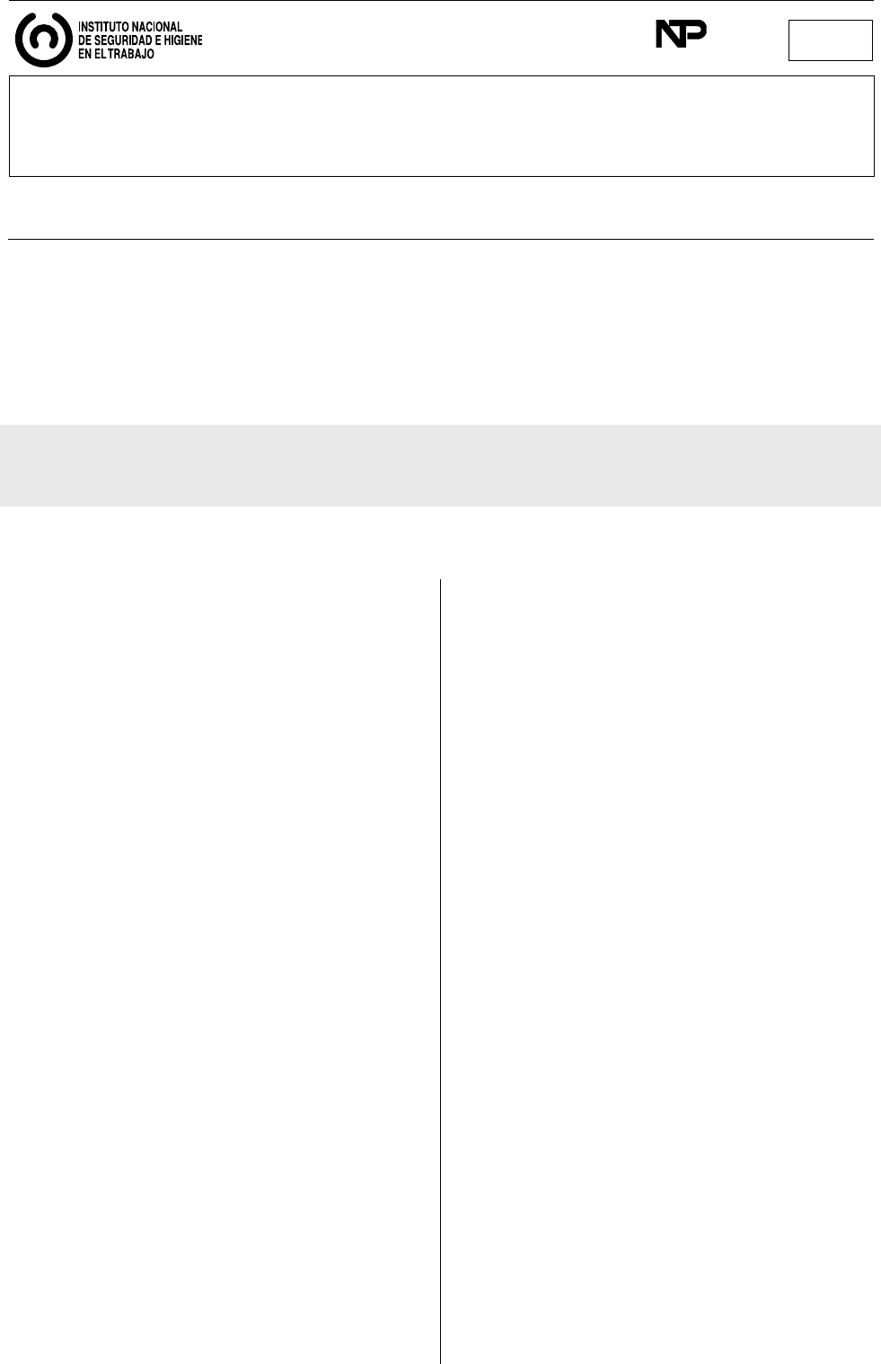 Notas Técnicas de Prevención 839 Exposición a vibraciones mecánicas. Evaluación del riesgo Año: 2009 Las NTP son guías de buenas prácticas. Sus indicaciones no son obligatorias salvo que estén recogidas en una disposición normativa vigente. A efectos de valorar la pertinencia de las recomendaciones contenidas en una NTP concreta es conveniente tener en cuenta su fecha de edición. Exposition à vibrations. Évaluation du risque Vibrations exposure. Risk assessment Redactor: Luis Pujol Senovilla Licenciado en Ciencias Físicas CENTRO NACIONAL DE CONDICIONES DE TRABAJO El objeto de la presente NTP es el de dar a conocer los fundamentos y el método para la evaluación del riesgo de rivado de la exposición a vibraciones mecánicas y ofrecer, a título ilustrativo, unos ejemplos resueltos que contem plan las cuatro situaciones que pueden presentarse. 1. INTRODUCCIÓN La creciente utilización de máquinas y herramientas capa ces de transmitir vibraciones a los trabajadores que las uti lizan planteó la necesidad de reglamentar dicha exposición a fin de garantizar su seguridad y salud. Esta reglamenta ción incluye básicamente el Real Decreto 1311/2005 sobre la protección de la salud y la seguridad de los trabajadores frente a los riesgos derivados o que puedan derivarse de la exposición a vibraciones mecánicas y, por otra parte la obligación impuesta por el R.D. 1435/1992 a los fabrican tes de máquinas y herramientas de informar sobre el nivel de las vibraciones que emiten. El citado R.D. 1311/2005 es la transposición a la le gislación española de la Directiva 2002/44/CE sobre dis posiciones mínimas de seguridad y salud relativas a la exposición de los trabajadores a los riesgos derivados de los agentes físicos (vibraciones) y establece, entre otros aspectos, los valores límite de exposición y los valores que dan lugar a una acción así como la forma de determi nar el parámetro que permite evaluar la exposición. Para esto último hace referencia a la normas ISO 2631 para vibraciones transmitidas al cuerpo entero y UNE-EN ISO 5349 para las vibraciones transmitidas al sistema mano- brazo que, en virtud de su cita explícita en el real decreto, deben ser aplicadas obligatoriamente. El objetivo de esta NTP es exponer de forma concisa la forma de evaluar el riesgo de exposición a vibraciones y ofrecer ejemplos que ilustren la forma de hacerlo. 2.ASPECTOS FUNDAMENTALES De manera general una vibración puede describirse como el movimiento de un cuerpo sólido alrededor de su posición de equilibrio sin que se produzca desplazamiento “neto” del objeto que vibra. Es decir, al final de la vibración el objeto queda en la misma posición que estaba en cuanto empezó a vibrar. Dicho de otra manera: no se produce transporte de materia. El movimiento que se produce al pulsar la cuer da de una guitarra podía ser un buen ejemplo. En caso de que el objeto que vibra entre en contacto con alguna parte del cuerpo humano, le transmite la ener gía generada por la vibración. Esta energía es absorbida por el cuerpo y puede producir en él diversos efectos (no necesariamente perjudiciales) que dependen de las características de la vibración. En prevención de riesgos laborales se toman en consi deración dos tipos de vibraciones mecánicas: • Las vibraciones transmitidas al sistema mano brazo, es decir aquellas que transmiten su energía al cuerpo humano a través del sistema mano brazo cuyo origen hay que buscar, por regla general, en las herramientas portátiles (taladros, martillos neumáticos, desbrozadotas, pulidoras, etc.) y que el R.D. 1311/2005 define como “La vibración mecánica que, cuando se transmite al sistema humano de mano y brazo, supone riesgos para la salud y la seguridad de los trabajado res, en particular, problemas vasculares, de huesos o de articulaciones, nerviosos o musculares.” • Las vibraciones transmitidas al cuerpo entero, es decir, aquellas que el cuerpo recibe cuando gran parte de su peso descansa sobre una superficie vibrante (asiento o respaldo del puesto de conducción de una máquina móvil, plataformas vibrantes, etc.) que el mis mo real decreto define como “la vibración mecánica que, cuando se transmite a todo el cuerpo, conlleva riesgos para la salud y la seguridad de los trabajado res, en particular, lumbalgias y lesiones de la columna vertebral.” 3. CARACTERÍSTICAS DE UNA VIBRACIÓN Los efectos que producen las vibraciones en el cuerpo humano dependen, fundamentalmente, de las siguientes características: • Magnitud de la vibración • Frecuencia • Dirección en que incide en el cuerpo • Tiempo de exposición La magnitud y la frecuencia de la vibración conjuntamen te dan idea de la cantidad de energía que se transmite por la vibración. La magnitud puede medirse en función del despla zamiento producido por la vibración. Por tratarse de un movimiento también puede medirse en términos de la velocidad o la aceleración producidas. De estas tres po sibilidades se ha convenido en utilizar la aceleración ya que, entre otras razones, los acelerómetros piezoeléctri cos presentan importantes ventajas (fiabilidad, tamaño, etc.) frente a otros tipos de transductores. La frecuencia indica el número de veces que vibra por segundo y se mide en hercios (Hz). Las vibraciones producidas por las máquinas, prácticamente nunca van a ser vibraciones de una frecuencia determinada sino una mezcla de vibraciones de diversas frecuencias. De hecho, no se consideran las frecuencias individualmente sino agrupándolas en bandas de tercio de octava. Las octavas que se utilizan en acústica son grupos de frecuencias tales que el límite superior del grupo es el doble que el inferior. Por ejemplo hay una octava en la que se incluyen las frecuencias comprendidas entre 44 y 88 Hz que se caracteriza por su frecuencia central que por convenio se ha establecido en 63 Hz. En el análisis de vibraciones cada una de aquellas bandas se divide 