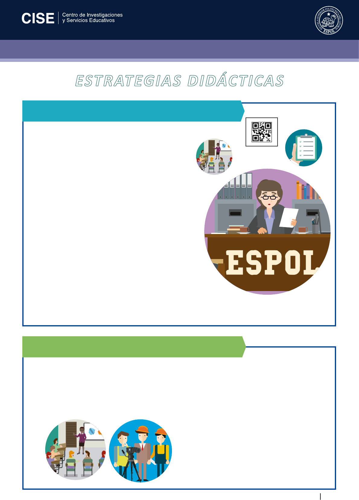 ESTRATEGIAS DIDÁCTICAS Son las estructuras técnico-pedagógicas que diseña el profesor para alcanzar objetivos educacionales a través de procesos sistemáticos (ORDEN LÓGICO) y sistémicos (ARTICULACIÓN) de los diferentes elementos considerados al momento de planificar, tales como principios de aprendizajes, taxonomías de objetivos, actividades técnico - didácticas, uso de TIC, objetos de aprendizaje, modelos de evaluación, instrumentos de medición (rúbricas), etc. Existen estrategias didácticas normalizadas como por ejemplo: aprendizaje basado en problemas y aprendizaje basado en proyectos que tienen un procedimiento definido; sin embargo, los docentes pueden incorporar y adaptar en sus procesos didácticos un conjunto de técnicas y actividades acordes a las necesidades contextuales, con el fin de dinamizar sus clases. De manera general podríamos decir que las ESTRATEGIAS DIDÁCTICAS siguen procesos o etapas en las que el estudiante es el sujeto de los aprendizajes y el profesor asume el rol de tutor cambiando sus funciones por las de planificador, diseñador de procesos y apoyos didácticos, así como de INSPIRADOR, para que los alumnos asuman con interés sus aprendizajes no sólo por las decisiones relacionadas con calificaciones, sino porque les interesa formarse con un alto nivel de competencia profesional. Para el fortalecimiento de competencias los estudiantes requieren desarrollar habilidades tales como la lectura académica, formulación de preguntas, manejo de procesadores de información, comunicación académica efectiva oral y escrita, corrección idiomática, actitudes colaborativas, uso de las TIC, etc. ¿Cómo se puede desarrollar una estrategia? Cartilla Pedagógica Nº 6 Cartilla: Estrategias didácticas 1. Rúbricas A B C D Una estrategia puede desarrollarse en una sesión-clase o varias sesiones (proyectos, unidades de trabajo), para lo cual el uso variado de técnicas ayudará a mantener la motivación. ¿Qué son las estrategias didácticas? El docente debe garantizar los aprendizajes efectivos, integrales y significativos de sus estudiantes, fortaleciendo sus competencias entre la teoría y la práctica, en los diferentes ambientes de aprendizaje, para el desarrollo de los saberes esenciales (saber, saber hacer y saber ser) y de la autonomía del aprender a aprender bajo sus propias estrategias y estilos en la construcción de sus aprendizajes. ¿Sabías que? Cartilla: Estrategias didácticas 2. Artículo 11 Consiste en la planificación del proceso formativo del estudiante, a través de actividades de aprendizaje: componente de docencia, componente de prácticas de aplicación y experimentación de los aprendizajes y componente de aprendizaje autónomo, que garantizan los resultados pedagógicos correspondientes a los distintos niveles de formación y sus modalidades. La organización del aprendizaje deberá considerar el tiempo que un estudiante necesita invertir en las actividades formativas y en la generación de los productos académicos establecidos en la planificación micro curricular. La organización del aprendizaje tendrá como unidad de planificación el período académico. El Consejo de Educación Superior en su Reglamento de Régimen Académico (2016) señala: ORGANIZACIÓN DEL APRENDIZAJE ESTRATEGIA DEFINICIÓN TÉCNICA ACTIVIDAD Es un conjunto de procedimien- tos organizados y ejecutados a través de técnicas para alcanzar el resultado deseado. Supone la habilidad del docente para lograr las metas previstas en cuanto a objetivos para que sus estudiantes obtengan aprendizajes significativos. • Proceso sistemático y sistémico diseñado a base de la creatividad del profesor. • Foro • Mesa redonda • Simulación • Estudio de casos. • Entrevistas • Lectura • Graficación • Consultas • Análisis estadístico Procedimiento didáctico o serie de pasos que busca obtener el aprendizaje significativo a través de una secuencia determinada de actividades, para el desarrollo de dominios conceptuales, procedi- mentales y actitudinales. Acción observable y medible que realiza el estudiante de forma individual o grupal para la consecución del objetivo planteado. EJEMPLOS ¿Cúal es la diferencia entre estrategia, técnica y actividad? Los docentes de Educación Superior deben manejar suficientes y variadas estrategias de aprendizajes para establecer las diferentes actividades que propondrá en la planificación del proceso formativo de sus estudiantes considerando la organización de los aprendizajes. Cartilla: Estrategias didácticas 3. Artículo 15 Actividades de aprendizaje colaborativo Actividades de aprendizaje asistido por el profesor ACTIVIDADES DE APRENDIZAJE Está orientado al desarrollo de experiencias de aplicación de los aprendizajes. Estas prácticas pueden ser, entre otras: actividades académicas desarrolladas en escenarios experimentales, clínicas jurídicas o consultorios jurídicos gratuitos de las lES, laboratorios, prácticas de campo, trabajos de observación dirigida, resolución de problemas, talleres, entornos virtuales o de simulación, manejo de base de datos y acervos bibliográficos, entre otros. La planificación de estas actividades deberá garantizar el uso de conocimientos teóricos, metodológicos y técnico-instrumentales y podrá ejecutarse en diversos entornos de aprendizaje. Las actividades prácticas deben ser planificadas y evaluadas por el profesor. Pueden ser implementadas y supervisadas por el personal académico o los ayudantes de cátedra y de investigación. Corresponden a aquellas actividades que se realizan con el acompañamiento del docente en los diferentes ambientes de aprendizaje. Pueden ser conferencias, seminarios, orientación para estudio de casos, foros, clases en línea en tiempo sincrónico, docencia en servicio realizada en los escenarios laborales, entre otras. Corresponde a actividades de aprendizaje asistidas por el profesor. Podrán incorporar actividades pedag