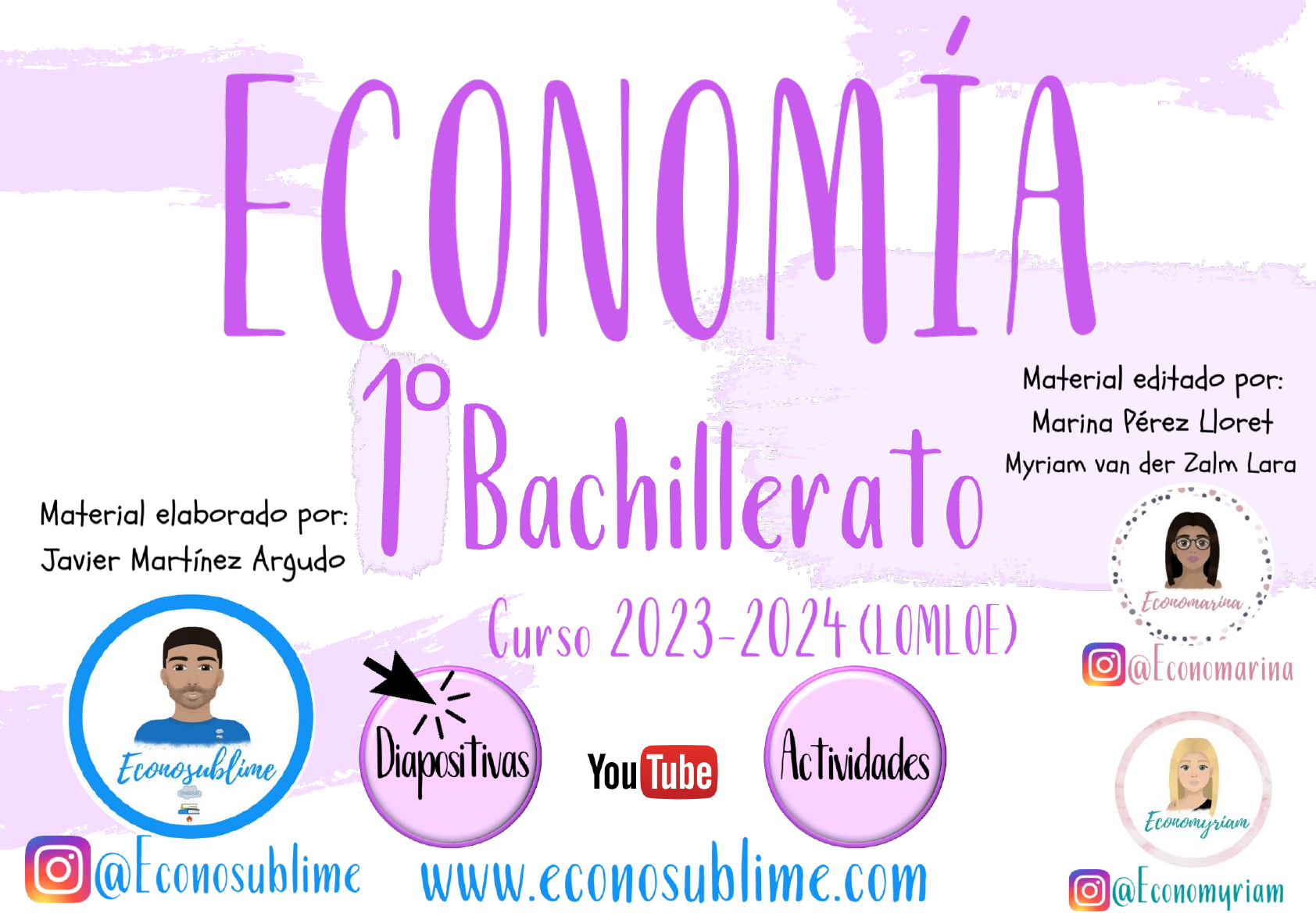 http://www.econosublime.com/ http://www.youtube.com/c/econosublime http://www.econosublime.com/p/diapositivas-economia-1-bachillerato.html http://www.econosublime.com/p/actividades-1-bachillerato-economia.html https://www.instagram.com/econosublime/?hl=es https://www.instagram.com/econosublime/?hl=es https://www.instagram.com/econosublime/?hl=es https://www.instagram.com/economarina/?hl=es https://www.instagram.com/economarina/?hl=es https://www.instagram.com/economarina/?hl=es https://www.instagram.com/economyriam/?hl=es https://www.instagram.com/economyriam/?hl=es https://www.instagram.com/economyriam/?hl=es 2 1. LA SUBLIMACIÓN DE LA ECONOMÍA. 1. ¿Qué es la economía? ........................................... 5 2. Recursos bienes y necesidades ............................. 6 3. Los tipos de bienes y servicios .............................. 7 4. Las características de las necesidades .................. 8 5. Clasificación de las necesidades ........................... 9 6. La escasez económica ......................................... 11 7. ¿Cómo toman decisiones los individuos? ........... 12 8. Piensa como un economista ............................... 18 9. La economía conductual o del comportamiento 20 10. Las ramas de la economía ................................. 22 Actividades 1 ........................................................... 24 2. DECISIONES ECONÓMICAS COLECTIVAS. 1. Los factores productivos ..................................... 26 2. Los problemas económicos básicos .................... 27 3. Bienestar personal y bienestar social ................. 29 4. Cómo interaccionan las personas ....................... 30 5. La frontera de posibilidades de producción ....... 32 6. Ventaja comparativa y ganancias del intercam .. 36 7. Los agentes económicos ..................................... 38 8. El flujo circular de la renta .................................. 39 9. La economía de mercado .................................... 41 10. La economía planificada ................................... 43 11. La economía mixta ............................................ 45 Actividades 2 ........................................................... 48 3. PRODUCCIÓN Y EMPRESA. 1. Sectores económicos e interdependencia .......... 50 2. La empresa y sus funciones ................................. 51 3. Los objetivos de la empresa ................................ 52 4. El proceso productivo .......................................... 53 5. Eficiencia .............................................................. 54 6. La productividad .................................................. 56 7. La producción a corto plazo ................................ 58 8. La producción a largo plazo ................................. 61 9. Los costes en la empresa ..................................... 62 10. El beneficio ........................................................ 65 Actividades 3 ........................................................... 69 4. EL MERCADO 1. El mercado ........................................................... 71 2. La demanda ......................................................... 72 3. Los cambios en la demanda ................................ 75 4. La oferta............................................................... 77 5. Los cambios en la oferta ...................................... 79 6. El equilibrio de mercado ..................................... 82 7.Cambios en las condiciones de mercado ............. 85 8. La elasticidad ....................................................... 91 Actividades 4 ........................................................... 95 5. TIPOS DE MERCADO. 1. Las estructuras del mercado ............................... 97 2. La competencia perfecta .................................... 98 3. La competencia imperfecta .............................. 100 4. El monopolio ..................................................... 102 5. El oligopolio ....................................................... 105 6. La competencia monopolística ......................... 109 Actividades 5 ......................................................... 113 6. EL MERCADO DE TRABAJO. 1. Conceptos del mercado de trabajo................... 115 2. Oferta y demanda de trabajo ........................... 117 4. Las diferencias salariales ................................... 121 5. La brecha salarial .............................................. 122 6. El desempleo ..................................................... 125 7. Causas y tipos de desempleo ............................ 126 8. La medición del desempleo .............................. 129 9. Los efectos del desempleo................................ 131 10. Las políticas de empleo ………………………132 Actividades 6 ......................................................... 135 3. Condiciones especiales del mercado de trabajo 119 3 7. DECISIONES FINANCIERAS Y FINANZAS PERSONALES 1. Ahorro y consumo.........................................137 2. ¿Cómo elaborar un presupuesto? ................138 3. Decisiones de ahorro e inversión .................142 4. Los seguros....................................................147 5. Las deudas .....................................................148 6. Opciones para pedir prestado ......................151 Actividades 7 .....................................................153 8. LA MACROECONOMÍA. 1. La macroeconomía ....................................... 155 2. Los objetivos macroeconómicos .................. 156 3. El producto interior bruto (PIB) ................... 157 4. La medición del PIB ...................................... 159 5. La importancia del PIB: el crecimiento ........ 164 6. Limitaciones del PIB como indicador de calidad de vida .............................................................. 165 7. La demanda agregada .................................. 167 8. La oferta agregada ....................................... 