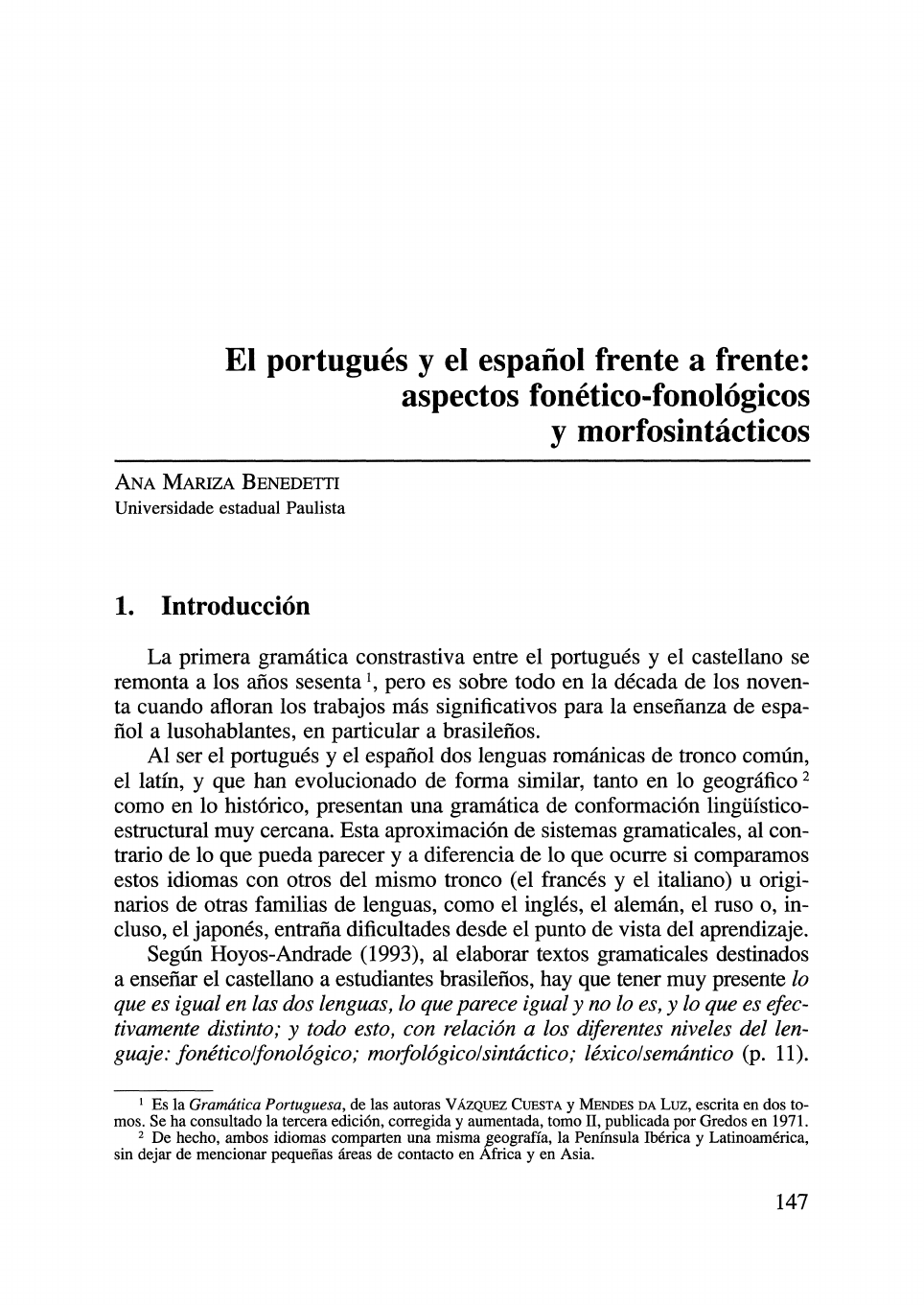 1 Es la Gramática Portuguesa, de las autoras V ÁZQUEZ CUESTA y MENoEs DA Luz, escrita en dos to-