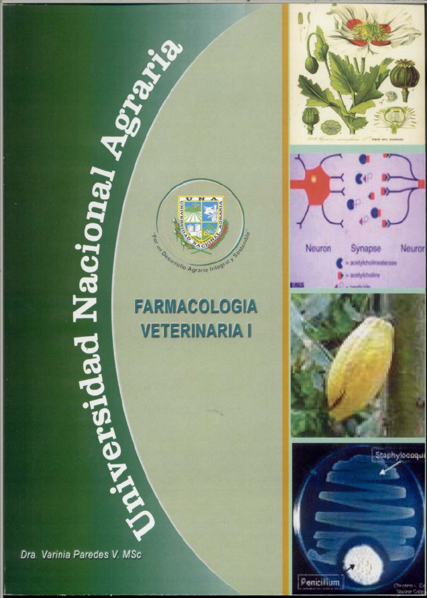UNIVERSIDAD NACIONAL AGRARIA FACULTAD DE CIENCIA ANIMAL Departamento de Veterinaria FARMACOLOGÍA VETERINARIA I Dra. Varinia Paredes V. MSc Managua, Nicaragua Octubre, 2007 Farmacología Veterinaria I Universidad Nacional Agraria Dra. Varinia Paredes Vanegas MSc 1 PRESENTACIÓN El presente Compendio de Farmacología Veterinaria I fue elaborado con el espíritu de colaborar con la preparación de los estudiantes de la carrera de Medicina Veterinaria que cursan el III año de esta noble profesión. Se presentan de manera resumida los temas que conciernen a la Farmacología General, dando al estudiante las bases de los procesos farmacodinámicos de los medicamentos, sus vías de administración, las diferentes presentaciones farmacéuticas, la manera de calcular las dosis de los medicamentos y la escritura de la receta médica. Así también se presentan los temas relacionados a la Farmacología del Sistema Nervioso donde el estudiante obtendrá la información concerniente a anestésicos, analgésicos, antiinflamatorios y relajantes musculares. La Farmacología como toda ciencia está en constante cambio y actualización y es por esto que cito textualmente a los Doctores. Sumano y Ocampo: “Las palabras que se eligen para establecer un hecho farmacológico como cierto, son válidas en el mejor de nuestro entendimiento, pero sólo por un tiempo limitado, hasta que surge nueva información que matice estas “verdades” o incluso las contradiga” Dra. Varinia Paredes Vanegas MSc Docente de Farmacología Veterinaria Universidad Nacional Agraria Farmacología Veterinaria I Dra. Varinia Paredes Vanegas MSc 2 A mis PADRES gracias por la vida y por sus enseñanzas, A mi esposo y mis hijas por su apoyo incondicional siempre Farmacología Veterinaria I Universidad Nacional Agraria Dra. Varinia Paredes Vanegas MSc 3 I. FARMACOLOGÍA GENERAL 1.1 PRINCIPIOS GENERALES DE FAMRMACOLOGÍA 1.2 FARMACOGNOSIA 1.3 FARMACODINAMIA 1.4 FACTORES QUE ALTERAN LA REACCIÓN A LOS FÁRMACOS 1.5 FARMACOCINÉTICA 1.6 FORMAS FARMACÉUTICAS Y RECETA MÉDICA Universidad Nacional Agraria Farmacología Veterinaria I Dra. Varinia Paredes Vanegas MSc 4 1.1 PRINCIPIOS GENERALES DE FARMACOLOGÍA Introducción La farmacología es la ciencia que se ocupa de los fármacos o drogas. Fármaco: Es toda sustancia que introducida en el organismo interactúa con él, dando lugar a un beneficio o a un perjuicio, en función de ello hablaremos de sustancia medicamentosa o medicamento si lo que aparece es beneficio o hablaremos de tóxico si el resultado es perjudicial. La farmacología se ocupa del estudio de los procesos que sufre un fármaco desde que se administra hasta que se elimina, entendiendo por ello la farmacodinamia, farmacocinética, toxicología. En función de que la farmacología estudie fármacos con acción terapéutica beneficiosa o estudio de fármacos en general, podremos hablar de Farmacología pura cuando estudia las interacciones de los fármacos con el ser vivo sin tener en cuenta la acción del fármaco y la Farmacología aplicada, cuando estudia los fármacos que devuelven un efecto beneficioso para el ser vivo. Puede a su vez dividirse la farmacología en función de los fármacos que estudia en cuanto a la acción sobre los diferentes sistemas del organismo. De esta forma se habla de farmacología del sistema nervioso, farmacología del sistema digestivo, farmacología del sistema cardiovascular, farmacología del aparato excretor, farmacología de la piel,... La Farmacología constituye uno de los componentes básicos de la medicina. En su expresión más simple, puede decirse que es la ciencia que estudia los fármacos y agentes químicos que afectan en cualquier sentido, deseable o indeseable, los fenómenos en los seres vivos. Desde el punto de vista etimológico, procede de la voz griega: PHARMAKEIA “empleo de los medicamentos”, que a su vez deriva de PHARMAKÓN: “medicamento”. De modo un poco más estricto, la farmacología es la ciencia que estudia toda sustancia de origen vegetal, animal o mineral capaz de afectar a un ser vivo. Hay quienes se inclinan por definir a la farmacología como la ciencia que estudia las propiedades y reacciones de los fármacos, especialmente en relación con su valor terapéutico. Un médico debe poseer un conocimiento preciso acerca del mecanismo de acción, el metabolismo, de los usos y de las contraindicaciones de los medicamentos a su alcance para poder aplicarlos y recomendarlos en su práctica clínica diaria. El conocimiento de la farmacología resulta indispensable prácticamente en todas las facetas del arte y la ciencia de curar, incluyendo la medicina preventiva y la zootecnia. Farmacología Veterinaria I Universidad Nacional Agraria Dra. Varinia Paredes Vanegas MSc 5 Objetivo de la Farmacología Veterinaria La farmacología especializada en animales distintos al ser humano comparte con muchas otras actividades médicas los mismos objetivos médicos. Es posible afirmar que el fin primordial de esta ciencia consiste en: recomendar y prescribir productos terapéuticos adecuados para la práctica clínica veterinaria; en otras palabras, para la prevención y el tratamiento de los padecimientos en los animales. Dada la profusión de conocimientos que el avance de la ciencia ha permitido lograr, el médico clínico no necesita forzosamente comprender la forma en que se obtienen los medicamentos, ni cómo se formulan. Lo que más directamente le concierne es: • La manera en que funciona el fármaco contra el agente causal de la enfermedad, • Saber que enfermedades pueden reaccionar a que sustancias, • Como deben aplicarse los medicamentos en cada especie animal • Las precauciones que han de acompañar al uso de cada fármaco • Que antagonismo y sinergismo pueden producirse cuando dos o más medicamentos actúan de manera simultánea en el organismo las contraindicaciones de cada fármaco cuando se le emplea como agente terapéutico Considerando este 