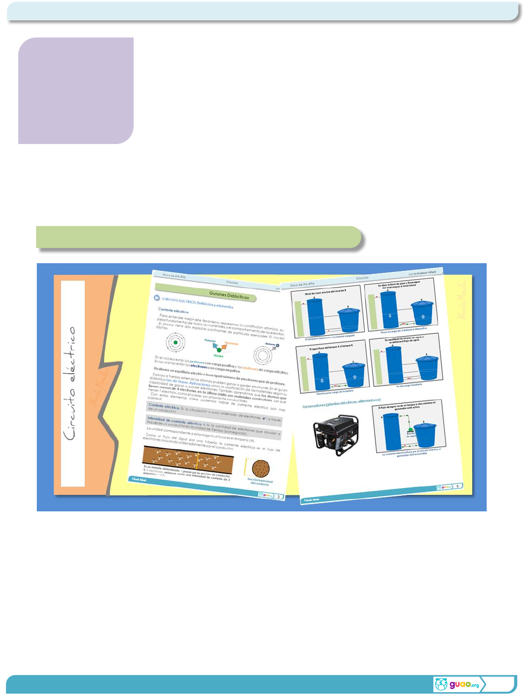 Física de 5to Año con Tu Profesor Virtual Kharla Mérida Circuitos Son parte de nuestra vida diaria, están a nuestro alrededor ya sea que lo pensemos o no. Sin ellos no es posible el funcionamiento de la sociedad tal como la conocemos en la actualidad. Se trata de los circuitos. Los hay en pequeña escala, en un celular por ejemplo, y los hay en gran escala como es una ciudad completa. Aprender los elementos fundamentales nos permite entender su funcionamiento y como sacar mejor provecho de sus beneficios, así como prever posibles fallas. Conozcamos los circuitos eléctricos. 1 Sólo podremos lograr mejores resultados cuando aceptamos que podemos hacerlo mejor de lo que lo hemos hecho hasta ahora. 2.2 Circuito Eléctrico Descripción 2 2da Unidad Electricidad Física de 5to Año con Tu Profesor Virtual Kharla Mérida Circuitos Guiones Didácticos Conocimientos Previos Requeridos Contenido Fuerza eléctrica, Ley de Coulomb, campo eléctrico, ley de gauss, energía potencial eléctrica, potencial eléctrico, despeje, notación científica, capacitancia. 2 Energía Potencial Eléctrico, Potencial Eléctrico, Diferencia de Potencial Eléctrico, Ejercicios. CIRCUITO ELÉCTRICO. Definición y elementos CIRCUITO ELÉCTRICO. Ley de Ohm CIRCUITO ELÉCTRICO. Ejercicios 1 y 2 CIRCUITO ELÉCTRICO. Ejercicio 3 Los videos correspondientes a los guiones didácticos de este capítulo estarán disponibles en próxima entrega. Física de 5to Año con Tu Profesor Virtual Kharla Mérida Circuitos Guiones Didácticos CIRCUITO ELÉCTRICO. Definición y elementos. Corriente eléctrica. Es la circulación o paso ordenado de electrones, e–, a través de un conductor. 3 Para entender mejor este fenómeno, repasemos la constitución atómica, que es la pieza fundamental de todos los materiales, y el comportamiento de los electrones. El átomo tiene dos espacios continentes de partículas esenciales: El núcleo y las órbitas. En las órbitas están los electrones con carga negativa. Un átomo en equilibrio eléctrico tiene igual número de electrones que de protones. Debido a fuerzas externas los átomos pueden ganar o perder electrones. En el guion didáctico Ley de Gauss. Aplicaciones vimos la clasificación de los materiales según su capacidad de ganar o perder electrones. También aprendimos que los átomos que tienen menos de 4 electrones en la última órbita son materiales conductores. Los que tienen 1 electrón, como el cobre, son altamente conductores. Intensidad de corriente eléctrica, I. Es la cantidad de electrones que circulan a través de un conductor en la unidad de tiempo (por segundo). Corriente eléctrica La unidad correspondiente a esta magnitud física es el Amperio (A). Como el flujo del agua por una tubería, la corriente eléctrica es el flujo de electrones circulando ordenadamente por el conductor. En el núcleo están los protones con carga positiva y los neutrones sin carga eléctrica. Con estos elementos claros podemos hablar de corriente eléctrica con mas claridad. Física de 5to Año con Tu Profesor Virtual Kharla Mérida Circuitos Elementos de un circuito eléctrico • Hilos conductores, • Intensidad de corriente, • Fuente de tensión • Resistencia eléctrica • Elementos de protección y control Circuitos eléctricos. Es un sistema por el cual circula una corriente eléctrica. Hilos conductores. Son los elementos por los que circula la corriente eléctrica. Intensidad de corriente. Es la razón de la cantidad de electrones por segundo que pasa por conductor. Ver página anterior. Fuente de tensión o generador. Es el elemento que proporciona la energía necesaria para que los electrones se muevan ordenadamente y en una dirección a través de un conductor, lo que produce una corriente eléctrica. Generadores de corriente comunes para nosotros son: pilas, baterías, dinamos, alternadores, celdas solares. La tensión se representa con “V” o “U”, y se mide en Voltios (V). Los metales son buenos conductores, y los de mayor capacidad conductiva son el cobre, el aluminio, la plata y el oro. Cobre y aluminio ¿Qué ocurre con una batería y qué ocurre con una planta eléctrica? Veamos de forma sencilla a través del fenómeno hidráulico lo que ocurre en ambos casos, por ser similares. Baterías 4 Física de 5to Año con Tu Profesor Virtual Kharla Mérida Circuitos Generadores (plantas eléctricas, alternadores) 5 Física de 5to Año con Tu Profesor Virtual Kharla Mérida Circuitos Elementos de protección y control. Se trata de interruptores que permiten la conexión y desconexión del circuito así como su protección. Resistencia eléctrica. Es la oposición que presentan los cuerpos al paso de la corriente eléctrica. Esto es, son todos los obstáculos que impiden el libre movimiento de los electrones. La resistencia se representa por “R” y su unidad es el Ohmio (Ω ). Los bombillos, motores y aparatos eléctricos en general que reciben la energía eléctrica para realizar algún tipo de trabajo o función son también llamados receptores, y se caracterizan por su resistencia ohmica. Todos ellos consumen energía eléctrica aportada por la fuente de tensión, y la transforman en otra forma de energía, produciendo un efecto útil como la luz, calor, etc. 6 Física de 5to Año con Tu Profesor Virtual Kharla Mérida Circuitos Ley de Ohm. En un circuito recorrido por una corriente eléctrica, la tensión es igual al producto de la intensidad de corriente por la resistencia total del circuito. De esta ley podemos deducir dos relaciones más, despejando I o , respectivamente: V = I Tenemos los elementos fundamentales de un circuito, y las cantidades físicas que interactúan en él. Nombre Magnitud Unidad Aparato de Medida Tensión eléctrica V Voltio (V) Voltímetro Intensidad eléctrica I Amperio (A) Amperímetro Resistencia eléctrica R Ohmio () Óhmetro Ahora necesitamos leyes y reglas que establezcan la relación matemática entre esas tres magnitudes físi