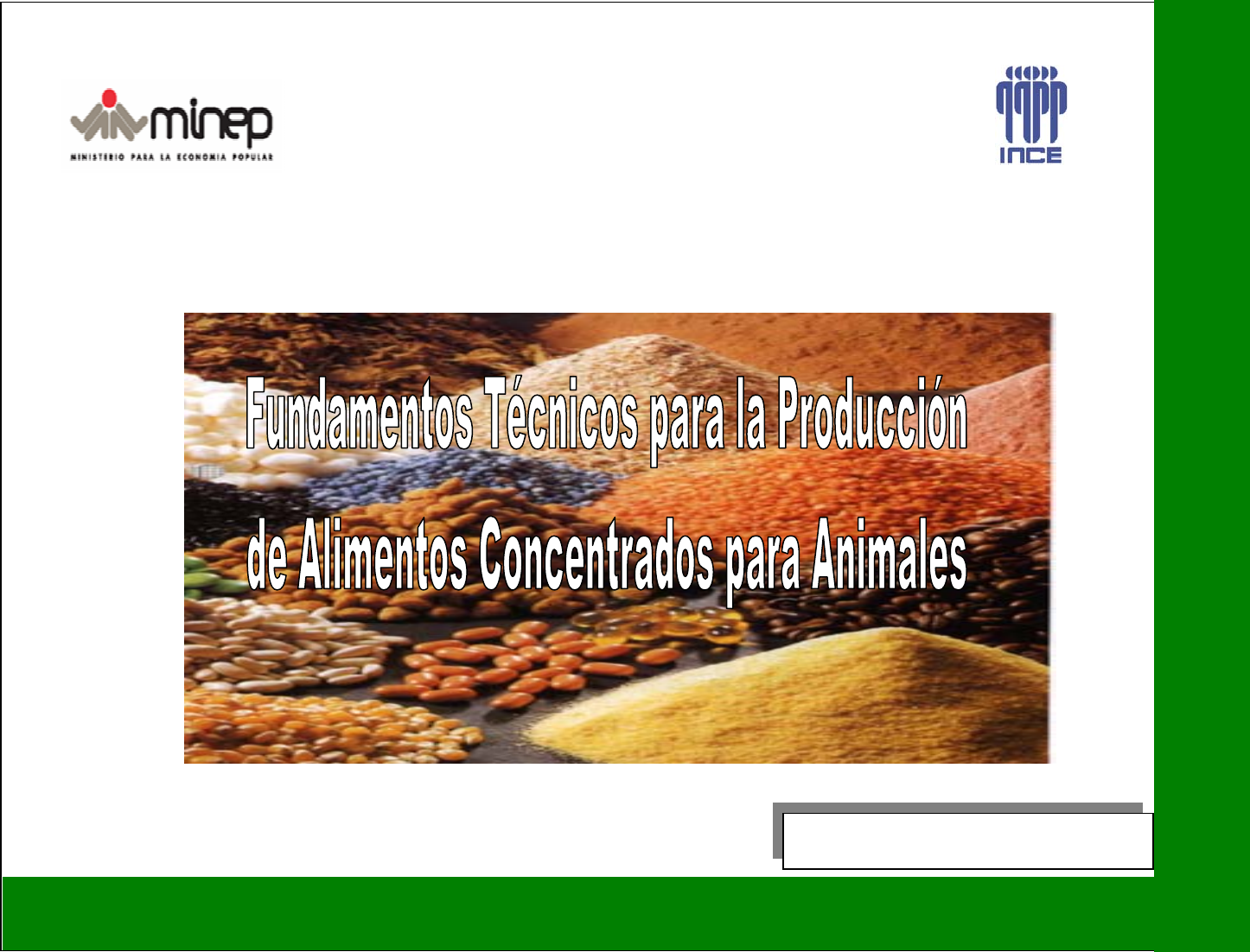 CICLO DE FORMACIÓN: BÁSICO COMPONENTE: TÉCNICO PRODUCTIVO MAB – TP – 1 UADERNO DE ESTUDIO 1 S A L ID A O C U P A C IO N A L P R O D U C T O R D E A L IM E N T O S C O N C E N T R A D O S P A R A A N IM A L E S MÓDULO DE APRENDIZAJE V E N E Z U E L A , 2 0 0 6 REPÚBLICA BOLIVARIANA DE VENEZUELA MINISTERIO PARA LA ECONOMÍA POPULAR INSTITUTO NACIONAL DE COOPERACIÓN EDUCATIVA C REPÚBLICA BOLIVARIANA DE VENEZUELA MINISTERIO PARA LA ECONOMÍA POPULAR INSTITUTO NACIONAL DE COOPERACIÓN EDUCATIVA v Abril, 2006 Especialista en Contenido Ingeniero Agroindustrial Graterol F., Mireya Karina (Instructora - Gerencia Regional INCE Portuguesa) T.S.U.Tecnología de Alimentos Pérez Virgüez Milagros (Instructora - Gerencia Regional INCE Lara) Ingeniero Agrónomo Querales, Robert M. (Analista de proyectos- Dirección de Proyectos el MINEP) Equipo de Validación Médico Veterinario Quevedo Leonardo David (Instructor de Formación INCE Mérida) Ing. Agrónomo en Produc. Animal Silva Jesús Alberto (Instructor de Formación INCE Aragua) Médico Veterinario Peraza Miguel Eduardo (Instructor de Formación INCE Cojedes) Elaboración y Diagramación Marilin N. Tovar S. (Analista Productor de Medios - Gerencia Regional INCE Distrito Capital) Mariela Luna Obregón (Analista Productor de Medios – Gerencia Regional INCE Anzoátegui) Coordinación Técnica Estructural División de Recursos para el Aprendizaje Coordinación General Gerencia General de Formación Profesional Gerencia de Tecnología Educativa 1ra Edición 2006 Copyright INCE ÍNDICE Pág. INTRODUCCIÓN ALIMENTACIÓN DE ANIMALES 3 Reseña Histórica 3 Definiciones Básicas 4 Importancia 5 Función 6 ELEMENTOS NUTRITIVOS 7 Nutrientes 7 Aditivos 8 INGREDIENTES ALIMENTICIOS 11 Energéticos 11 Proteicos 11 REQUERIMIENTOS NUTRICIONALES 14 Aves 14 Energéticos 14 Cerdos 15 Ovinos y Caprinos 18 Bovinos 20 FORMULACIÓN DE ALIMENTOS CONCENTRADOS 23 Importancia 23 Premezclas 23 RECEPCIÓN Y ACOPIO DE MATERIA PRIMA 26 Definición 26 Importancia 26 Silos 26 Equipos 26 Acondicionamiento de los Silos 27 Análisis de la Materia Prima 27 Almacenamiento 27 Equipos, Herramientas y Materiales 27 Equipos de Protección Personal 27 Normas de Seguridad e Higiene 28 Técnica de Trabajo 28 GLOSARIO 29 REFERENCIAS BIBLIOGRÁFICAS 30 INTRODUCCIÓN El cuaderno de estudio correspondiente a la Salida Ocupacional Productor de Alimentos Concentrados para Animales, comprende el Módulo de Aprendizaje denominado: Fundamentos Técnicos para la Producción de Alimentos Concentrados para Animales del Ciclo de Formación Básico, Componente Técnico Productivo. La información presentada en éste cuaderno conllevará a “recibir y acondicionar materia prima para la producción de alimentos concentrado para animales, garantizando el control de calidad en sus procesos, cumpliendo las normas de seguridad e higiene”. Los aspectos que se van a estudiar tienen relación directa con la alimentación de animales, elementos nutritivos, ingredientes alimenticios, requerimientos nutricionales por especie, formulación de los alimentos concentrados y la recepción y acopio de materia prima. Es importante resaltar que éstos ejes temáticos, se ajustan al programa de formación diseñado según los requerimientos de la Salida Ocupacional, en donde los temas o puntos específicos presentan ilustraciones y referencias bibliográficas, que serán utilizadas como insumo para la Construcción Colectiva de la Acción Docente. Se recomienda que investigue, comparta experiencias con sus compañeros y en otras fuentes de estudio; a fin de consolidar y enriquecer los conocimientos adquiridos. ALIMENTACIÓN DE ANIMALES Reseña Histórica Los conocimientos sobre nutrición animal han sido impresionantes como lo demuestran los datos en donde se comparan comportamientos productivos de animales alimentados con dieta formulada en base a los conocimientos de 1930 y 1980. Puede decirse que los progresos en genética y sanidad han influido parcialmente en la mejoría registrada los resultados se han logrado con sol cambiar la formulación de los alimentos. Por lo tanto los mismos pueden atribuirse exclusivamente a la diferencia en conocimiento sobre nutrición animal en el lapso indicado de 50 años. Algunos de los descubrimientos más relevantes en el área durante el medio siglo en cuestión, han sido los siguientes: • Vitaminas del llamado complejo B se definió su papel como cofactores de reacciones metabólicas. • Se identificó el aminoácido treonina y se determinaron las necesidades de aminoácidos principalmente en cerdos y aves. • Los factores no identificados (subproductos de alfalfa, de leche o de fermentación) y el llamado factor de proteína animal fueron aclarados, al aislarse sus contenidos en vitaminas minerales o aminoácidos. Esto permitió la formulación de dietas compuesta exclusivamente de proteínas de origen vegetal. • Se inicio y posteriormente se generalizó el empleo de la grasa (animal o vegetal) en la fabricación de alimentos de elevado contenido energético, para su uso en aves. • El empleo de ureas y otros ingredientes conteniendo nitrógeno no proteico se extendió de tal forma que en la actualidad se utilizan cientos de miles de toneladas para la alimentación animal. • Se desarrollo y se extendió el uso de sustitutos de leche fresca para la alimentación de becerros. En el caso de los cerdos, “las cerdas” artificiales, los preiniciadores y los Fundamentos Técnicos para la Producción de Alimentos Concentrados para Animales 3 sustitutos de leche han permitido destetes de siete o menos días. • Los procesos de fabricación de alimentos balanceados se han visto mejorados con nueva tecnología para incrementar el valor nutritivo de los alimentos. Definiciones Básicas NUTRICIÓN Ciencia que estudia los procesos físicos y químicos que sufre el alimento durante su paso por el tubo digestivo, la absorción de los nutrientes liberados a través de las par