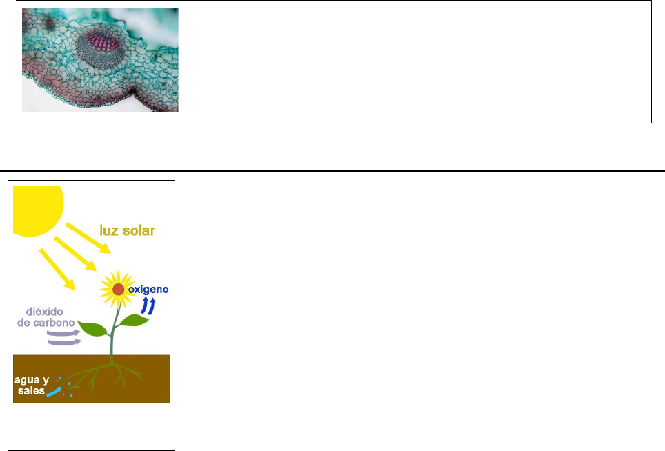 Tema 8: Reino plantas. 1 Tema 8: Reino plantas.Tema 8: Reino plantas. por Concepción Rodríguez-Rey y Paloma Chapuli. Índice de contenido Plantas autótrofas y animales heterótrofos:..........................................................................1 Clasificación:..........................................................................................................................2 Briofitas y pteridofitas. Plantas sin flores ni semillas.............................................................3 Espermafitas. Plantas con flores y semillas..........................................................................4 Clasificación de angiospermas..............................................................................................6 Reproducción de espermafitas..............................................................................................8 Flores.................................................................................................................................8 Semilla y fruto..............................................................................................................................10 El reino plantas incluye organismos pluricelulares y autótrofos. Se diferencian de las algas por desarrollar tejidos especializados. Esto significa que sus células están cementadas entre sí y se especializan en funciones concretas como absorber nutrientes, fijar carbono, sostener la planta, etc. Tanto es así, que las células no fotosintéticas no pueden conseguir alimento y sólo las células que absorben agua tienen acceso a ella. Para solventar este problema aparecen los vasos conductores tejidos especializados en ditribuir las sustancias necesarias a todas las células del organismo. Plantas autótrofas y animales heterótrofos: Habrás estudiado que los seres autótrofos son los que pueden fabricar su propio alimento. Ahora vamos a matizar esta definición: • Los animales utilizamos el alimento para construir nuestro cuerpo y hacerlo funcionar. Para nosotros, este alimento debe ser otro ser vivo, somos heterótrofos. • Las plantas, sin embargo, construyen su cuerpo y lo hacen funcionar a partir de materia inorgánica, inerte, mineral. Son autótrofos. Extraen las moléculas necesarias del aire y del sustrato. Y las transforman en materia viva mediante un proceso llamado fotosíntesis. Las plantas tienen tejidos especializados en extraer el agua y las sales disueltas del suelo, lo que les obliga a permanecer fijos al sustrato. También tienen tejidos especializados en renovar el aire, para captar dióxido de carbono (CO2) y expulsar oxígeno (O2). Otros tejidos convierten el dióxido de carbono y el agua en materia orgánica que se utiliza para crear estructuras y Corte transversal de un tallo de romero. De abajo a arriba podemos diferenciar una capa de células protectoras para evitar la desecación en el medio terrestre, una capa de células fotosintéticas (coloreadas de rojo en la imagen). Y en el centro los vasos conductores de una nerviadura (en rojo con células grandes los de subida desde la raíz y en azul con células pequeñas los de bajada desde las hojas). Imagen compartida por Etzold green. Fotosíntesis. Imagen compartida por At09kg. 2 Apuntes Marea Verde hacerlas funcionar. Para este proceso utilizan como energía la luz solar, captada por un pigmento llamado clorofila que da a los vegetales ese característico color verde. luz + CO2 + H2O = Materia orgánica + O2 (se elimina) Clasificación: Hay dos grandes grupos de vegetales: Sin flores (se reproducen por esporas): • BRIOFITAS: musgos • PTERIDOFITAS: helechos Con flores (se reproducen por semillas): • ESPERMAFITAS, que pueden ser – GIMNOSPERMAS: sin fruto. – ANGISOPERMAS: con fruto. BRIOFITA Los musgos a menudo crecen sobre árboles. No son parásitos, son seres autótrofos, lo que consiguen es recibir mejor la luz solar. El musgo es más abundante en el lado norte, por ser más húmedo, este dato puede utilizarse para orientarse en el bosque sin brújula. Imagen de Oliver Herold. PTERIDOFITA Los helechos suelen cubrir el suelo de los bosques húmedos, especialmente si no hay arbustos. Por su hoja y su porte a menudo se utiliza como planta ornamental de interior. Imagen compartida por Fastily. GIMNOSPERMA Las piñas son las flores típicas de las gimnospermas. En realidad son inflorescencias, agrupaciones de flores y de cada una de ellas saldrá un piñon, que es la semilla. Imagen compartida por Dcrjsr. ANGIOSPERMA Las flores de las angiospermas son las más vistosas. Sus semillas estarán rodeadas de un fruto, como ocurre con los melocotones. Imagen compartida por Conchi Rodriguez-Rey. Partes de una planta: Son organismos adaptados al medio terrestre. De forma general pueden diferenciarse cuatro estructuras: • RAÍZ: parte subterránea que absorbe agua y sales minerales del suelo. • TALLO: parte aérea de la planta le sirve de sostén. Puede ser herbáceo y realizar la fotosíntesis o leñoso, que no realiza fotosíntesis pero soporta más peso. • HOJAS: parte aérea donde se capta la luz solar y se realiza el intercambio de gases. ------ Solo espermafitas ------ • FLORES: parte de la planta especializada en la reproducción. Incluye estructuras para atraer insectos, diseminar el polen por el aire, desarrollar embriones, etc. Imagen extraída del CNICE. Tema 8: Reino plantas. 3 Las plantas pueden acumular sustancias de reserva en cualquiera de estos órganos. Ejemplos de raíces de almacenaje son las zanahorias o los rábanos. Como ejemplos de tallos de reserva tenemos los cactus o las patatas. Las cebollas y muchas plantas carnosas acumulan en las hojas. En las semillas siempre se acumulan reservas para el futuro embrión como las judías, los piñones o las nueces. Y en el caso de las angiospermas también acompañan a la semilla reservas en el fruto como las manzanas o los melocotones. Briofitas y pteridofitas. Plantas sin flores ni sem
