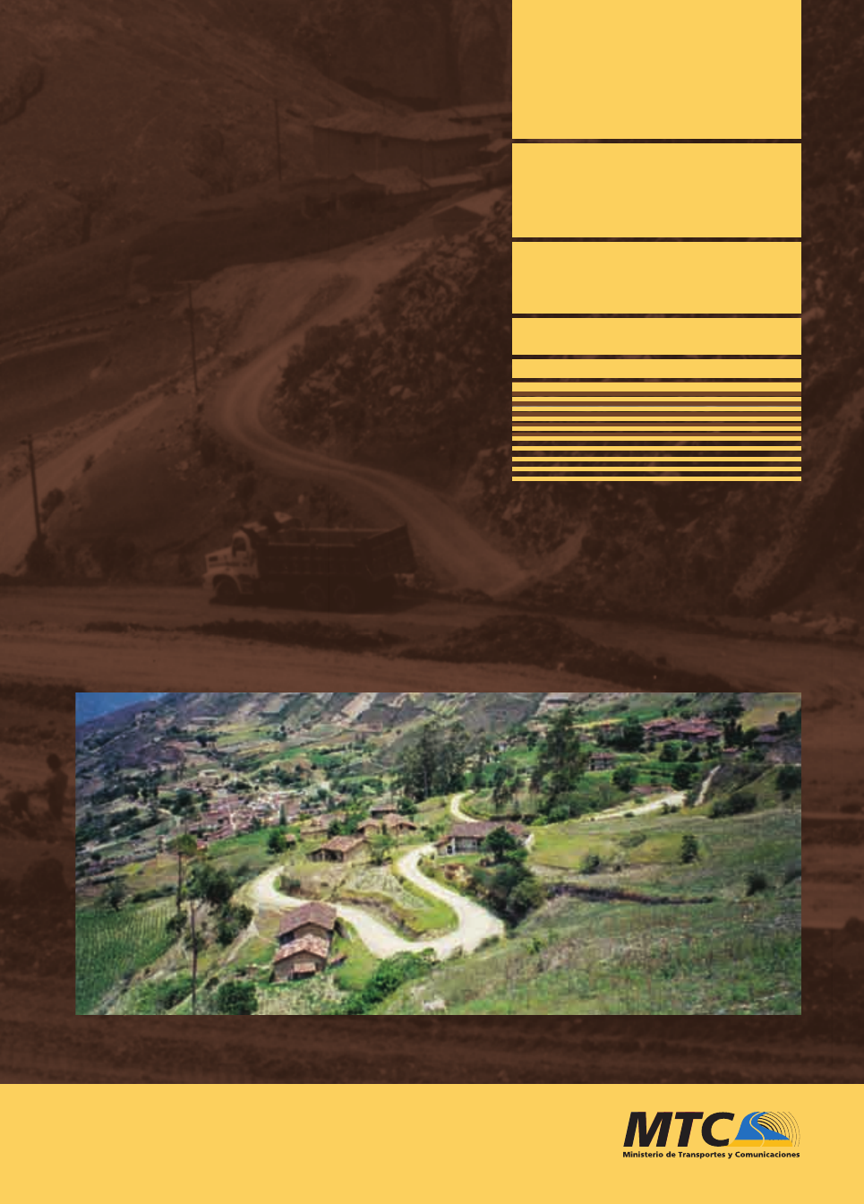 Ministerio de Transportes y Comunicaciones Dirección General de Caminos y Ferrocarriles M A N U A L D E D IS EÑ O D E C A R R ET ER A S N O P AV IM EN TA DA S D E BA JO V O LU M EN D E TR Á N SI TO El Plan Binacional de Desarro- llo de la Región Fronteriza Perú- Ecuador fue constituido por los gobiernos de Perú y del Ecuador, con el propósito de impulsar y canalizar esfuerzos orientados a promover el desarrollo y elevar el nivel de vida de sus respectivas poblaciones. La infraestructura vial es uno de los principales soportes para el desarrollo del ámbito de la región fronteriza con el Ecuador, en es- pecial los caminos de bajo volu- men de tránsito que interconectan poblaciones rurales, muchas veces localizadas en zonas lejanas fron- terizas. Por ello, ha sido muy grato para el Capítulo Perú del Plan Binacional de Desarrollo de la Región Fron- teriza Perú - Ecuador colaborar con el Ministerio de Transportes y Comunicaciones en el objetivo de difundir normas para la con- servación, diseño y especifi cacio- nes técnicas para la construcción de carreteras de bajo volumen de tránsito y, en particular, apoyar en la publicación del “Manual de Di- seño de Carreteras No Pavimentadas de Bajo Volumen de Tránsito”, con un fi nanciamiento fruto de una co- operación que le fue otorgada por la Corporación Andina de Fomento – CAF. Consolidando la paz con desarrollo. Plan Binacional de Desarrollo de la Región Fronteriza Perú-Ecuador CAPÍTULO PERÚ MANUAL DE DISEÑO DE CARRETERAS NO PAVIMENTADAS DE BAJO VOLUMEN DE TRÁNSITO RE PÚB LICA DEL PERÚ D IS EÑ O : C A R LE SS I P la n B in ac io na l d e D es ar ro llo de la R eg ió n F ro nt er iz a Pe rú - E cu ad or Av . S ala ve rry N ° 2 89 0 Li m a 2 7, P er ú • T elf .: (5 11 ) 4 63 –1 1– 55 F ax (5 11 ) 4 60 –6 0– 76 • w ww .p lan bi na cio na l.o rg .p e • pe ru @ pl an bi na cio na l.o rg .p e Consolidando la paz con desarrollo Plan Binacional / 2 do pqte / Manual Diseño No Paviment / OT 9076 / Lomo OK 1.3 cm 208 pp / medida 53.8 x23.5 cm MANUAL PARA EL DISEÑO DE CARRETERAS NO PAVIMENTADAS DE BAJO VOLUMEN DE TRÁNSITO Lima - Perú, marzo de 2008. MANUAL PARA EL DISEÑO DE CARRETERAS NO PAVIMENTADAS DE BAJO VOLUMEN DE TRÁNSITO CONTENIDO Presentación .............................................................................. 11 Marco del manual a) Introducción .............................................................................. 15 b) Objetivos .............................................................................. 15 c) Alcances del manual ........................................................................ 16 CAPÍTULO 1: FUNDAMENTOS DEL MANUAL 1.1 Clasificación de carreteras y tipos de obra considerados en el manual .............................................................................. 21 1.2 Derecho de vía o faja de dominio ................................................... 22 CAPÍTULO 2: PARÁMETROS Y ELEMENTOS BÁSICOS DEL DISEÑO 2.1 Parámetros básicos para el diseño .................................................. 27 2.1.1 Metodología para el estudio de la demanda de tránsito ...... 27 2.1.1.1 Índice Medio Diario Anual de Tránsito (IMDA) ...... 27 2.1.1.2 Volumen y composición o clasificación de los vehículos ............................................................... 28 2.1.1.3 Variaciones horarias de la demanda ..................... 29 2.1.1.4 Variaciones diarias de la demanda ....................... 29 2.1.1.5 Variaciones estacionales (mensuales) .................. 29 2.1.1.6 Metodología para establecer el peso de los vehículos de carga, que es importante para el diseño de los pavimentos, pontones y puentes .... 29 2.1.1.7 Información mínima necesaria .............................. 30 2.1.2 La velocidad de diseño y su relación con el costo de la carretera .............................................................................. 30 El marco del manual 6 2.1.3 La sección transversal de diseño ........................................ 31 2.1.4 Tipos de superficie de rodadura ......................................... 32 2.2 Elementos del diseño geométrico .................................................... 32 CAPÍTULO 3: DISEÑO GEOMÉTRICO 3.1 Distancia de visibilidad ..................................................................... 37 3.1.1 Visibilidad de parada ........................................................... 37 3.1.2 Visibilidad de adelantamiento .............................................. 38 3.2 Alineamiento horizontal .................................................................... 39 3.2.1 Consideraciones para el alineamiento horizontal ................ 39 3.2.2 Curvas horizontales ............................................................. 41 3.2.3 Curvas de transición ............................................................ 41 3.2.4 Distancia de visibilidad en curvas horizontales ................... 43 3.2.5 Curvas compuestas ............................................................. 43 3.2.4 Peralte de la carretera ........................................................ 44 3.2.5 Sobre ancho de la calzada en curvas horizontales ............. 53 3.3 Alineamiento vertical ........................................................................ 54 3.3.1 Consideraciones para el alineamiento vertical .................... 54 3.3.2 Curvas verticales ................................................................. 55 3.3.3 Pendiente............................................................................. 56 3.4 Coordinación entre el diseño horizontal y del diseño vertical .......... 57 3.5 Sección transversal .......................................................................... 60 3.5.1 Calzada .............................................................................. 60 3.5.2 Bermas .............................................................................. 60 3.5.3 