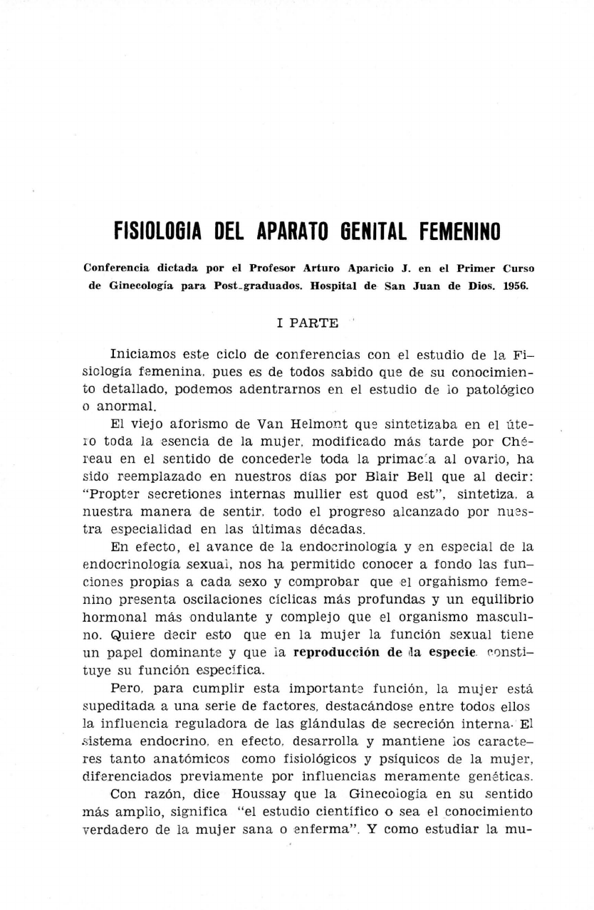 FISIOLOGIA DEL APARATO GENITAL FEMENINO Conferencia dictada por el Profesor Arturo Aparicio J. en el Primer Curso de Ginecología para PosLgraduados. Hospital de San Juan de Dios. 1956. I PARTE Iniciamos este ciclo de conferencias con el estudio de la Fi- siología femenina . . pues es de todos sabido que de su conocimien- to detallado, podemos adentrarnos en el estudio de lo patológico o anormal. El viejo aforismo de Van Helmont que sintetizaba en el úte- ro toda la esencia de la mujer. modificado más tarde por Ché- r,eau en el sentido de concederl,e toda la primac'. a al ovario, ha sido r·eemplazado en nuestros días por Bl'air Bell que al decir: "Propter secretiones internas mullier est quod est", sintetiza, a nuestra manera de sentir. todo el progr,eso alcanzado por nues- tra especialidad en las últimas décadas. En efecto, el avance de la endocrinología y en especial de la endocrinología sexual, nos ha permitido conocer a fono.o las fun- ciones propias a cada sexo y comprobar que e l organismo feme- nino presenta oscilaci,ones cíclicas más profundas y un equilibrio hormonal más ondulante y compl,ejo que el organismo mascull- no. Quiere decir esto que en la mujer la función sexual tiene un papel dominant·e y que ia reproducción de !la especie. r.0nsti- tuye su funci-ón específica. P,ero. para cumplir esta importante función, la mujer está supeditada a una serie de factores, destacándose entre todos ellos la influencia reguladora de las glándulas de secr,eción interna- El .:,istema endocrino. ·en efecto, desarrolla y mantiene los caracte- res tanto anatómicos como fisiológicos y psíquicos d,e la muj er, diferenciados previamente por influencias meramente genéticas. Con razón, dice Houssay que la Ginecología en su sentido má.s amplio, significa "el estudio científico o sea el conocimiento verdadero de la mujer sana o enferma". Y como estudiar la mu- 340 REVISTA COLOMBIANA DE OBSTETRICIA Y GINECOLOGÍA j er sana es nuestro propósito, quiero antes de tratar de la fisiolo- gía de cada uno de los órganos que forman el aparato genital, estudiarla a través de las diversas etapas por 1as que discurre la vida normal de la mujer. Etapas de la vida sexual de 1.a muj,er La muj er es semejante al hombre por los caracteres comu- r..es propios de la especie, pero difiere de él fundamentalmente tanto desde ,ei punto de vis ta anatómico, como del psíquico o fun- cional. Desde el punto de vista funcional, ·el aparato gen ital de la mujer tiene por objeto el perpetuar la especie. Pero, para cum- plir -esta importante función , el orga nismo materno tiene que pre- pararse de una manera periódica; engendrar el nuevo ser; ali- mentarlo y mantenerlo durante ia g8stación y finalmente ha- cerse e-argo de su nutrición durante los prim2ros mes,es de la vida extrauterina. Ahora bien: ,en el desarrollo y mant2nimiento de todas estas funciones desempeña un papel primordial el equili- brio de varias hormonas, elaboradas por las glándulas endocri- nas en intima relación con la ganada femenina . Y así podemos afirmar que el ovario tiene relaciones estrechas con todas las glándulas endocrinas (timo, tiroides, epifisis, corteza suprarre- nal). pero especialmente interesantes con el lóbulo anterior de la hipófisis. Las r·elaciones con las primeras de estas glándulas son to- davía mal conocidas; la coincidencia de la regresión del timo con el despertar funcional del ovario permite sospechar una ac- ción frenadora de aquél sobre éste; en cambio, el tiroides esti- mula por int~rmedio del recambio g1eneral 1el funcionamiento del ganado femenino. En cuanto a las relaciones con el sistema córticosuprarr·enal, todo induce a suponer que -ellas se efectúan por intermedio del ,ébulo anterior de la hipófisis. Pero la función sexual femenin a, en su triple aspecto game- tog,énico, estrogénico y progestac;ional, está regulada por el sis- tema hipófiso-ovárico , o sea ,el conjunto formado por el lóbu- lo anterior de la hipófisis y el ovario. A su vez, ·el lóbulo anterior sufr,e la influencia reguladora de un mecanismo hipotalámico, que aunque no bi,en conocido en los detalles de su fisiología, es a no dudarlo, de gran importancia. REVISTA COLOMBIANA DE OBSTETRICIA Y GINECOLOGÍA 341 Sistema hipófi'so-ovárico Aun cuando las interrelaciones fun cionales de es te sist ema ~ólo se han eomproba do en animaies de experimenta ción es pe- cialmente •en la rata, ya que la exploración en la mujer resulta a todas luces casi inaccesible, aceptamos en la a ct ualidad y como elementos básicos los siguientes: l. Las células basófilas del lóbulo anterior de la hipófi sis. que f' laboran 1as gonadotrofinas A, B y pr obablemente también la C; 2'- Las célu1a.s de la teca y de la granulosa y el cuerpo ama- r illo en la primera parte d e su desarroilo , que elaboran los e:stró- genos, y 3. El cuerpo amarillo, qu,e elabora la progesterona. Pero an- t es de estudiar sus ínter-relaciones, cre_am-os conveni,ente aclarar r.ues tro concepto en relación con la nomenclatura adoptada por nosotros ,en el presente trabaj-o. En efecto: llamamos "gonadotrofinas" a las hormonas del ~óbulo anterior de la hipófisis. por indicar que e jercen una ac- ción trófica sobre las ganadas, tanto femeninas como m a.scuii- nas. El nombre de Hormón folículo-estimulante , F . S. H. , de la escuela norteamericana, nos parece inapropiado o al menos s·e puede prestar a confusión ya que si bien ,es cierto qua en la hem- bra ej,erce una acción de maduración foiicular , en el varón la misma hormona provoca la maduración del epitelio germinati- vo espermático. Llamamos, pues a este hormón : Gonadotrofina A. Igual sucede con el factor luteinizantie, represantado por las letras L. H. , de la nomenclatura americana, que tan sólo indica su acción sobre ,eJ desarrollo del cuerpo amariLlo en la h embra. pero omite tácitament·e su acción trófica sobre las células de Leydig, que regula la 