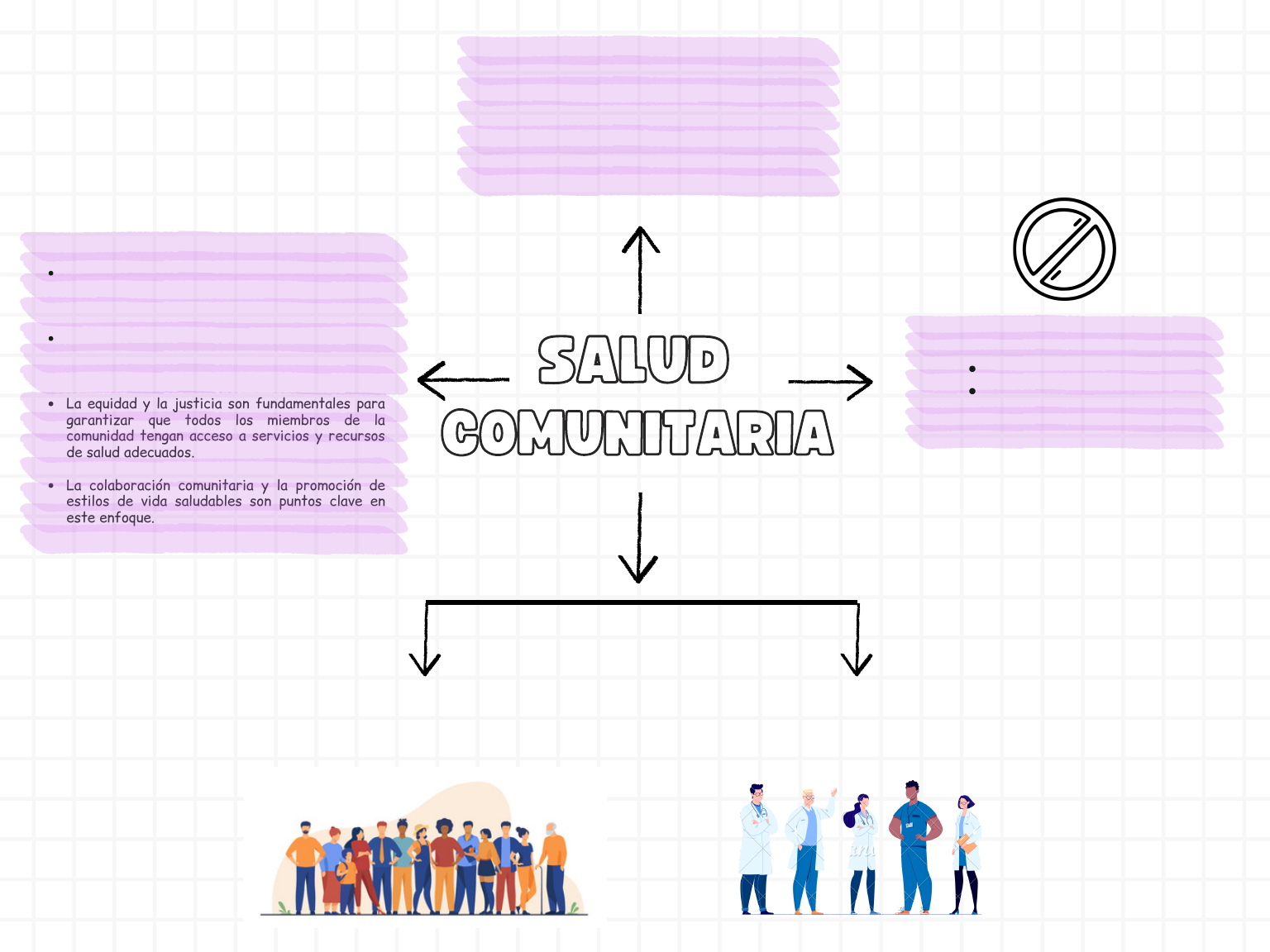 Es un enfoque integral que busca promover el bienestar y prevenir enfermedades dentro de una población específica. Se centra en la participación activa de la comunidad en la identificación de necesidades de salud y la toma de decisiones. La equidad y la justicia son fundamentales para garantizar que todos los miembros de la comunidad tengan acceso a servicios y recursos de salud adecuados. La colaboración comunitaria y la promoción de estilos de vida saludables son puntos clave en este enfoque. COMUNITARIACOMUNITARIA SALUDSALUD ES EL CONJUNTO DE ACTUACIONES DESTINADAS A MEJORAR LA SITUACIÓN DE SALUD DE LA COMUNIDAD PARTICIPATIVA TECNOCRÁTICA Clínicas privadas Salud individual AINARA QUIJIJE BIBLIOGRAFÍA AINARA QUIJIJE Cotonieto-Martínez, E., & Rodríguez-Terán, R. (2021). Salud comunitaria: Una revisión de los pilares, enfoques, instrumentos de intervención y su integración con la atención primaria. Jounal Of Negative And No Positive Results, 6(2), 393-410. https://doi.org/10.19230/jonnpr.3816 Desarrollo comunitario - 1589 Palabras | Monografías Plus. (s. f.). https://www.monografias.com/docs/Desarrollo-comunitario-PKNECNUYSQVA