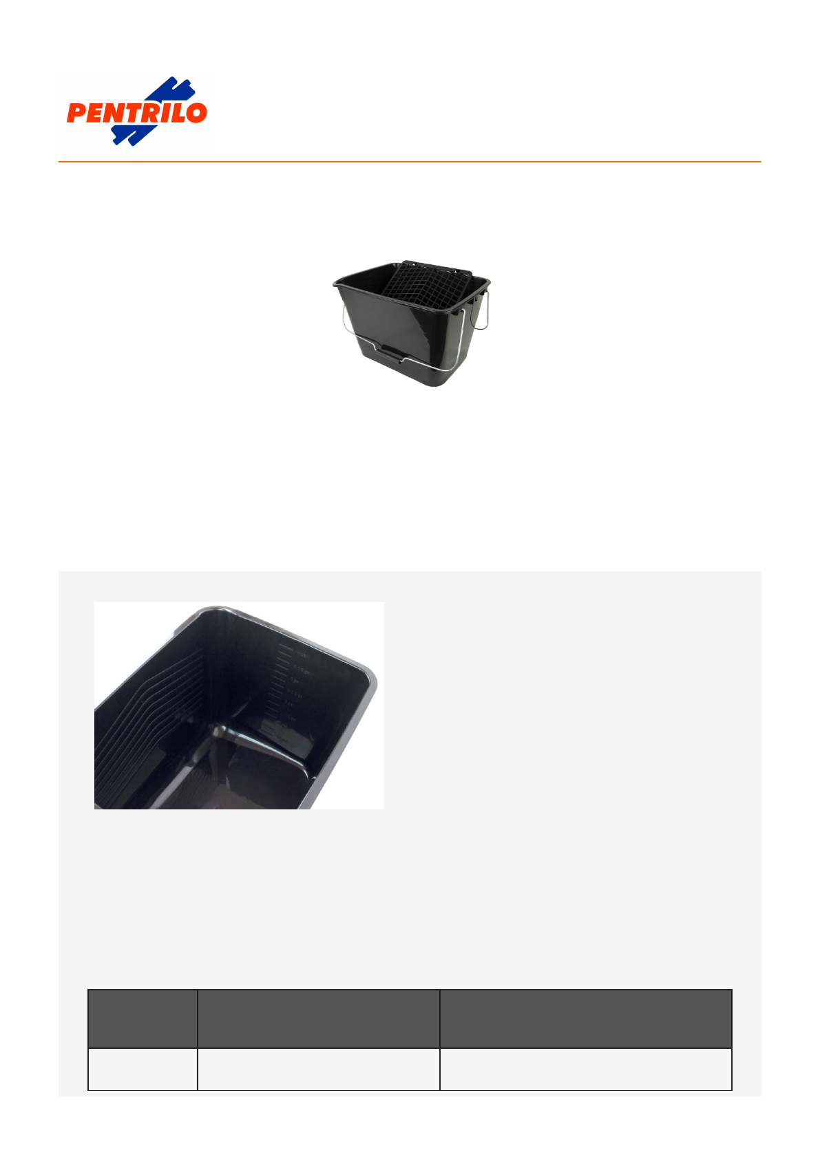 Cubeta Pro Plástico 16L + Rejilla de Plástico Recomendada para rodillos de 22cm y 25cm La cubeta que te permitirá cargar pintura en cantidad y con seguridad. Aprovecha mejor la pintura Base inclinada para mejor aprovechamiento de la pintura. Tabla de productos ref. medida descripción 13231 34,5 x 28 x 21,5 cm Cubeta + Rejilla ref. medida descripción 13232 34,5 x 28 x 21,5 cm Cubeta + Rejilla | En palet ¿Dónde comprar? Tienda más próxima URL de origen: https://www.pentrilo.com/productos/otros/cubetas/cubeta-pro-plastico-16l-rejilla-de-plastico