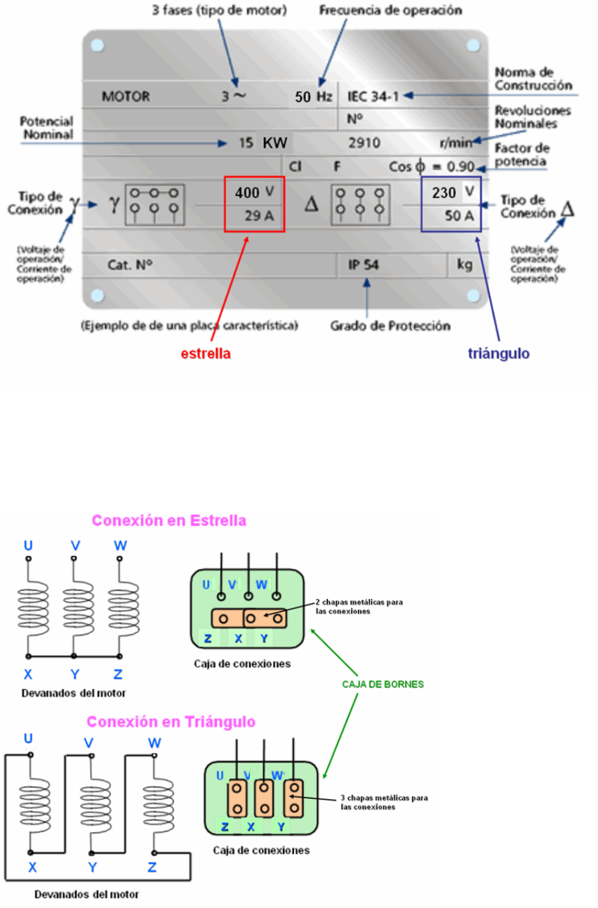 LECTURA DE PLACA CARACTERÍSTICAS DE UN MOTOR CONEXIONADO DEL MOTOR SEGÚN TENSIÓN