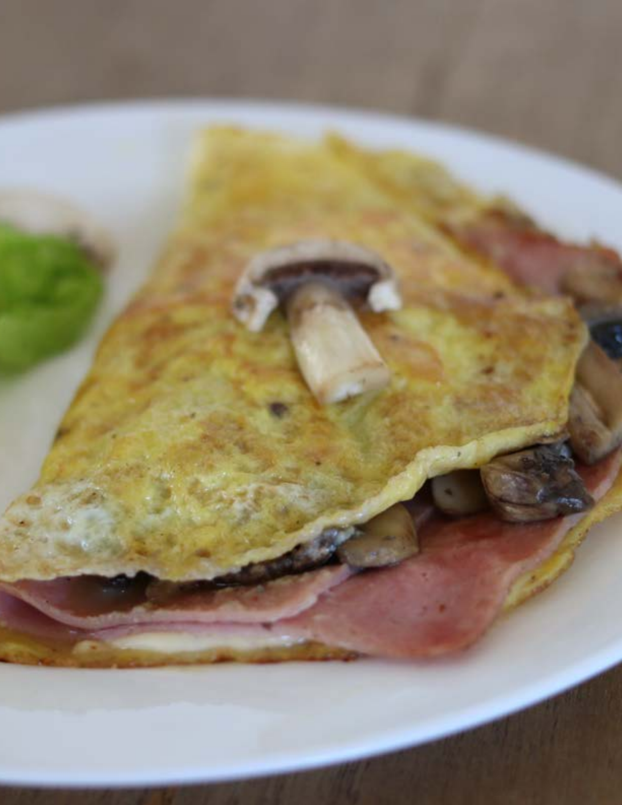 26 27 OMELETE DE JAMÓN Y QUESO TIEMPO TOTAL: 10 MIN | PORCIONES: 1 Un clásico que no falla, y con sólo 1 g de carbohidratos netos! INGREDIENTES ⬚ 3 huevos ⬚ 50 g de jamón cocido feteado ⬚ 50 g de queso feteado ⬚ Cantidad necesaria de sal, pimienta y aceite de oliva PREPARACIÓN 1. Bata ligeramente los huevo, salpimiente a gusto. 2. Caliente una sartén a fuego medio con un chorrito de aceite de oliva. Agregue los huevos y cocine por 2-3 minutos o hasta dorar. Agregue el jamón y el queso. Cierre la base por la mitad con una espátula. 3. Cocine por 2 minutos más, gire el omelete delicadamente con la espátula y deje otro par de minutos más para fundir el queso. Tips: Añade al relleno los ingredientes low carb que más te gusten: hongos, aceitunas, cherries, hierbas frescas, etc.