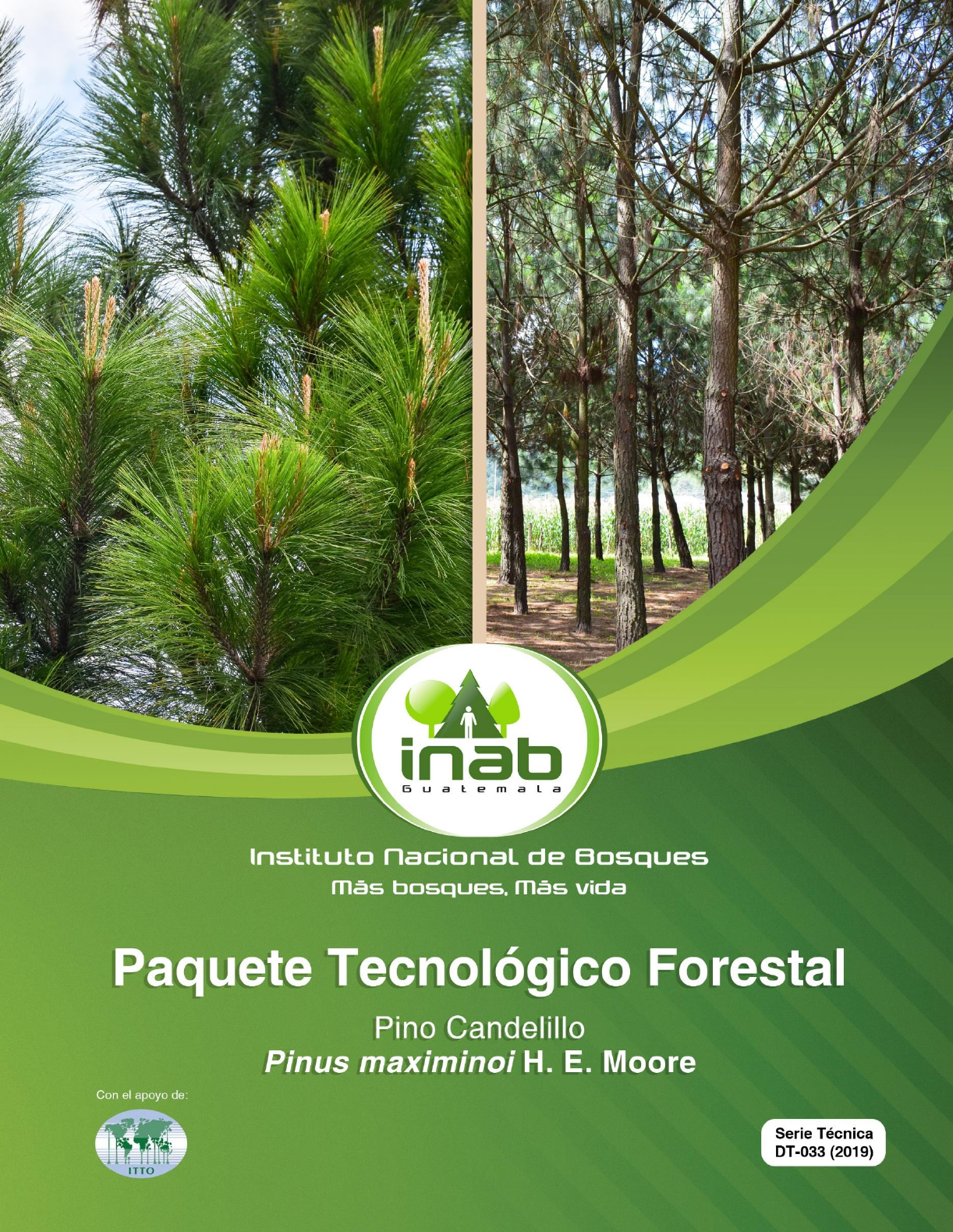 i i Publicación del Instituto Nacional de Bosques (INAB) 7a avenida 12-90 zona 13 Guatemala, Guatemala, Centro América ww.inab.gob.gt Dirección de Desarrollo Forestal 7a avenida 6-80 zona 13 Guatemala, Guatemala, Centro América Teléfono: 2321-4600 y 2321-4608 Departamento de Investigación Forestal 7a avenida 6-80 zona 13 Guatemala, Guatemala, Centro América Teléfono: 2321-4600 y 2321-4608 Se autoriza la reproducción total o parcial de esta publicación para fines educativos o sin intenciones de lucro, sin ningún otro permiso especial del titular de los derechos, con la condición de que se cite la fuente de donde proviene. Citar este documento como: Instituto Nacional de Bosques. 2019. Paquete Tecnológico Forestal para Pino Candelillo Pinus maximinoi H.E. Moore versión 1.0. Guatemala, Departamento de Investigación Forestal. 78 p. (Serie técnica DT-033-2019). EABORADO POR: Departamento de Investigación Forestal del Instituto Nacional de Bosques (INAB), con el apoyo del Ing. Edwin Enrique Cano Morales, José Israel Cojóm Pac (consultor) y Joel Nicolás Eliézer Cutzal Chavajay (Departamento de Investigación Forestal del INAB). Mediante la coordinación técnica del Dr. Daniel Marmillod. Se agradece la contribución del Ing. Martir Gabriel Vásquez Us (Director de Industria y Comercio Forestal) y Edwin Oliva Hurtarte (Departamento de Gobernanza Forestal del INAB), por la revisión del presente documento. Este documento ha sido posible gracias al apoyo financiero de la Organización Internacional de las Maderas Tropicales (OIMT), a través del proyecto PD 495/08 Rev. 4(F)”Sistema de información sobre la productividad de los bosques de Guatemala”, y cuyos donantes son los gobiernos de Japón y Estados Unidos de América. iii 1. Presentación El Instituto Nacional de Bosques -INAB- es el órgano de dirección y autoridad competente del Sector Público Agrícola, en materia forestal; una de las principales atribuciones del Instituto consiste en impulsar la investigación para la resolución de problemas de desarrollo forestal a través de programas ejecutados por universidades y otros entes de investigación. En atención a su mandato, el INAB, con apoyo de la Organización Internacional de las Maderas Tropicales -OIMT- presenta el paquete tecnológico forestal, donde las áreas temáticas relevantes que conforman el contenido son: aspectos introductorios, selección de sitio, producción de plántulas y genética, establecimiento de plantaciones, silvicultura de plantaciones, manejo de plagas y enfermedades, incrementos y existencias en plantaciones, contribuyendo así con proporcionar información de base para orientar actuales y potenciales reforestadores y silviculturores para la planificación del manejo de plantaciones. El paquete tecnológico forestal de pino candelillo Pinus maximinoi H.E. Moore está conformado por los principales resultados de investigaciones, documentos científicos y experiencias documentadas que aportan conocimientos novedosos para ciertas etapas del cultivo o bien, que confirman la importancia de realizar actividades mínimas que favorezcan la productividad esperada y permitan alcanzar los objetivos y metas de un proyecto forestal, ofreciendo también insumos a próximos reforestadores para la toma de decisiones, a fin de que se planifiquen actividades que conlleven a una plantación forestal, cuyos productos de calidad satisfagan los requerimientos de los mercados nacionales e internacionales. En este documento se pone a disposición del sector forestal, datos e información para la planificación de actividades dentro del ciclo del cultivo, desde la colecta de frutos, cosecha de semillas, métodos de propagación, selección adecuada de los sitios para el establecimiento de plantaciones, manejo silvicultural de plantaciones, ejemplos de buena y mala elección de sitios, diagnóstico y manejo de plagas y enfermedades, registro de las existencias de plantaciones a nivel nacional y simulación de la productividad de las plantaciones en busca de la maximización de productos forestales a partir de modelos de crecimiento. La serie de Paquetes tecnológicos forestales publicada por el INAB, pretende propiciar el aumento de la rentabilidad y productividad de las plantaciones forestales de especies consideradas prioritarias, brindando insumos que estimulen la competitividad de las plantaciones forestales en un país de vocación forestal. Ing. Rony Estuardo Granados Mérida Gerente INAB iv 2. Junta Directiva del Instituto Nacional de Bosques Ministerio de Agricultura, Ganaderia y Alimentación •Mario Méndez Montenegro •José Felipe Orellana Mejía Ministerio de Finanzas Públicas •Claudia Larissa Rodas Illescas de Ávila •Julio Rene Alarcón Aquino Asociación Nacional de Municipalidades •Edduar Amarildo Chún Champet •Carlos Alexander Simaj Chán Escuela Nacional Central de Agricultura •Edvin Francisco Orellana Ortiz •Tomás Antonio Padilla Cambara Cámara de Industria, Gremial Forestal •Roberto Andrés Bosch Figueredo •Fernando Alcides Enríquez Flores ASOREMA •Miriam Elena Monterroso Bonilla •Carmen Raquel Torselli Bech Universidades •Raúl Estuardo Maas Ibarra •Mirna Lucrecia Vela Armas Instituto Nacional de Bosques •Gerente del INAB y Secretario de la Junta Directiva: Rony Estuardo Granados Mérida. v 3. Tabla de contenido 1. Presentación .......................................................................................................................................................iii 2. Junta Directiva del Instituto Nacional de Bosques .................................................................................... iv 4. Introducción ........................................................................................................................................................ 1 Nombre científico y notas taxonómicas ............................................................................