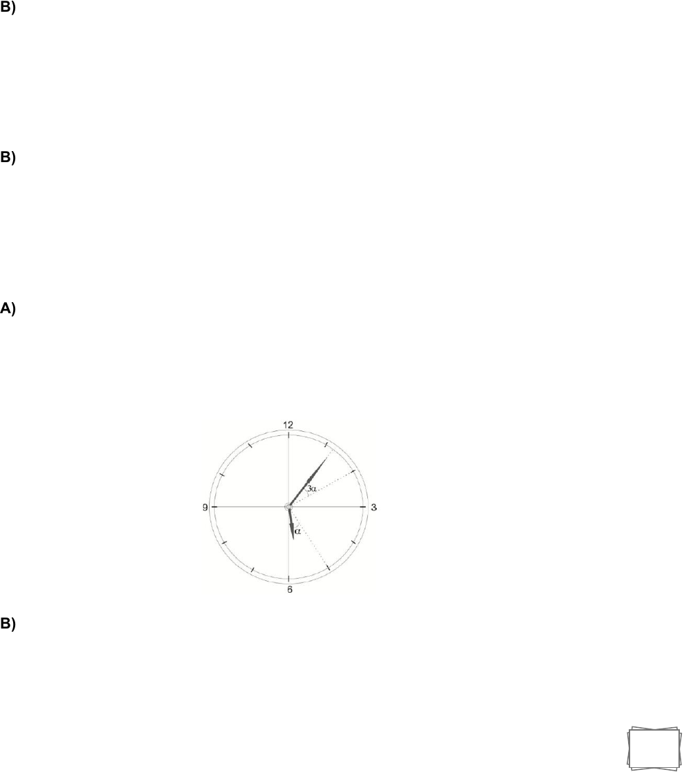 1 TEMA: REPASO PROBLEMAS DE CLASE 1. Se sabe que un reloj se adelanta 20 s cada minuto. Si empieza retrasado 4 minutos, respecto de la hora normal, ¿dentro de que tiempo tendrá un adelanto de 6 minutos de la hora normal? A) 30 minutos B) 20 minutos C) 36 minutos D) 24 minutos 2. En un reloj los minutos marcados son el valor numérico equivalente al ángulo formado por el minutero y el horario, además son menos de las 4. ¿Qué hora es? A) 3:25 B) 3:20 C) 2:40 D) 2:35 3. Ya pasaron las 5 sin ser las 6 de la tarde; si hubiera pasado 24 min más, faltaría para las 7 p.m. los mismos minutos que pasaron desde las 5 p.m. hasta 14 min, ¿Qué hora es? A) 5:55 p.m. B) 5:20 p.m. C) 5:45 p.m. D) 5:50 p.m. 4. ¿Qué hora indica el reloj? A) 5 h: 6 min B) 5h: 8min C) 5h: 8min: 30s D) 5h: 7 min user Resaltado user Resaltado user Resaltado user Resaltado 2 5. A un reloj que se atrasa un minuto por hora, se le sincroniza con la hora exacta el miércoles 13 de julio a las 12 h. ¿Qué fecha y hora volverá a indicar nuevamente la hora exacta? A) 11 de agosto: 12:00 h B) 12 de agosto: 13:00 h C) 09 de agosto: 09:00 h D) 12 de agosto: 12:00 h 6. ¿A qué hora las agujas de un reloj forman un ángulo de 120° por primera vez, entre las 8 y 9 de la mañana? A) 8h 240/11min B) 8h 23 min C) 8h 24 min D) 8h 260/11min 7. Pablo le pregunta a Pedro por la hora y éste le responde; el número de horas que faltará dentro de 4 horas para acabar el día, es al número de horas que transcurrieron del día hasta hace 4 horas, como 3 es a 5. ¿Qué hora es? A) 14:00 h B) 15:00 h C) 13:00 h D) 11:20 h 8. Actualmente estamos en el año 2017. Mi abuelo nació en el octubre del año cuadrado perfecto, anterior al año actual y cumplirá sus bodas de oro, en el año cuadrado perfecto siguiente. ¿Cuántos bisiestos vivió mi abuelo, hasta el año en que se casó con mi abuela? A) 9 B) 8 C) 7 D) 10 9. Un atleta toma dos tipos de vitaminas para recuperar sus energías. Del primer tipo, 100 mg cada 6 horas y del segundo, 200 mg cada 8 horas. Si en total consumió 7300 mg y empezó tomando ambos tipos de vitaminas, ¿durante cuánto tiempo consumió estas vitaminas? A) 144 h B) 156 h C) 186 h D) 168 h 10. En la siguiente figura, colocar los 8 primeros números pares positivos, sin repetir ninguno de ellos, de manera que el número de cada cuadrado sea igual a la suma de los números de los círculos contiguos. Halle la suma de los números de todos los cuadrados. user Resaltado user Resaltado user Resaltado user Resaltado user Resaltado 3 A) 56 B) 24 C) 38 D) 48 11. ¿Cuántos de los números del gráfico, como mínimo, deben ser cambiados de ubicación para que las sumas de los tres números contenidos en cuadrados unidos por una línea recta sean cuatro números consecutivos y la mayor de dichassumas tome su máximo valor? A) 6 B) 2 C) 4 D) 5 12. Beatriz le dice a Cesar: “Mi edad actual es cuatro años menos que la edad que tú tenías cuando yo tenía ocho años menos de la edad actual que tú tienes y cuando tu tengas el doble de la edad que tengo, nuestras edades sumaran 82 años”. ¿Cuántos años tiene Beatriz en este momento? A) 18 B) 20 C) 22 D) 24 13. Un reloj estuvo tocando durante 33 segundos, tantas campanadas como cuatro veces el tiempo, en segundos, que demoró entre campanada y campanada. Si el tiempo entre campanadas es constante, ¿cuántos segundos demoró de la cuarta hasta la penúltima campanada? A) 20 B) 16 C) 18 D) 21 14. Asistieron a la reunión de un colegio muchos padres de familia; si se sentaran 14 en cada banca, quedarían 5 de pie, pero si se les distribuye sentando 16 personas user Resaltado 4 en cada banca quedarían 2 bancas vacías y una donde solo estarían 13 personas sentadas. Halle la suma de las cifras del número de padres de familia que asistieron a la reunión. A) 13 B) 9 C) 15 D) 12 15. Nadia, Rosario, Mery y Janet se alojan en un hotel y cada una de ellas toma una habitación diferente. Las habitaciones están numeradas diferentes del 1 al 4, y dicen: – Nadia: “Yo tengo la habitación 3” – Rosario: “El numero en mi habitación es el doble que la de Janet” – Mery: “Nadia no tiene la habitación 3” – Janet: “Mery tiene la habitación 4” Si sólo una de ellas miente, ¿cuánto suman los números de las habitaciones que tienen Rosario y Janet? A) 6 B) 4 C) 5 D) 3 16. Un caballo parte de A en dirección a B al mismo tiempo que dos peatones parten de B en sentidos opuestos. El caballo los encuentra, a uno en M y al otro en M´. Calcular la distancia AB, sabiendo que los dos peatones marchan a la misma rapidez constante, y que la rapidez del caballo es 4 veces la de los peatones, siendo la misma distancia MM' de 16 km. A) 15 km B) 45 km C) 50 km D) 30 km 17. Se define: 2xx x += Calcular: 753 A) 3 B) 1 C) 4 D) 2 18. Por campaña escolar, Juan compró cierto número de cuadernos por un monto total de S/. 80 y recibió adicionalmente 3 cuadernos gratis. Por ello vendió cada cuaderno a S/. 2 más de lo que costo cada uno, ganando en total S/. 50. ¿Cuántos soles le costó a Juan, cada cuaderno? user Resaltado user Resaltado user Resaltado 5 A) 6 B) 12 C) 8 D) 10 19. Un carpintero vendió tres sillas más que mesas; pero tanto en las sillas como en las mesas obtuvo la misma cantidad de dinero. Si las mesas cuestan S/. 360 más que las sillas y recaudó S/. 9 600 en total, ¿cuántas sillas y mesas vendió en total? A) 13 B) 14 C) 16 D) 10 20. Sumando los n, 3n y 4n primeros términos de una progresión aritmética, se obtiene S1, S3 y S4 respectivamente. Calcular: A) 2 B) 1/8 C) 4 D) 1/2 − 3 1 4 S S S user Resaltado user Resaltado user Resaltado 6 TAREA 1. En la siguiente secuencia determine la suma de cifras de la suma de todos los números en la figura 10. A) 14 B) 9 C) 25 D) 18 2. Las casas de Aníbal, Benito, Carlos y Daniel están ubicadas en una misma avenida rectilínea. Si la distancia entre las casas de Aníbal y Carlos, Benito y Danilo, Aníbal y Dan