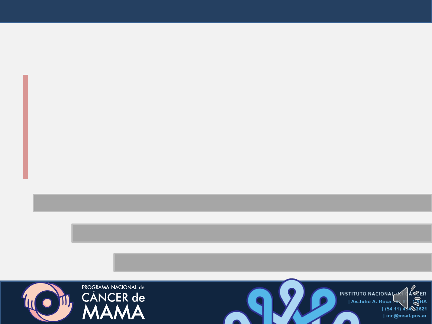 LA MAMOGRAFÍA de la teoría a la práctica Campus virtual del Instituto Nacional del Cáncer Curso virtual para técnicos radiólogos Programa Nacional de Cáncer de Mama Instituto Nacional del Cáncer Curso virtual para técnicos radiólogos MÓDULO V Prótesis mamaria •El grado de compresión que se aplicará es el que mantenga la mama firme. •Proyección y posición estándar. •Utilizamos valores de exposición manuales. Prótesis: Posición básica CC A través de la paleta debe observarse una “medialuna” que muestra la superficie de contacto de la paleta con la mama, lo que indica que la compresión es suficiente. •Se realiza el procedimiento convencional. •Se coloca el bucky de manera que coincida con el surco sub-mamario. La compresión debe ser de baja intensidad Prótesis: Posición MLO Se realiza a 45° (incluyendo el músculo). Se debe observar: -el surco; -la “media luna” y -el músculo pectoral. A través de la paleta debe observarse una “media luna”, lo que indica que la intensidad es suficiente. Técnica de Eklund •Utilizamos exposímetro automático o valores de exposición manual, según corresponda. •Proyección y posición básica •Compresión igual a la que realizamos en mamografías básicas. Colocación de las prótesis mamarias • Prótesis retroglandular • Prótesis retropectoral Buscar imagen • Glándula mamaria normal Prótesis: técnica de Eklund Se realiza la palpación habitual, comprimiendo la mama empujando la prótesis hacia atrás. Se selecciona la zona glandular, donde se realizarán las posiciones cráneo caudal y MLO. Técnica de Eklund CC Se coloca la zona glandular sobre el bucky y se comprime. Técnica de Eklund MLO La posición del brazo debe ser al costado del cuerpo (no es necesario incluir al músculo). Se comprime la zona glandular libre de prótesis. Silicona libre • Utilizamos valores (alto kV y alto mAs) de exposición manual • Proyecciones básicas MD Prótesis mamarias de silicona Gel de silicona de superficie lisa Gel de silicona de superficie texturada micronodular Expansor de superficie texturada microporosa A B C Encapsulamiento de las prótesis La respuesta normal del organismo ante cualquier cuerpo extraño (como lo es un implante mamario) es formar una cápsula de tejido alrededor del mismo. Este tejido se comporta como una cicatriz y puede contraerse y, en consecuencia, comprimir la prótesis, dando lugar a los siguientes problemas: Endurecimiento de la mama Dolor (desde una molestia moderada a un dolor severo) Sensibilidad extrema al tacto Arrugas o distorsión de la mama Movimiento o desplazamiento del implante