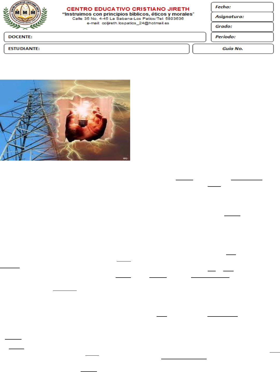 ORIGEN DE LA ELECTRICIDAD La electricidad es una forma de energía que sólo se puede apreciar por los efectos que produce. La electricidad existe en todo: en nuestro cuerpo, en el aire que respiramos, en el libro que leemos, en los objetos, etc. El estudio de la electricidad en reposo recibe el nombre de electrostática y el estudio de la electricidad en movimiento se llama electrodinámica. CONCEPTO: Esta palabra deriva de la voz griega elektron, que significa ámbar. Toda sustancia se compone de pequeñísimas partículas denominadas átomos. La electricidad es un fenómeno físico originado por cargas eléctricas estáticas o en movimiento y por su interacción. Cuando una carga se encuentra en reposo produce fuerzas sobre otras situadas en su entorno. Si la carga se desplaza produce también fuerzas magnéticas. Hay dos tipos de cargas eléctricas, llamadas positivas y negativas. La electricidad está presente en algunas partículas subatómicas. La partícula fundamental más ligera que lleva carga eléctrica es el electrón, que transporta una unidad de carga. Los átomos en circunstancias normales contienen electrones, y a menudo los que están más alejados del núcleo se desprenden con mucha facilidad. En algunas sustancias, como los metales, proliferan los electrones libres. De esta manera un cuerpo queda cargado eléctricamente gracias a la reordenación de los electrones. Un átomo normal tiene cantidades iguales de carga eléctrica positiva y negativa, por lo tanto es eléctricamente neutro. La cantidad de carga eléctrica transportada por todos los electrones del átomo, que por convención son negativas, esta equilibrada por la carga positiva localizada en el núcleo. Si un cuerpo contiene un exceso de electrones quedará cargado negativamente. Por lo contrario, con la ausencia de electrones un cuerpo queda cargado positivamente, debido a que hay más cargas eléctricas positivas en el núcleo. HISTORIA DE LA ELECTRICIDAD Hacia el año 600 adC, el filósofo griego Tales de Mileto observó que frotando una varilla de ámbar con una piel o con lana, se podía crear pequeñas cargas, que atraian pequeños objetos. También habían observado que si la frotaban mucho tiempo podían causar la aparición de una chispa. Cerca de Mileto, (en la actualidad Turquía), se encuentra un sitio arqueológico llamado Magnesia, donde en la antigüedad se encontraron trozos de magnetita. Los antiguos griegos observaron que los trozos de este material se atraían entre sí, y también a pequeños objetos de hierro. La palabra magneto (en español, imán) proviene del lugar donde se descubrió. Un objeto es encontrado en Iraq en 1938, fechado alrededor de 250 adC, llamado la Batería de Bagdad, se asemeja a una celda electroquímica. No se han encontrado documentos que evidencien su utilización, aunque hay otras descripciones anacrónicas de dispositivos eléctricos en muros egipcios y escritos antiguos. En 1600 el científico inglés William Gilbert publicó su libro "De Magnete", en donde utiliza la palabra latina electricus derivada del griego elektron, que significa ámbar, para describir los fenómenos descubiertos por los griegos. También estableció las diferencias entre el magnetismo y la electricidad. Estas investigaciones fueron continuadas en 1660 por Otto von Guericke quien inventó un generador electrostático. http://es.wikipedia.org/wiki/Carga_el%C3%A9ctrica http://es.wikipedia.org/wiki/Carga_el%C3%A9ctrica http://es.wikipedia.org/wiki/Fuerza http://es.wikipedia.org/wiki/Magnetismo http://es.wikipedia.org/wiki/Electr%C3%B3n http://es.wikipedia.org/wiki/%C3%81tomo http://es.wikipedia.org/wiki/N%C3%BAcleo_at%C3%B3mico http://es.wikipedia.org/wiki/Metal http://es.wikipedia.org/wiki/600_adC http://es.wikipedia.org/wiki/Tales_de_Mileto http://es.wikipedia.org/wiki/%C3%81mbar http://es.wikipedia.org/wiki/Turqu%C3%ADa http://es.wikipedia.org/wiki/Im%C3%A1n_%28f%C3%ADsica%29 http://es.wikipedia.org/wiki/Iraq http://es.wikipedia.org/wiki/1938 http://es.wikipedia.org/wiki/250_adC http://es.wikipedia.org/wiki/Bater%C3%ADa_de_Bagdad http://es.wikipedia.org/wiki/1600 http://es.wikipedia.org/wiki/William_Gilbert http://es.wikipedia.org/wiki/1660 http://es.wikipedia.org/wiki/Otto_von_Guericke Thales de Miletus (630−550 AC) fue el primero, que cerca del 600 AC, conociera el hecho de que el ámbar, al ser frotado adquiere el poder de atracción sobre algunos objetos. Sin embargo fue el filósofo Griego Theophrastus (374−287 AC) el primero, que en un tratado escrito tres siglos después, estableció que otras sustancias tienen este mismo poder, dejando así constancia del primer estudio científico sobre la electricidad. En 1600, la Reina Elizabeth I ordena al Físico Real Willian Gilbert (1544−1603) estudiar los imanes para mejorar la exactitud de las Brújulas usadas en la navegación, siendo éste trabajo la base principal para la definición de los fundamentos de la Electrostática y Magnetismo. Gilbert fue el primero en aplicar el término Electricidad del Griego "elektron" = ámbar. Gilbert es la unidad de medida de la fuerza magnetomotriz. En 1752, Benjamín Franklin (1706−1790) demostró la naturaleza eléctrica de los rayos. Desarrolló la teoría de que la electricidad es un fluido que existe en la materia y su flujo se debe al exceso o defecto del mismo en ella. Invento el pararrayos. En 1780 inventa los lentes Bifocales. En 1776, Charles Agustín de Coulomb (1736−1806) inventó la balanza de torsión con la cual, midió con exactitud la fuerza entre las cargas eléctricas y corroboró que dicha fuerza era proporcional al producto de las cargas individuales e inversamente proporcional al cuadrado de la distancia que las separa. Coulomb es la unidad de medida de Carga eléctrica. En 1800, Alejandro Volta (1745−1827) construye la primera celda Electrostática y la batería capaz de producir corriente eléctrica. Su inspiración le vino del estudio realizado por el Físico 