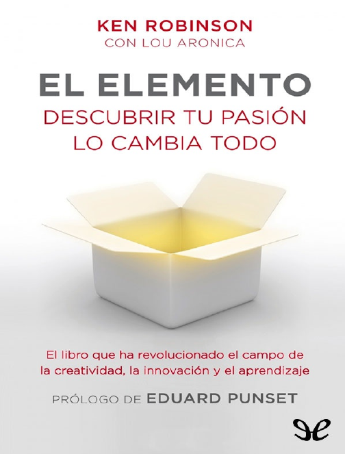 Libro proporcionado por el equipo Le Libros Visite nuestro sitio y descarga esto y otros miles de libros http://LeLibros.org/ Descargar Libros Gratis, Libros PDF, Libros Online http://LeLibros.org/ http://LeLibros.org/ http://LeLibros.org/ http://LeLibros.org/ El mundo cambia a una velocidad vertiginosa. Es imposible adivinar cómo viviremos en el futuro: lo único que sabemos es que hará falta mucha imaginación y creatividad para transformarnos y afrontar los nuevos retos. Descubrir el Elemento es recuperar capacidades sorprendentes en nuestro interior, y desarrollarlo dará un giro radical no sólo a tu entorno laboral, sino también a tus relaciones y, en definitiva, a tu vida. Ken Robinson y Lou Aronica El Elemento Descubrir tu pasión lo cambia todo Para mis hermanos, Ethel Lena, Keith, Derek, Ian, John y Neil; para nuestros extraordinarios padres, Ethel y Jim; para mi hijo James y mi hija Kate, y para mi alma gemela, Terry. Este libro es para vosotros. Por vuestros muchos talentos y por el infinito amor y las risas que ponemos en la vida del otro. Con vosotros y con los que amáis, estoy de verdad en mi Elemento. Agradecimientos Dicen que hace falta todo un pueblo para educar a un niño. Para hacer un libro como este hace falta una pequeña metrópoli. Sé que tengo que decir que no puedo dar las gracias a todo el mundo, y de verdad no puedo. Sin embargo, debo nombrar a algunas personas como reconocimiento por su ayuda inestimable. Primero y ante todo, a mi mujer y compañera, Terry. Sencillamente, este libro no estaría en tus manos si no fuera por ella. Su origen se debe a un comentario que hice a la ligera durante una conferencia hace unos años. Acababa de explicar la historia de Gillian Lynne, que abre el primer capítulo de este libro, y se me ocurrió decir que algún día escribiría un libro sobre ese tipo de historias. Desde entonces he aprendido a no decir estas cosas en voz alta delante de Terry. Me preguntó cuándo tenía pensado escribirlo. « Pronto —dije—, sin duda alguna pronto» . Al cabo de unos meses, lo empezó ella: redactó la propuesta, trabajó las ideas, realizó algunas de las primeras entrevistas y luego encontró al agente, Peter Miller, que ayudaría a que el libro se hiciera realidad. Con unos cimientos tan sólidos, y las rutas de escape tan firmemente cerradas, al final mantuve mi palabra y continué con el libro. Quiero dar las gracias a Peter Miller, nuestro agente literario, por su extraordinario trabajo y, no en menor medida, por reunirnos a Lou Aronica y a mí. Viajo mucho —demasiado, en realidad—, y para escribir un libro como este hace falta tiempo, energía y colaboración. Lou fue el compañero ideal. Es un verdadero profesional: sabio, juicioso, imaginativo y paciente. Fue el núcleo tranquilo del proyecto mientras yo daba vueltas alrededor de la Tierra y enviaba notas, borradores y dudas desde aeropuertos y habitaciones de hotel. También conseguimos ponernos de acuerdo sobre las diferencias, a menudo cómicas, entre el inglés británico y el estadounidense. Gracias, Lou. Mi hijo James renunció a su valioso y último verano de estudiante para enfrascarse en la lectura de archivos, periódicos y sitios de internet verificando datos, fechas y conceptos. Luego discutió conmigo casi cada una de las ideas del libro hasta dejarme agotado. Nancy Allen trabajó durante varios meses en la investigación con un plazo de entrega cada vez más ajustado. Mi hermana Kate y Nick Egan colaboraron de forma maravillosamente creativa para elaborar la excepcional página web donde se muestra todo el trabajo que estamos llevando a cabo. Nuestra ayudante, Andrea Hanna, trabajó sin descanso para coordinar la miríada de partes en movimiento de un proyecto como este. No lo habríamos conseguido sin ella. A medida que el libro iba tomando forma, fuimos muy afortunados al contar con los consejos de nuestra editora, Kathryn Court, de Viking Penguin. Su amable forma de presionarnos también garantizó que terminásemos el libro en un tiempo aceptable. Por último, tengo que dar las gracias a todas aquellas personas cuyas historias iluminan este libro. Muchas de ellas dedicaron horas valiosas de sus ajetreadas vidas a hablar, libre y apasionadamente, sobre las experiencias e ideas que forman el núcleo de El Elemento. Muchas más me enviaron cartas y e-mails conmovedores. Sus historias muestran que los temas de este libro ocupan el centro de nuestra vida. Quiero dar las gracias a todas ellas. Por supuesto, es habitual decir que, aparte de todas las buenas aportaciones de otras personas, cualquier error del libro es solo responsabilidad mía. Esto parece un poco severo conmigo mismo, pero supongo que es cierto. Prólogo Es muy posible que Ken Robinson, el que más ha insistido en la necesidad de estimular el talento, la creatividad y la vocación artística, el que más claramente apostó contra viento y marea por la no jerarquización de las competencias —no tiene sentido que en los sistemas educativos, la Física figure siempre en primer lugar y la Danza en el último—, intuyera sin ser consciente de ello que los últimos descubrimientos científicos iban a revolucionar los sistemas educativos. ¿Cuáles eran las grandes revelaciones del pensamiento científico, que permitieron a Ken Robinson dar por sentada la consecución de algo que todos habían soñado, pero nadie conseguido hasta ahora? En los últimos veinte años, los investigadores más tenaces pero no necesariamente los más conocidos han aflorado tres grandes tipos de sorpresas. La primera fue la magnitud insospechada del inconsciente; se acumulaban allí procesos cognitivos de una complej idad inigualada por el pensamiento consciente. En contra de los abanderados por científicos como Crick —que supo desentrañar el secreto de la vida o el origen del genoma humano—, ahora estábamos descubriendo que el inconsciente abriga la mayor parte del conocimiento. Resulta que la intuición t