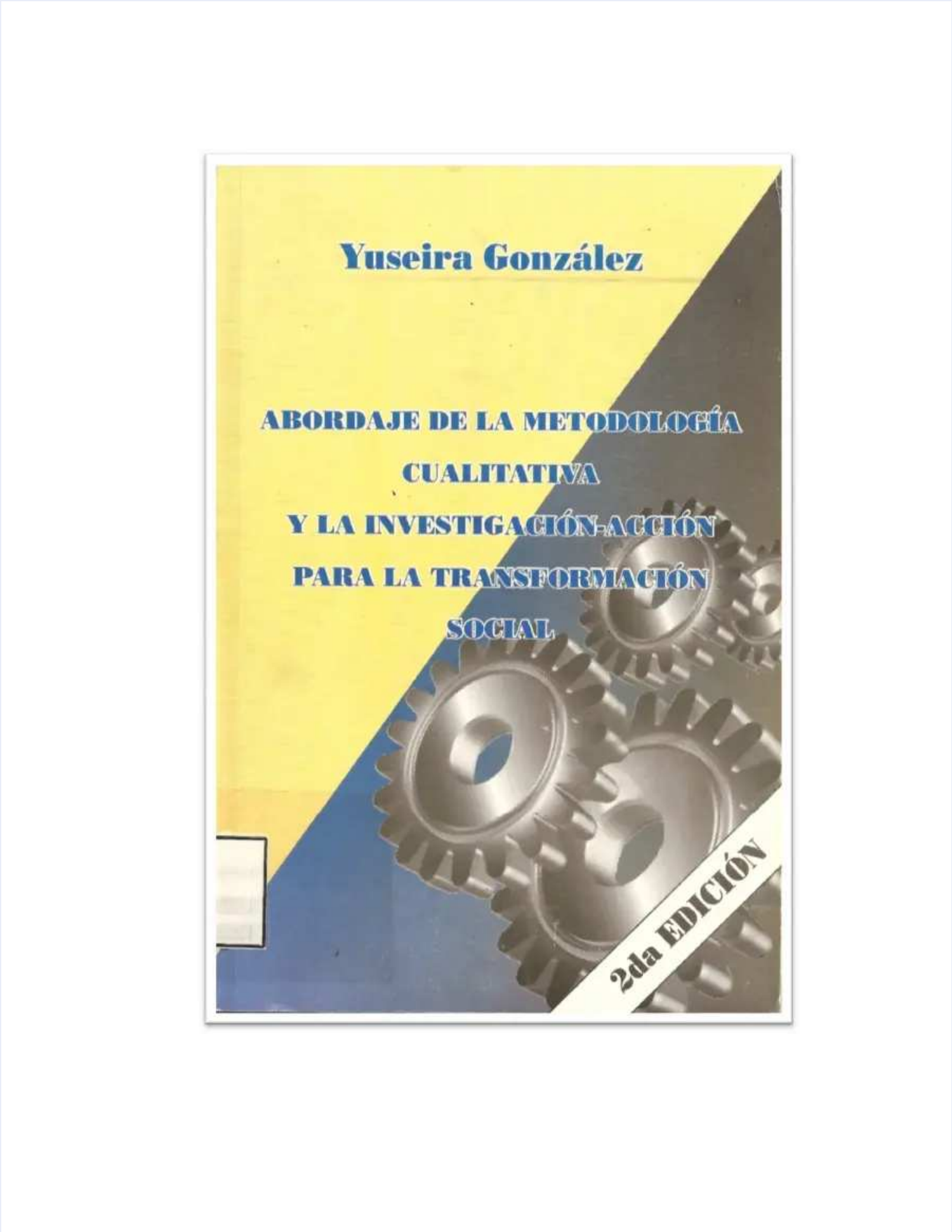 ABORDAJE DE LA METODOLOGÍA CUALITATIVA Y LAABORDAJE DE LA METODOLOGÍA CUALITATIVA Y LA INVESTIGACIÓN-ACCIÓN, PARA LA TRANSFORMACIÓN SOCIALINVESTIGACIÓN-ACCIÓN, PARA LA TRANSFORMACIÓN SOCIAL Ciudad Guayana, 2013Ciudad Guayana, 2013 ABORDAJE DÉ LA MABORDAJE DÉ LA METODOLOGÍA CUALITATIVA Y LAETODOLOGÍA CUALITATIVA Y LA INVESTIGACIÓN-ACCIÓN, PARA LA TRANSFORMACIÓN SOCIALINVESTIGACIÓN-ACCIÓN, PARA LA TRANSFORMACIÓN SOCIAL Depósito Legal Nro.lf08520120012853Depósito Legal Nro.lf08520120012853 Diseño y diagramación:Diseño y diagramación: Yuseira GonzálezYuseira González Ilustración de Portada:Ilustración de Portada: Yuseira GonzálezYuseira González Impreso en VenezuelaImpreso en Venezuela Ediciones Dabosan, C.A.Ediciones Dabosan, C.A. Caracas 1010- República Bolivariana de VenezuelaCaracas 1010- República Bolivariana de Venezuela Telefax: (0212) 861.20.28 / 862.06.21Telefax: (0212) 861.20.28 / 862.06.21 e-mail:e-mail: daboinhje@gmail.com.comdaboinhje@gmail.com.com 2a Edición Reducida y Corregida2a Edición Reducida y Corregida Para conferencia y talleres comunicarse con la Dra. Yuseira GonzálezPara conferencia y talleres comunicarse con la Dra. Yuseira González Al Telf.: (0414) 896.34.45Al Telf.: (0414) 896.34.45 Prohibida su reproducción totProhibida su reproducción total o parcial por cualquier medio mecánico, digitalal o parcial por cualquier medio mecánico, digital o telemático sin permiso expreso de sus editores.o telemático sin permiso expreso de sus editores. http://mailto:daboinhje@gmail.com.com/ http://mailto:daboinhje@gmail.com.com/ AGRADECIMIENTOAGRADECIMIENTO Sigo Agradeciendo a Dios por guiar mis pasos y darme luces de capacidad ySigo Agradeciendo a Dios por guiar mis pasos y darme luces de capacidad y oportunidad, para alcanzar este logro.oportunidad, para alcanzar este logro. Así también, doy un especial agradecimiento a la Dra. Carmen Thais Ochoa por susAsí también, doy un especial agradecimiento a la Dra. Carmen Thais Ochoa por sus orientaciones y consejos. ¡Mil Gracias mi Amiga, Profesora y Tutora!orientaciones y consejos. ¡Mil Gracias mi Amiga, Profesora y Tutora! Al Sr. José Ángel Rivero y al Sr. Dabusan, por tan significativo apoyo en lasAl Sr. José Ángel Rivero y al Sr. Dabusan, por tan significativo apoyo en las ediciones de este libroediciones de este libro A mis hijos, familiares y amigos por siempre tener para mí una mano amiga.A mis hijos, familiares y amigos por siempre tener para mí una mano amiga. A tos los lectores: estudiantes y profesores, por el apoyo y receptividad de laA tos los lectores: estudiantes y profesores, por el apoyo y receptividad de la 1ra 1ra Edición Edición del ldel libro. Graciibro. Gracias.as. Dios les BendigaDios les Bendiga 55 ÍNDICE GENERALÍNDICE GENERAL INTRODUCCIÓN ................................................................................................................... 9INTRODUCCIÓN ................................................................................................................... 9 Parte I. ............................................................................................................................... 10Parte I. ............................................................................................................................... 10 Descripción de los Principales Métodos Cualitativos Descripción de los Principales Métodos Cualitativos .......................................................... .......................... .......................... 1010 Método Investigación Acción Método Investigación Acción .......................................................... .................................................... .................................................... ..... 11..... 11 Métodos Hermenéuticos ............................................................................................ 11Métodos Hermenéuticos ............................................................................................ 11 Tipos de Métodos Hermenéuticos: ............................................................................. 12Tipos de Métodos Hermenéuticos: ............................................................................. 12 Métodos Fenomenológicos ........................................................................................ 12Métodos Fenomenológicos ........................................................................................ 12 Tipos de Métodos Fenomenológicos: ......................................................................... 12Tipos de Métodos Fenomenológicos: ......................................................................... 12 Métodos Etnográficos ................................................................................................ 13Métodos Etnográficos ................................................................................................ 13 Tipos de Métodos Etnográficos:.................................................................................. 13Tipos de Métodos Etnográficos:.................................................................................. 13 Esquema Sinóptico de la Clasificación de los Esquema Sinóptico de la Clasificación de los Principales Métodos Cualitativos, SegúnPrincipales Métodos Cualitativos, Según sus Bondades ............................................................................................................. 14sus Bondades ............................................................................................................. 14 La Pertinencia Social del Método de Investigación Acción La Pertinencia Social del Método de Investigación Acción .............................................................. ............ ............ 1515 El Paradigma .............................................................................................................. 22El P