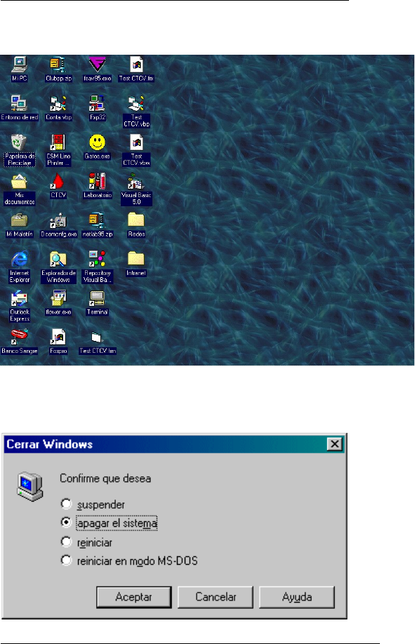a la pantalla principal de Windows 95/98 que es el Escritorio.