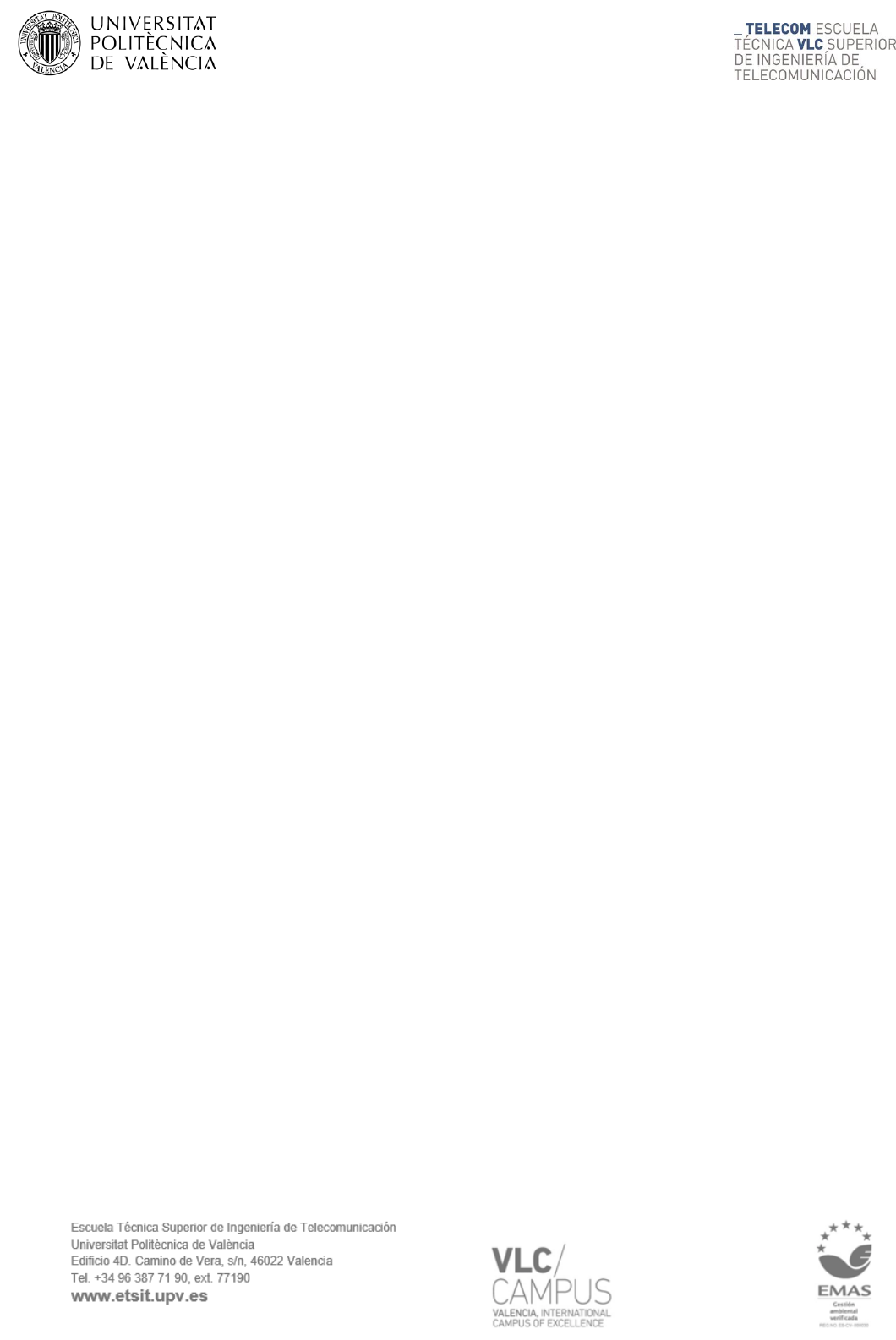 TRABAJO FIN DE GRADO PROYECTO DE INFRAESTRUCTURA COMÚN DE TELECOMUNICACIÓN DE UN EDIFICIO INMOBILIARIO UBICADO EN MADRID Autor: Pablo Antonio Viadel Morant Tutor: Juan Reig Pascual Trabajo Fin de Grado presentado en la Escuela Técnica Superior de Ingenieros de Telecomunicación de la Universitat Politècnica de València, para la obtención del Título de Graduado en Ingeniería de Tecnologías y Servicios de Telecomunicación. Curso 2018-19 Valencia, 3 de març de 2019. RESUMEN El proyecto se centra en la realización de una infraestructura común de telecomunicación para un edificio inmobiliario situado en Madrid, el cual está compuesto por 38 viviendas y un local comercial. En la memoria se describe la captación y adaptación de las señales de radiodifusión sonora y televisión terrenal, así como su distribución hasta las viviendas y el local comercial. Se detalla la distribución de las señales de radiodifusión sonora y televisión por satélite. Además, se explica como se proporciona acceso al servicio de telefonía y banda ancha. Los planos muestran detalladamente todos los elementos que forman la ICT, mientras que en el pliego de condiciones se describren más específicamente las características relativas al proyecto. Finalmente, el presupuesto indica el capex necesario para implementar el proyecto. RESUM El projecte es centra en la realització d´una infraestructura comú de telecomunicació per a un edifici immobiliari ubicat a Madrid, el qual està format per 38 vivendes i un local comercial. A la memòria es descriu la captació i adaptació de les senyals de radiodifusió sonora i televisió terrenal, així com la seua distribució fins les vivendes i el local comercial. Es detalla la distribució de les senyals de radiodifusió sonora i televisió per satèl·lit. Ademés, s´explica com es proporciona accés al servei de telefonia i banda ampla. Els plànols mostren detalladament tots els elements que formen l´ICT, mentre que al plec de condicions es descriuen més específicament les característiques relatives al projecte. Finalment, el pressupost indica el capex necessari per implementar el projecte. ABSTRACT The project focuses on building a common infrastructure of telecommunication for a real-estate building placed in Madrid, composed, in fact, by 38 homes and a business premises. Described in the brief is the capture and adjustment of audio broadcasting and terrestrial television signal, as well as distribution to homes and business premises. Also, distribution of the signs of audio broadcasting and satellite television is detailed. And explains how the access is provided to the telephone service and broadband. The blueprint shows in detail all the elements composing the ICT, and the specification sheet describes specifically the aspects covered in the project. Finally, the budget indicates the necessary capex to the project implementation. OBJETIVOS El objetivo es realizar una infraestructura común de telecomunicación de un edificio real compuesto por 38 viviendas y 1 local comercial situado en Madrid, a un coste ajustado. A continuación se detallen los puntos principales: 1. La captación y adaptación de las señales de radiodifusión sonora y televisión terrenal, y su distribución hasta las viviendas y el local comercial. 2. La distribución de las señales de radiodifusión sonora y televisión por satélite. 3. Proporcionar acceso al servicio de telefonía y banda ancha. INTRODUCCIÓN En este trabajo se diseña una infraestructura común de telecomunicación para un edificio inmobiliario situado en Madrid. El edificio está formado por 38 viviendas distribuidas no uniformemente en 8 plantas y un local comercial sin distribuir. Se ha aplicado la normativa técnica recogida en el Real Decreto 346/2011, de 11 de marzo y la Orden ITC/1644/2011 para garantizar los niveles mínimos de calidad exigidos en una ICT y proporcionar a los usuarios los diferentes servicios de telecomunicación. Se ha diseñado la red de alimentación, distribución y dispersión del edificio, así como las redes de distribución y dispersión de RTV (Radiodifusión sonora y TV), cable de par trenzado, coaxial y fibra óptica. También las redes interiores de todas las viviendas y todas las plantas, exceptuando la red interior del local comercial, ya que se trata de un local comercial sin distribuir. En la figura 1 se muestra la topología de una ICT dónde se observan las diferentes partes que forman una infraestructura común de telecomunicación. La idea del trabajo es aplicar esta topología al edificio objeto de estudio. Figura 1. Topología ICT. Gestión del Proyecto La realización del trabajo fin de grado se divide en las siguientes partes: Diseño de la red de RTV Diseño de la red de Coaxial Diseño de la red de Cable de Par Trenzado Diseño de la red de Fibra óptica Dibujo de los Planos Memoria Presupuesto En la figura 2 se muestra el tiempo, relativo a 4 meses, empleado en realizar cada una de las tareas. La tarea con más duración ha sido el dibujo de los planos en autocad debido a su complejidad de ejecución. Figura 2. Diagrama de Gantt. ÍNDICE 1.1. DATOS GENERALES. 16 1.1.A. Datos del promotor. 16 1.1.B. Descripción del edificio o complejo urbano, con indicación del número bloques, portales, escaleras, plantas, viviendas por planta, dependencias de cada vivienda, locales comerciales, oficinas, etc. 16 1.1.C. Aplicación de la Ley de la Propiedad Horizontal. 17 1.1.D. Objeto del Proyecto Técnico. 17 1.2. ELEMENTOS QUE CONSTITUYEN LA INFRAESTRUCTURA COMÚN DE TELECOMUNICACIÓN. 19 1.2.A. Captación y distribución de radiodifusión sonora y televisión terrestres. 19 1.2.A.a) Consideraciones sobre el Diseño. 19 1.2.A.b) Señales de radiodifusión sonora y televisión terrestre que se reciben en el emplazamiento de las antenas receptoras. 20 1.2.A.c) Selección del emplazamiento y parámetros de las antenas receptoras. 21 1.2.A.d) Cálculo de los so