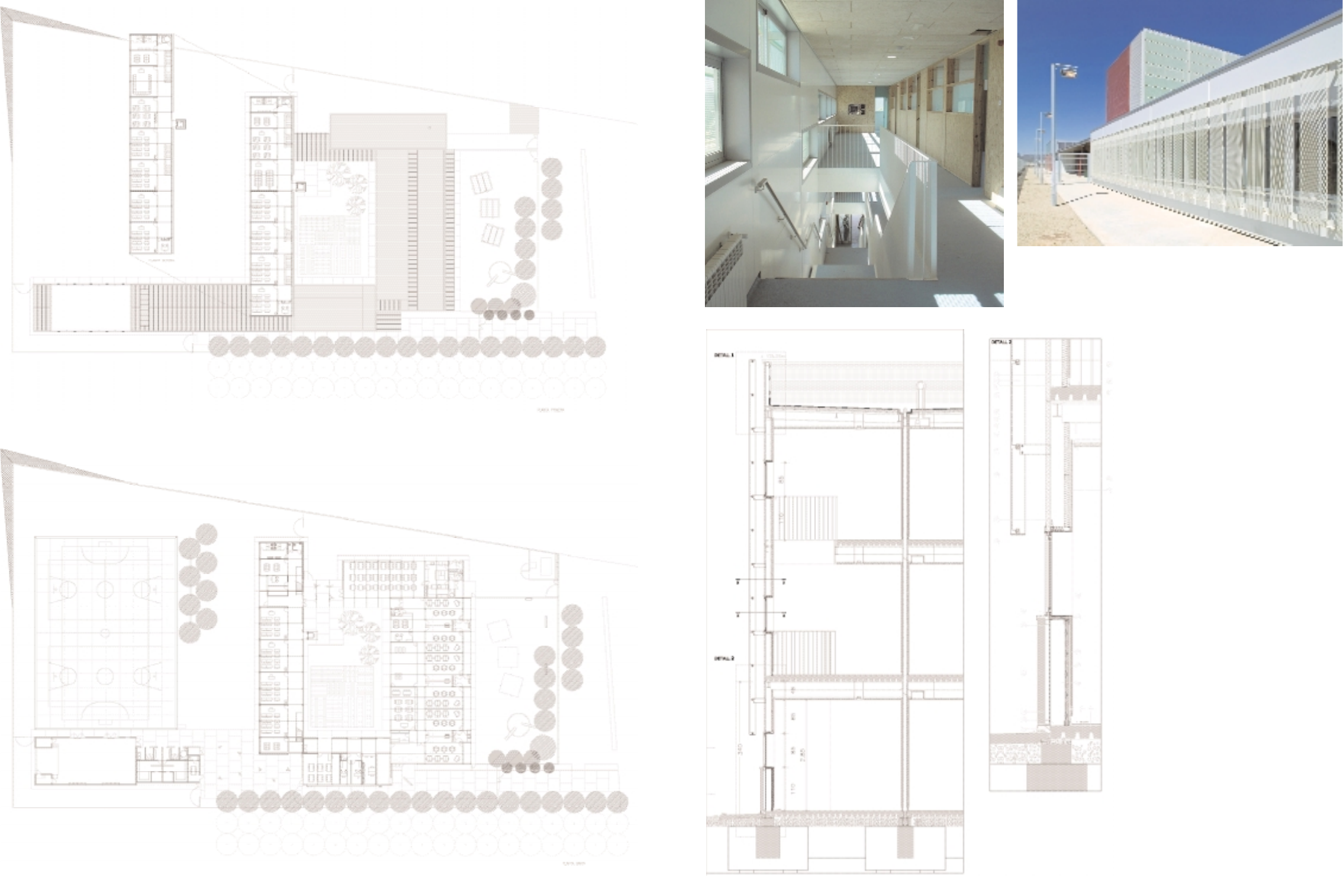 54 Plantas primera y baja comendable dada la alta repercusión económica del transporte, que sean lo más compactos posible y optimi- zar la modulación ya que es el pará- metro que permitirá ser más competi- tivos en relación a otros sistemas industrializados”. Los módulos tienen dimensiones variables pero similares, en torno a la optimización citada del transporte. También su estructura obedece al concepto común de una retícula de perfiles ligeros con nudos rígidos, con luces del orden del ancho del módulo. Así los módulos del aulario de tres plantas miden 10x3.75 m. a caras ex- teriores, y su armazón una retícula de 8 pilares situados en las caras exter- nas, cuatro de ellos en las esquinas, de modo que al ensamblarse los so- portes se duplican. Los soportes son tubos cuadrados de 100 a 120 mm. y las vigas IPE 220-240 mm. El ensam- blaje entre módulos se realiza me- diante unos casquillos atornillados. Los módulos del gimnasio tienen una concepción más tradicional. Mi- den 11x3.85 m. con 11 m. de luz li- bre y soportes sólo en las esquinas.Sección constructiva de la galería 7 Emplea vigas trianguladas ligeras de secciones tubulares y soportes en H, con uniones atornilladas con placas de testa. Las fachadas son en general muy acristaladas, con los elementos opa- cos ligeros y una amplia cámara de aire en la que queda oculto el arma- zón. La hoja externa es un panel me- tálico industrial inyectado en poliure- tano, con un revestimiento de chapa perfilada que en la fachada sur es perforada y se sobrepone también al acristalamiento para actuar como pa- rasol. En los zócalos y en la fachada de acceso el sistema se sustituye por un panel de hormigón prefabricado. La hoja interior es un tablero de cartón- yeso con un nuevo aislamiento de lana de roca. Las cubiertas son lige- ras, tipo deck. El proceso de fabricación está or- ganizado como una cadena de mon- taje que facilita un alto porcentaje de acabados de cada módulo depen- diendo de las soluciones constructi- vas que conciernen al diseño del proyecto. De esta manera en pocos días se pasa de la fase de ensamblaje 6 Secciones constructivas de la fachada norte. Sección del pabellón de administración y detalle de la coronación. Construcción del edificio zona más cercana a la producción, buscando situar la fábrica en áreas de influencia de grandes zonas urba- nas (300 / 400km), que además de reducir los plazos de esta fase ayuda- rían a reducir costos energéticos y económicos que genera el transporte así como también el gasto de despla- zamiento de operarios cualificados para el acoplamiento, montaje y re- mate final en obra. 9 de la estructura a la ejecución de los acabados interiores y, exteriores, al trazado completo de las instalaciones y aparatos sanitarios, luminarias, ra- diadores, etc., En definitiva, el conjunto altera el papel clásico del arquitecto, la em- presa constructora y la empresa in- dustrial, así como el modelo de pro- yecto de ejecución que se desarrolla más ligado al proceso productivo o la dirección de obra que se divide en tres fases, la del control de la obra ci- vil in situ, la de desarrollo del siste- ma de producción en fábrica y la del ensamblaje definitivo y detalles fina- les. El sistema requiere, en la fase de proyecto, de una fuerte complicidad entre arquitectos y la oficina técnica industrial que ha de desarrollar el proyecto, entendiendo para unos las magníficas posibilidades que genera la lógica de la industria y para los otros la necesidad de una I+D que ayude a avanzar hacia un producto final más competitivo, de mejor cua- lidad y mejor ajustado a los sistemas de producción de nuestro tiempo. En la fase de producción se re- quiere de la aplicación de los siste- mas propios de la industria más avanzada como son la automoción o la aeronáutica consiguiendo una gran calidad de acabados, un atento sistema de control de calidad, seguri- dad en el trabajo y reciclaje de resi- duos, con la reducción de los plazos de producción y reducción de gastos de financiación con el consecuente abaratamiento del producto final. Para que al final este producto sea más competitivo, seria necesario que la fase de transporte, acoplamiento y remate de obra se realizaran en una 8 Planta de estructura de un pabellón y algunos detalles de los nudos TORRE DE ASCENSOR EN CARTAGENA Torre de ascensor y oficinas. Cartagena, Murcia, 2005 Promotor Cartagena Puerto de Culturas Arquitectos Atxu Amann, Andrés Canovas, Nicolás Maruri, Martín Lejárraga. Estructuras Ingeniería José Cerezo Empresa constructora Intersa Con la torre de ascensor de Carta- gena se unen dos niveles de la ciu- dad que hasta ahora permanecían sin conectar. La actuación tiene el doble senti- do de “en primer lugar restituir un re- corrido desaparecido en el siglo XIX, y en segundo lugar activar el propio monte y los refugios que la guerra ci- vil construye en su interior, para, a partir de su lectura, continuarlos y dotarlos de un sentido que los haga posible en el conjunto de la actua- ción como frente urbano construido”. La construcción se compone de dos elementos principales: el conjun- to de la torre-ascensor con su pasare- la horizontal y el edificio de oficinas, que actúa como un muro de conten- ción que aloja en su interior las de- pendencias del programa terciario y que aparece como una continuación de los refugios. La torre, de 45 metros de altura, permite salvar el desnivel de 36 me- tros existente, y la pasarela de unión salva casi 27 metros de luz. Las oficinas, adosadas en una úni- ca planta al desnivel como muro de contención, se conectan interiormen- te a través de escaleras y pasadizos a las cuevas-refugio. Están cerradas al exterior y el acceso y la entrada de luz y ventilación se realiza a través de unos huecos verticales en el muro pétreo. El conjunto de la pasarela y la torre actúa como un gran pórtico, con la primera apoyada en la parte alta del des
