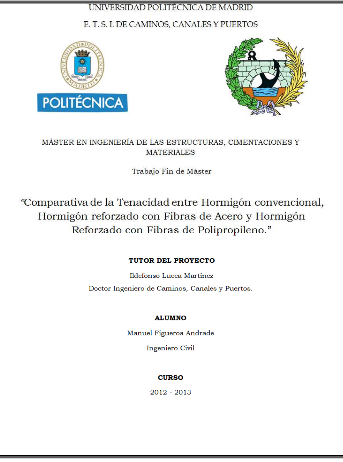 0 1 Comparativa de la Tenacidad entre Hormigón Convencional, Hormigón reforzado con Fibras de Acero y Hormigón Reforzado con Fibras de Polipropileno. 2 AGRADECIMIENTOS. Quiero agradecer a Ildefonso Lucea Martínez por su orientación y enseñanzas compartidas, pero principalmente por ser mi tutor en este trabajo. También le doy las gracias a Iván Rodríguez Osorio y Marcos García Alberti por sus consejos, tiempo y dedicación que me han brindado, sin su ayuda no hubiera sido posible realizar este trabajo. 3 ÍNDICE 1. OBJETIVOS 2. INTRODUCCIÓN 3. MARCO TEÓRICO 3.1 Definición de HRF 3.2 Acciones y coeficientes de seguridad 3.3 Clasificación 3.3.1 Fibras de acero 3.3.2 Fibras poliméricas 3.4 Resistencia a Flexotracción 3.5 Docilidad 3.6 Durabilidad 3.7 Dosificación 3.8 Determinación del contenido de fibras 3.8.1 Contenido de Fibras de Acero 3.8.1.1 Ensayo por lavado 3.8.1.2 Ensayo por inducción electromagnética 3.8.2 Contenido de Fibras de Polipropileno 3. 9 Normativas extranjeras 3.9.1 Los Eurocódigos. 3.9.2 American Society for Testing and Materials (ASTM). 3.10 Tenacidad. 3.11 Comportamiento del HRF en relación al tamaño de la fibra. 3.12 Propiedades de tracción y compresión 4. CAMPAÑA EXPERIMENTAL 4.1 Hormigón Autocompactante. 4.2 Propiedades de las fibras. 4.3 Dosificación. 4.4 Pruebas en hormigón fresco. 4.4.1 Cono de Abrams. 4.4.2 Embudo en V. 4.5 Probetas. 4.6 Curado del Hormigón. 4.7 Ensayo de Compresión Simple. 4.8 Ensayo de Módulo de Elasticidad y Poisson. 4.9 Ensayo de Tracción Indirecta. 4.10 Ensayo de Durabilidad. 4 4.11 Ensayo de Fractura a flexotracción. 4.11.1 Resistencia Residual a tracción por flexión. 4.11.2 Energía de fractura. 5. RESUMEN DE RESULTADOS. 5.1 Resultados en hormigón fresco. 5.2 Propiedades mecánicas. 5.3 Propiedades de fractura. 6. CONCLUSIONES. 7. REFERENCIAS. 5 1. OBJETIVOS. En este trabajo se estudiará como el uso de Fibras en el Hormigón aumenta la Tenacidad, y por tanto otras propiedades de los hormigones, permitiendo soportar en algunos casos mayores esfuerzos antes de llegar a su rotura. El objetivo principal es profundizar en el estudio de las fibras como refuerzo en el Hormigón y de esta manera fijar los conceptos que lo caracterizan para ser capaces de definir y justificar actualmente su uso en el sector de la construcción. Con la misma finalidad se realizará una comparativa entre un Hormigón reforzado con Fibras de Acero y un Hormigón reforzado con Fibras de Polipropileno, analizando las variantes que presentan en cuanto a su Tenacidad. El conocer el comportamiento del Hormigón reforzado con cada fibra, nos permite definir las aplicaciones en las cuales se recomendaría utilizar cada una de ellas. Este Trabajo Fin de Master pretende poder predecir qué tipo de tenacidad tendrá el hormigón en función de los dos tipos de fibras de refuerzos propuestas y definir claramente la mejor aplicación que puede tener en la obra. Cabe mencionar que los modelos de Hormigón propuestos a lo largo del trabajo hacen referencia a la normativa descrita en la EHE para Hormigones reforzados con fibras. Para fibras de Acero como refuerzo en el hormigón, se consultará la UNE 83.500-1:1989 y la UNE 83512-1:2005, para fibras de polipropileno la UNE 83.500-2:1989 y la UNE 83512-2:2005, y para el índice de tenacidad y resistencia a primera fisura consultaremos la UNE 83510:2004. Como último alcance se intenta realizar un trabajo que sirva de consulta y orientación al lector interesado en el manejo y funcionalidad de este tipo de hormigones, de tal manera que a lo largo del escrito se mencionaran algunas normativas, procesos y ensayos referentes a los hormigones reforzados con fibras. 6 2. INTRODUCCIÓN. Existen ejemplos bien documentados de que la idea refuerzos con fibras tiene antecedentes de más de 2.000 años, como son las construcciones que antiguamente se realizaban con arcilla mezclada con paja. Sin embargo propiamente los hormigones reforzados con fibras comenzaron a realizarse cerca del año 1940, y desde entonces se han probado distintos materiales de refuerzo buscando clasificar cada material de acuerdo a las mejoras que realiza en las propiedades del hormigón. Desde el comienzo se ha considerado al hormigón de cemento Portland como un material frágil, ya que el hormigón es capaz de resistir esfuerzos de compresión y muy poco a tracción, de tal manera que esa fragilidad se convirtió en una de las razones por las que se comenzó a reforzarlo. Al agregar fibras de refuerzo en la mezcla de hormigón se consigue un compuesto capaz de trabajar a compresión y a tracción. Esto se debe a que las fibras son capaces de ayudar a soportar entre otras las cargas de tracción, incrementando la Tenacidad. La mejora de las propiedades del hormigón reforzado con fibras depende de varios factores a considerar, los más importantes son el material de la fibra, el porcentaje de fibras añadidas en relación con la masa del hormigón, la forma, la longitud, el diámetro equivalente de la fibra y su distribución aleatoria dentro de la mezcla. 7 3. MARCO TEÓRICO. 3.1 DEFINICIÓN DE HRF. El hormigón convencional tiene algunos inconvenientes, como baja resistencia a la tracción, a la ductilidad y a la capacidad de absorción de energía. Cuanto más alta es la resistencia del hormigón, estos inconvenientes se vuelven más significativos. Para mejorar el funcionamiento del hormigón se añade una pequeña fracción de fibras (hasta 2.0 % del volumen total), mientras se mezclan los agregados y el cemento, consiguiendo una notable mejoría en las debilidades antes mencionadas. Los hormigones reforzados con fibras (HRF) los define la normativa española EHE-08 como aquellos que incluyen en su composición fibras cortas, discretas y aleatoriamente distribuidas en su masa. La EHE-08 no considera dentro de la norma aquellos HRF que tengan fibras de materiales no descritos en el anejo, aquellos que la distribución y/o orient