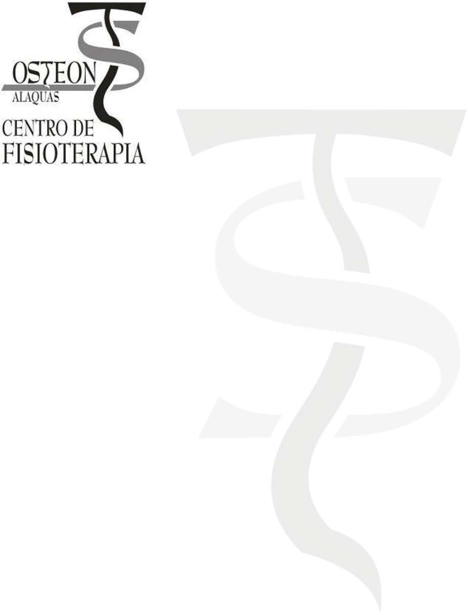 Actividades Acuáticas Terapéuticas Carlos López Cubas Fisioterapeuta Col. nº 692 NIF: 53.097.693 P Tel: 646 07 65 83 C/ Tomás Martínez Medina, 13 bajo 46970 Alaquàs (Valencia) Actividades Acuáticas Terapéuticas Carlos López Cubas TEMARIO CURSO ACTIVIDADES ACUÁTICAS TERAPÉUTICAS Carlos López Cubas - Justificación del programa. - Los desequilibrios musculares como modelo de trabajo. - Indicaciones de las actividades acuáticas terapéuticas. - Los recursos terapéuticos en el medio acuático. - Desarrollo de los programas de actividades acuáticas terapéuticas. o Síndromes generales. o Síndromes cérvico-escapulares. o Síndromes lumbo-pélvicos. o Síndromes específicos. - Ejercicio en seco - Técnicas acuáticas terapéuticas especiales. - Bibliografía Actividades Acuáticas Terapéuticas Carlos López Cubas Justificación del programa Dentro de los diferentes programas acuáticos, el programa de actividades acuáticas terapéuticas que presentamos busca una compensación de una serie de patologías que cursan con un cuadro de desacondicionamiento susceptible de modificación mediante el ejercicio terapéutico en el medio acuático. Los desequilibrios musculares como modelo de trabajo El conjunto de signos y síntomas similares que acompañan a determinados conjuntos de enfermedades de símil localización ha sido estudiado por diferentes autores. Resulta pues esencial conocer la anatomía y función de aquellos músculos que se van a comportar de una u otra forma ante una situación de desacondicionamiento físico. - Músculos posturales / tónicos: responden a la disfunción / tensión con facilitamiento, acortamiento e hipertonía. Gemelos, sóleo, aductores cortos, recto anterior del cuádriceps, isquiotibiales, psoas iliaco, piramidal, tensor de la fascia lata, cuadrado lumbar, erectores espinales, dorsal ancho, porción superior del trapecio, esternocleidomastoideo, suboccipital, angular de la escápula, masticadores, pectoral mayor y flexores de los brazos. - Músculos dinámicos / fásicos: responden a la disfunción / tensión con inhibición, hipotonía y debilidad (denominada pseudoparesia por Janda). Tibial anterior, glúteo mayor, glúteo mediano, recto mayor del abdomen, trapecio medio e inferior, escaleno y largo del cuello, deltoides, digástrico, serrato anterior y romboides. Agrupando por localización estos músculos se deducen los síndromes característicos de la zona cérvicoescapular y la zona lumbopélvica, llamados síndromes cruzados superior e inferior. El objetivo del tratamiento de los desequilibrios musculares consiste en restablecer la longitud, la fuerza y el control de la función muscular. El ejercicio en el medio acuático se presenta muy útil a la hora de actuar sobre la función muscular mediante ejercicios en los que se genera un estiramiento de los músculos acortados, fortalecimiento de los músculos debilitados y un acondicionamiento aeróbico. Los desequilibrios musculares como modelo de trabajo El modelo de los desequilibrios muscularesde V. Janda da una visión funcional y operativa del conjunto de manifestaciones físicas que acontecen cuando se da el s índrome de desacondicionamiento Se basa en la distinción entre músculos posturales y dinámicos, y a su diferente respuesta ante el estr és, la disfunción, la tensión Músc. POSTURALES / TÓNICOS Músc. DINÁMICOS / FÁSICOS FACILITAMIENTO INHIBICIÓN ACORTAMIENTO DEBILIDAD HIPERTONÍA HIPOTONÍA Actividades Acuáticas Terapéuticas Carlos López Cubas Indicaciones de las actividades acuáticas terapéuticas a) Síndromes generales. Desórdenes que cursan con un desacondicionamiento general. b) Síndromes cérvico-escapulares . El trabajo se dirige a la compensación del SCS. c) Síndromes lumbo-pélvicos. El trabajo se dirige a la compensación del SCI. d) Síndromes específicos. Nos referimos al conjunto de signos y síntomas que acompañan a patologías de características especiales por cursar con un cuadro diferente a las que englobamos en los otros grupos. Tienen aquí cabida: a. Dorsalgias. b. Espondilitis Anquilopoyética. c. Omalgias. d. Síndromes neurológicos e. Síndromes traumatológicos. f. Síndromes cardiovasculares. g. Síndromes respiratorios. h. Obesidad. i. Otros: 3ª edad, Pre-post parto, estimulación precoz de bebés,... Los recursos terapéuticos en el medio acuático 1. Ejercicios basados en habilidades acuáticas básicas a. Familiarización b. Respiración c. Flotación d. Lanzamientos y recepciones e. Giros f. Saltos 2. Ejercicios basados en marchas 3. Ejercicios basados en desplazamientos acuáticos a. Ejercicios basados en los estilos de la natación deportiva i. Crol ii. Espalda iii. Braza iv. Mariposa b. Ejercicios basados en desplazamientos inespecíficos 4. Ejercicios terapéuticos específicos a. Ejercicios activos asistidos, libres y resistidos b. Estiramientos c. Ejercicios propioceptivos 5. Técnicas de relajación 6. Actividades de adherencia Actividades Acuáticas Terapéuticas Carlos López Cubas Desarrollo de los programas de actividades acuáticas terapéuticas Síndromes generales Dentro de este grupo incluimos aquellos desórdenes que cursan con un desacondicionamiento general. Este desacondicionamiento general, tanto físico como psicológico, aparece como respuesta a los síndromes de dolor más persistente. Generalmente se asocia a la inactividad y afecta a la función muscular, articular, cardiovascular y propioceptiva. Los cuadros clínicos relacionados son: - Poliartrosis - Fibromialgia - Osteoporosis - Post-operatorios, inmovilizaciones prolongadas - Psicoastenia, depresión - Sedentarismo Recursos terapéuticos en el medio acuático 1. Ejercicios basados en habilidades acuáticas básicas Estos ejercicios nos van a permitir una progresión en el dominio del medio acuático, y su indicación estará en función del grado de ese dominio más que del cuadro patológico existente. a. Familiarización Contacto con el ag
