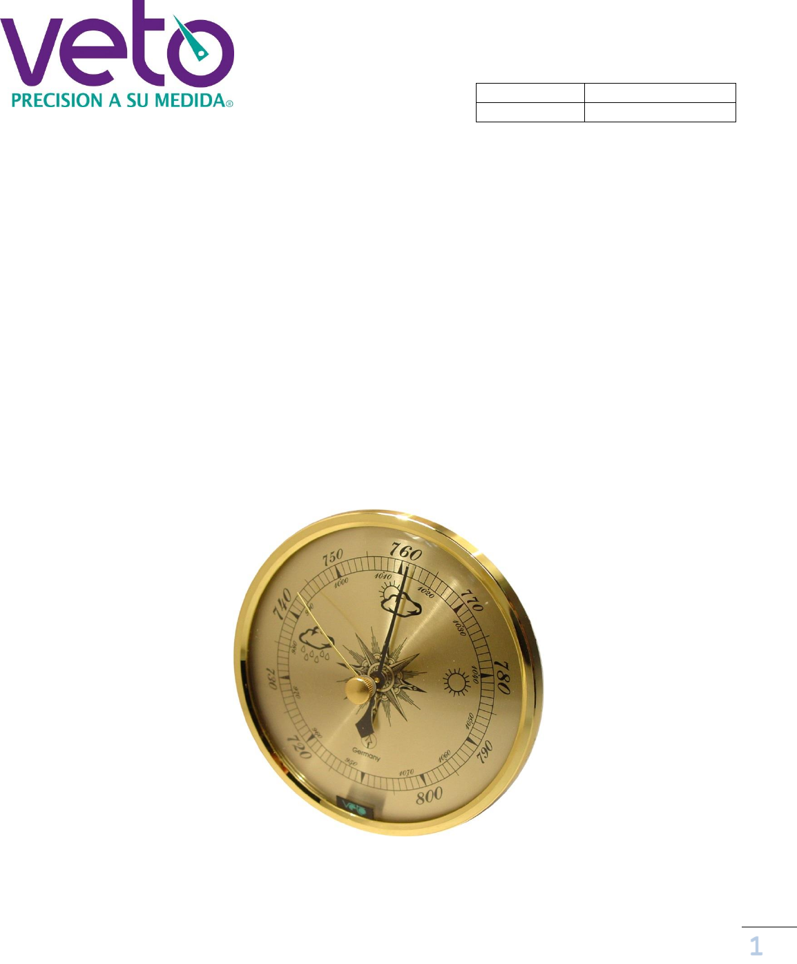 VETO Y CIA LTDA ● SAN EUGENIO 567 ● CASILLA 10289 ● FONOS: (2) 23554400 ● FAX: (2) 23554455 ● SANTIAGO ● CHILE 1 BARÓMETRO A6034506 Manual del usuario Fecha edición Agosto 2015 N° Versión 01 VETO Y CIA LTDA ● SAN EUGENIO 567 ● CASILLA 10289 ● FONOS: (2) 23554400 ● FAX: (2) 23554455 ● SANTIAGO ● CHILE 2 Barómetro Ajuste del barómetro El barómetro mide la presión atmosférica (con referencia al nivel del mar.) La presión baja cuando la altura aumenta (unos 9 mm de columna de mercurio por cada 100 m de diferencia de altura.) La presión barométrica siempre se indica con referencia al nivel del mar. La calibración se ha realizado de modo que la escala indique la presión atmosférica que se mediría a 0 metros de condiciones idénticas. El barómetro ha sido ajustado a partir del punto de fabricación (140 metros / 459 pies) Para ajustar el barómetro a otras alturas, debe efectuarse la corrección correspondiente. La corrección es fácil de realizar. El tornillo de ajuste en la parte posterior del barómetro, se gira mediante un destornillador hasta que aguja indique el valor deseado. Ud. Obtendrá el valor de ajuste correcto comparando con el barómetro en la óptica local o consultando el diario de la localidad o a partir de la información meteorológica de la radioemisora de su región. Ud. Puede ajustar de otro modo calculando el valor correcto. El nivel del mar de su localidad en metros con deducción de 140) x 0,12mb (hPa) = valor diferencial El nivel del mar de su localidad en metros con deducción de 140) x 0,09 mm = valor diferencial) El nivel del mar de su localidad en pies con deducción de 459 ) x 0,00108 pulgadas = valor diferencial ) Valor de indicación actual + valor diferencial = valor de ajuste Ejemplo de cálculo: El nivel del más de su localidad es de 350m, la presión atmosférica indicada es de 972 Mb (hPa) (350-140) x 0,12 mb (hPa) =25,2 mb (hPa) 972 mb (hPa) +25,2 mb (hPa) = 997,1 mb (hPa) La aguja del barómetro debe ajustarse a 997,1 mb (hPa). VETO Y CIA LTDA ● SAN EUGENIO 567 ● CASILLA 10289 ● FONOS: (2) 23554400 ● FAX: (2) 23554455 ● SANTIAGO ● CHILE 3 Lectura del barómetro Los cambios de la presión atmosférica se registran mediante la aguja del barómetro. La posición en la escala de la aguja es menos decisiva para el desarrollo del tiempo que los movimientos (tendencia) hacia arriba o hacia abajo. El barómetro indica la situación meteorológica local con una anticipación de 24 a 48 horas. Pequeñas reglas meteorológicas Mejora: Cuando la presión atmosférica comienza a subir Empeoramiento: Cuando la presión atmosférica baja Mejora momentánea: Cuando la presión atmosférica sube rápidamente Empeoramiento momentáneo: Cuando la presión atmosférica baja rápidamente Mejora duradera: Cuando la presión atmosférica sube lentamente Empeoramiento duradero: Cuando la presión atmosférica baja lentamente El presente manual ha sido traducido y revisado por el Departamento Técnico de VETO Y CIA LTDA En caso de requerir ayuda u orientación adicional para el adecuado uso de este instrumento, favor comunicarse con VETO y CIA LTDA. http://www.veto.cl/index.php