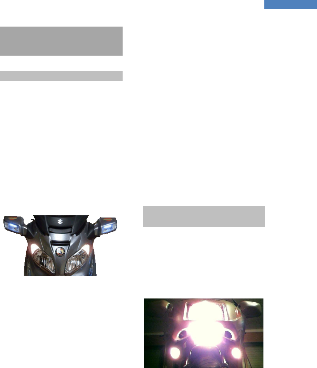 1 TEMA 6: LUCES 6.1. Tipos de luces y su utilización 6.1.1 La luz de posición Las luces de posición sirven para que el vehículo sea visible a otros usuarios y para indicar su anchura. - Las delanteras son blancas. - Las traseras son rojas. - Las laterales son amarillas. Los ciclomotores de tres ruedas y cuadriciclos deben llevar una o dos luces de posición, tanto por delante como por detrás. Los ciclomotores de dos ruedas no tienen que llevarlas. Utilización: Deben estar encendidas al circular por una vía entre el ocaso y el amanecer, en condiciones meteorológicas que reduzcan la visibilidad y en túneles u otros tramos afectados por la debida señalización. Sin embargo está prohibido circular únicamente llevando encendida la luz de posición. Por eso, se encienden automáticamente al activar las luces de cruce de carretera y las antiniebla. Además deben dejar las luces de posición, los vehículos que de noche o con meteorología adversa estén en las siguientes situaciones. -Vehículos detenidos en la calzada o arcén de cualquier vía. -Vehículos estacionados en el arcén no transitable de una vía interurbana. - Vehículos estacionados en la calzada o arcén de una travesía insuficientemente iluminada. Si el vehículo queda estacionado en línea pueden sustituirse por las luces dos luces de posición laterales o por las de estacionamiento . -Excepcionalmente en vehículos estacionados dentro de poblado, cuando la ilumina-ción no permita a otros usua-rios distinguirlo a suficiente distancia. 6.1.2. Luz de carretera o largo alcance Las luces de largo alcance o de carretera se utilizan para alumbrar una larga distancia por delante del vehículo, y son de color blanco. No son obligatorias para los ciclomotores, aunque pueden llevarlas. Utilización: Las luces de carretera deben ser utilizadas por la motocicleta cuando circulen a más de 40km/h en los siguientes casos. - Entre la puesta y salida del sol envías interurbanas que estén 2 TEMA 6: LUCES insuficientemente iluminadas. - A cualquier hora del día en túneles, pasos inferiores y tramos afectados por la señal túnel y que estén insuficientemente iluminados. - Cuando las condiciones meteorológicas disminuyan la visibilidad. - Si el vehículo no dispone de luz de carretera utilizará la de corto alcance. Asimismo, también pueden utilizarse ocasionalmente dentro y fuera de poblado para sustituir a las señales acústicas. En este caso se realizarán destellos breves e intermitentes. Las luces de largo alcance o de carretera nunca deben utilizarse si el vehículo se encuentra parado o estacionado o cuando se circule en vías dentro de poblado. 6.1.3. Luz de cruce o de corto alcance Las luces de corto alcance o de cruce son de color blanco y sirven para alumbrar la vía por delante del vehículo sin molestar ni deslumbrar a los demás usuarios si están regladas a la altura correcta. Los ciclomotores pueden llevar una o dos luces de cruce. Los vehículos de tres ruedas llevarán dos si su anchura es superior a 1.300mm. Utilización: Siempre que se circule con la motocicleta entre el ocaso y la salida del sol, por vías urbanas o interurbanas suficientemente iluminadas o a cualquier hora del día, por túneles, pasos inferiores y tramos de la vía afectados por la señal “túnel”, suficientemente iluminados, se llevará encendido el alumbrado de cruce o de corto alcance. Igualmente cuando se circule en los poblados estando la vía insuficientemente iluminada. Se deberá utilizar el alumbrado de cruce o corto alcance entre el ocaso y la salida del sol al circular por vías interurbanas insuficientemente iluminadas o a cualquier hora del día por túneles, pasos inferiores o tramos afectados por la señal “túnel” insuficientemente iluminados, cuando concurra alguna de las siguientes circunstancias: - No se dispone de alumbrado de carretera o de largo alcance (avería). - Se circule a velocidad no superior a 40 km/h y no se esté utilizando el alumbrado de carretera. - Por la posibilidad de producir deslumbramiento a otros usuarios de la vía. 6.2. El deslumbramiento Las luces de largo alcance han de ser sustituidas por las de corto alcance en el momento en que exista la posibilidad de producir deslumbramiento a otros usuarios de la misma vía o de cualquier otra vía de comunicación. Hay que prestar especial atención para no deslumbrar a los usuarios que circulen en sentido contrario. 3 TEMA 6: LUCES Se podrá restablecer el alumbrado de carretera una vez rebasado el vehículo cruzado. Hay que tener la misma precaución hacia los vehículos que circulen en el mismo sentido, ya que los sus conductores podrían ser deslumbrados a través del espejo retrovisor. En caso de deslumbramiento, el conductor que lo sufra reducirá la velocidad lo necesario, incluso hasta la detención total, para evitar el alcance de vehículos o peatones que circulen en el mismo sentido. 6.3. Luces de señalización 6.3.1. Indicadores de dirección Son luces intermitentes de color amarillo auto. Están una a cada lado del ciclomotor, tanto en la parte delantera como en la trasera y sirven para señalizar a los demás usuarios la intención de cambiar la dirección. Son obligatorias para los vehículos de carrocería cerrada y opcionales para el resto. Deben usarse y ser visibles de día y de noche. 6.3.2. Luz de frenado Son dos luces de color rojo intenso situadas en la parte trasera del vehículo que deben encenderse automáticamente al pisar el pedal de freno. Para avisar a los vehículos que circulan por detrás de la intención de reducir considerablemente la velocidad, conviene accionarlas repetidas veces pisando suavemente el pedal de freno. 6.3.3. Catadióptricos o retrocatadióptricos (reflectantes) Son dispositivos construidos en material reflectante y que advierten de la posición de un vehículo por la reflexión de la luz procedente de alguna fuente luminosa, como pueden ser el alumbrado público o el de los demás usuar