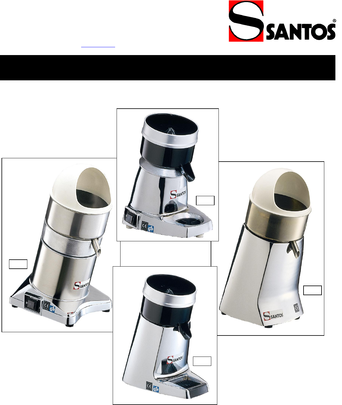 <p>SANTOS : Manuel d'utilisation et d’entretien</p><p>SANTOS :</p><p>140-150 AVENUE ROGER SALENGRO</p><p>69120 VAULX-EN-VELIN (LYON) - FRANCE</p><p>TÉL. 33 (0) 472 37 35 29 - FAX 33 (0) 478 26 58 21 - TÉLEX 375 359 F</p><p>TELECOPIE 33 (0) 478 26 58 21</p><p>E-Mail :santos@santos.fr www.santos.fr</p><p>EXPRIMIDOR CITRICOS N°11- N°38 - N°29 - N°46</p><p>INSTRUCC</p><p>Coffee grinders - F</p><p>Cheese graters - I</p><p>Molinillos de café</p><p>mezcladoras - Am</p><p>de carne- Cortado</p><p>N°29</p><p>Page 1 / 9</p><p>IONES DE UTILIZACION Y MANTENIMIENTO</p><p>ruit juicers - Mixers - Blenders - Drinks dispensers - Planetary mixers</p><p>ce crushers - Mincers - Vegetable slicers – Dough mixer</p><p>- Licuadoras - Batidoras- Mezcladoras – Distribuidoras de bebidas – Batidoras</p><p>asadoras – Ralladores de queso- Trituradoras de cubitos de hielo – Picadoras</p><p>ras de verduras</p><p>MODELOS REGISTRADOS EN FRANCIA Y EN EL EXTRANJERO</p><p>INTERNATIONALLY PATENTED MODELS</p><p>N°11</p><p>N°46</p><p>N°38</p><p>http://www.santos.fr/</p><p>SANTOS : Manuel d'utilisation et d’entretien</p><p>Page 2 / 9</p><p>SU EXPRIMIDOR DE CITRICOS N°11- N°38 - N°29- N°46</p><p>• Los exprimidores de cítricos N°11 - N°38 - N°29 - N°46 están particularmente</p><p>pensados para bares, cafés, hoteles, restaurantes, coctelerías, colectividades,</p><p>establecimientos especializados en zumos de frutas naturales…</p><p>• Los aparatos N°11 y N°38 están constituidos por un bloque motor de aluminio, una</p><p>cubeta para el zumo y 2 piñas exprimidoras de plástico técnico.</p><p>• Los aparatos N°29 y N°46 se componen de un bloque motor de aluminio, un motor</p><p>potente para un uso intensivo, una cubeta de acero inoxidable, 2 piñas exprimidoras</p><p>de plástico y una tapa anti-salpicaduras de plástico.</p><p>• Los exprimidores de cítricos N° 11 - N°38 - N°29 - N°46 se han pensado para</p><p>exprimir limones, naranjas o pómelos.</p><p>• Son ideales para la preparación de : zumo de limón, de naranja o de pómelo</p><p>naturales o que sirvan de base para la preparación de cócteles de fruta.</p><p>CONEXION ELECTRICA ;</p><p>• La alimentación eléctrica del aparato está disponible en 2 voltajes monofásicos :</p><p>- 110-120 V, 50/60 Hz</p><p>- 220-240 V, 50/60 Hz</p><p>Protección de línea : el aparato debe conectarse a una toma de corriente estándar 2 polos</p><p>+ tierra. La instalación debe contar con un disyuntor diferencial y un fusible calibrado a</p><p>16A.</p><p>ATENCION :</p><p>• Antes de conectar el aparato, comprueben que la tensión de su red de alimentación</p><p>corresponde a la tensión de funcionamiento, indicada en la hoja de garantía</p><p>entregada con el aparato o en la placa de características situada bajo el mismo.</p><p>• Si el cable de alimentación está deteriorado, debe ser cambiado por un conjunto</p><p>especial que pueden obtener en la Sociedad SANTOS o en un distribuidor</p><p>homologado SANTOS.</p><p>ATENCION : Comprueben que el interruptor marcha / parada (6) está en posición 0</p><p>antes de conectar el enchuche del cable de alimentación (7) a la toma de</p><p>su red de alimentación eléctrica (Fig. A.).</p><p>Nota : Para facilitar la comprensión de los siguientes apartados, remítanse a los</p><p>esquemas situados al final de las instrucciones.</p><p>SANTOS : Manuel d'utilisation et d’entretien</p><p>Page 3 / 9</p><p>Utilización del exprimidor</p><p>1ª UTILIZACION</p><p>Limpiar correctamente las piezas destinadas a estar en contacto con los alimentos (Fig.</p><p>A).</p><p>• Retirar la tapa anti salpicaduras (8) {modelos N°29 y N°46}.</p><p>• Retirar la piña (1) tirándola hacia arriba.</p><p>• Retirar la cubeta (2), la rejilla para la pulpa (9) {modelos N°29 y N°46} y la tapa</p><p>protectora (3) {modelos N°11 y N°38}.</p><p>• Lavar las piezas con un detergente estándar o con líquido para la vajilla.</p><p>PUESTA EN MARCHA :</p><p>Atención : La fruta utilizada debe lavarse cuidadosamente antes de ser exprimida.</p><p>Montaje y preparación :</p><p>1. Colocar la tapa protectora (3) en la cubeta (2) {modelos N°11 y N°38}.</p><p>2. Colocar la cubeta (2) en la base (4).</p><p>3. Colocar la rejilla para pulpa (9) en la cubeta.</p><p>4. Colocar la piña (1) en el eje del motor (5).</p><p>5. Colocar la tapa anti salpicaduras (8) sobre la cubeta (2) {modelos N°29 y N°46}.</p><p>6. Cortar los cítricos en dos mitades.</p><p>7. Poner un vaso verticalmente bajo la boquilla de la cubeta (2).</p><p>8. Poner en funcionamiento el aparato posicionando el interruptor Marcha/Parada (6)</p><p>en "1".</p><p>9. Apretar las mitades de los cítricos. Unas tras otras.</p><p>10. Al final de su utilización, parar el aparato poniendo el interruptor Marcha/Parada (6)</p><p>en "0".</p><p>LIMPIEZA :</p><p>IMPORTANTE:</p><p>• En todos los casos, parar el aparato y desenchufar el cable de</p><p>alimentación del mismo (7).</p><p>• No está autorizada la limpieza de este aparato con chorro de agua ni aire a</p><p>presión.</p><p>• La base (4) no debe sumergirse en agua.</p><p>Se recomienda limpiar el aparato nada más terminar el trabajo.</p><p>La limpieza será más fácil si no se espera mucho tiempo, dejando que se sequen los</p><p>alimentos en la cubeta (2), en la tapa anti salpicaduras (8), en la piña (1) o en la rejilla</p><p>para pulpa (9).</p><p>La base (4) se limpiará con una esponja suave y húmeda y luego se secará</p><p>SANTOS : Manuel d'utilisation et d’entretien</p><p>Page 4 / 9</p><p>MANTENIMIENTO</p><p>Antes de cualquier intervención en el aparato, es imperativo que se desenchufe el aparato</p><p>de la corriente (7).</p><p>Esta máquina no necesita ningún mantenimiento especial, los rodamientos están</p><p>engrasados de por vida.</p><p>Si fuera necesaria una intervención para cambiar piezas como los componentes eléctricos</p><p>u otros, refiéranse a la lista de componentes (vé