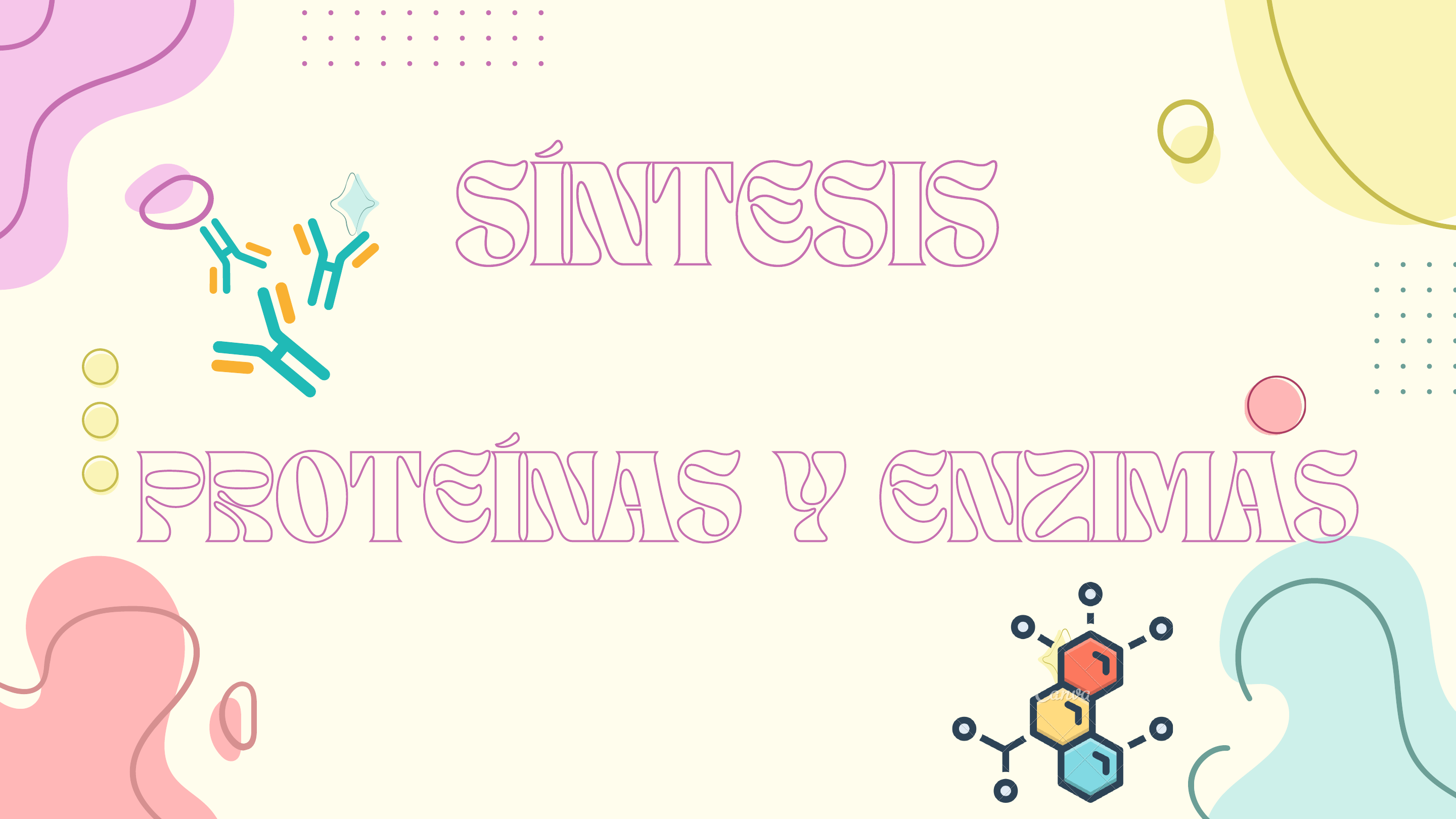 <p>SÍNTESISSÍNTESIS</p><p>DE</p><p>PROTEÍNAS Y ENZIMASPROTEÍNAS Y ENZIMAS</p><p>Integrantes:</p><p>Benites Wendy</p><p>Carvajal Josselyn</p><p>Corrales Damaris</p><p>Cruz Karen</p><p>Fajardo Israel</p><p>Salazar Madelyne</p><p>Sotomayor Isabella</p><p>Las proteínas son macromoléculas formadas por cadenas lineales de aminoácidos. Las</p><p>proteínas desempeñan un papel fundamental en los seres vivos y son las biomoléculas más</p><p>versátiles y más diversas.</p><p>Realizan una enorme cantidad de funciones diferentes. Las proteínas se sintetizan</p><p>dependiendo de como se encuentren regulados los genes que las codifican.</p><p>PROTEÍNASPROTEÍNAS</p><p>Podemos distinguir cuatro niveles de estructuración en las</p><p>proteínas:</p><p>Estructura primaria</p><p>Estructura secundaria</p><p>Estructura terciaria</p><p>Estructura cuaternaria</p><p>ESTRUCTURAESTRUCTURA</p><p>DE</p><p>LAS PROTEÍNASLAS PROTEÍNAS</p><p>Anticuerpo1.</p><p>Enzima2.</p><p>Mensajera3.</p><p>Estructural4.</p><p>Transporte/ Almacenamiento5.</p><p>FUNCIONESFUNCIONES</p><p>DE</p><p>LAS PROTEÍNASLAS PROTEÍNAS</p><p>CLASIFICACIÓNCLASIFICACIÓN</p><p>DE LASDE LAS</p><p>PROTEÍNASPROTEÍNAS</p><p>En estos sentidos, son macromoléculas</p><p>compuestas a partir de una serie de</p><p>aminoácidos enlazadas mediante</p><p>enlaces peptídicos entre sí y que</p><p>participan en todos y cada uno de los</p><p>procesos llevados a cabo por el</p><p>organismo.</p><p>Proteínas globulares</p><p>Proteínas fibrilares</p><p>Proteínas estructurales</p><p>Proteínas de reserva</p><p>Proteínas activas</p><p>Las proteínas son moléculas grandes y</p><p>complejas que desempeñan muchas</p><p>funciones críticas en el cuerpo. Realizan la</p><p>mayor parte del trabajo en las células y son</p><p>necesarias para la estructura, función y</p><p>regulación de los tejidos y órganos del</p><p>cuerpo.</p><p>PROPIEDADESPROPIEDADES</p><p>DE LASDE LAS</p><p>PROTEÍNASPROTEÍNAS</p><p>SOLUBILIDAD</p><p>Establecen puentes de hidrógeno con las</p><p>moléculas de agua, formándose una capa</p><p>de moléculas de agua que impide su unión</p><p>con otras proteínas. Cuando añadimos</p><p>alguna sal, esta solvatación desaparece,</p><p>las proteínas se unen unas con otras, y</p><p>precipitan.</p><p>Consiste en la rotura de los enlaces que mantienen el</p><p>estado nativo de la proteína, perdiendo todas sus</p><p>estructuras salvo la primaria. La desnaturalización</p><p>puede tener lugar por los siguientes motivos:</p><p>Cambios en el pH</p><p>Cambios en la temperatura</p><p>Cambios en la salinidad</p><p>Agitación mecánica</p><p>Tratamiento con sustancias desnaturalizantes</p><p>como la urea</p><p>ESPECIFICIDAD</p><p>•Cada especie tiene unas proteínas propias,</p><p>distintas a las de las otras. También hay diferencias</p><p>entre individuos de la misma especie (recuerden</p><p>que las proteínas vienen de los genes).</p><p>Diferenciamos dos:</p><p>•Especificidad de función.-Cada proteína realiza una</p><p>función concreta.</p><p>•Especificidad de especie.- Hay proteínas que son</p><p>exclusivas de cada especie.</p><p>DESNATURALIZACIÓN</p><p>CAPACIDAD AMORTIGUADORA</p><p>Como tienen un comportamiento anfótero son</p><p>capaces de amortiguar las variaciones del pH del</p><p>medio en el que se encuentran.</p><p>METABOLISMO DEMETABOLISMO DE</p><p>LAS PROTEÍNASLAS PROTEÍNAS</p><p>En el metabolismo de las proteínas se incluyen aquellos procesos que</p><p>regulan la digestión de las proteínas, el metabolismo de los aminoácidos</p><p>y el turnover de las proteínas; procesos que a su vez incluyen la absorción</p><p>y suministro de aminoácidos de la dieta, la síntesis de novo y utilización</p><p>de aminoácidos y la hidrólisis y síntesis de proteínas.</p><p>Las enzimas son moléculas orgánicas que actúan como catalizadores de reacciones</p><p>químicas, es decir, aceleran la velocidad de reacción.</p><p>Comúnmente son de naturaleza proteica, pero también de ARN (ver ribozimas),</p><p>modifican la velocidad de reacción, sin afectar el equilibrio de la misma, ya que una</p><p>enzima hace que una reacción química transcurra a mayor velocidad, siempre y cuando</p><p>sea energéticamente posible (ver energía libre de Gibbs).</p><p>EnzimasEnzimas</p><p>Según su estructura, se pueden diferenciar dos tipos de enzimas:</p><p>Holo proteínas, enzimas formadas solamente por</p><p>polipéptidos.</p><p>Holoenzimas, enzimas formadas por la asociación de una</p><p>parte polipeptídica o apoenzima y de una parte no</p><p>polipeptídica o cofactor.</p><p>ESTRUCTURAESTRUCTURA</p><p>LAS ENZIMASLAS ENZIMAS</p><p>DE</p><p>Las enzimas son catalizadores biológicos; aceleran la velocidad de las reacciones químicas y pueden</p><p>reutilizarse.</p><p>Permiten que las reacciones se produzcan a temperaturas inferiores a las generales.</p><p>Favorecen la digestión y absorción de los nutrientes a partir de los alimentos que se ingieren.</p><p>Producen la inhibición de procesos inflamatorios y favorecen la recuperación de golpes, así como ayudan a</p><p>eliminar las toxinas.</p><p>Las enzimas unen las moléculas reactantes , específica y fuertemente, en un sitio de la enzima llamado</p><p>sitio activo.</p><p>También posicionan correctamente los reactantes para que estos no tengan que superar fuerzas</p><p>intermoleculares que de otra forma los separarían.</p><p>FUNCIONESFUNCIONES</p><p>DE</p><p>LAS ENZIMASLAS ENZIMAS</p><p>https://www.ejemplos.co/25-ejemplos-de-macronutrientes-y-micronutrientes/</p><p>https://www.ejemplos.co/ejemplos-de-alimentos-y-sus-nutrientes/</p><p>CLASIFICACIÓNCLASIFICACIÓN</p><p>DE LASDE LAS</p><p>ENZIMASENZIMAS</p><p>Las enzimas se clasifican en 7 clases</p><p>principales de acuerdo al tipo de</p><p>reacción:</p><p>Oxidorreducción</p><p>Transferencia de grupos</p><p>Hidrólisis</p><p>Ruptura de enlaces</p><p>Isomerización</p><p>Formación de enlaces</p><p>Translocación de solutos</p><p>L