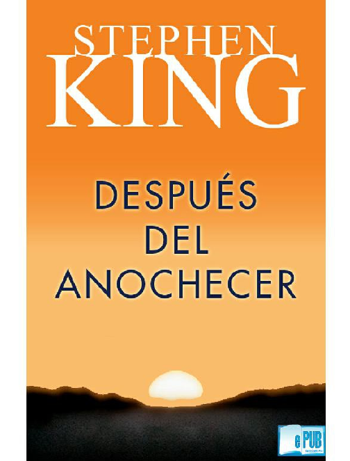 Llámalo anochecer. Llámalo crepúsculo. Llámalo ocaso. El atardecer es aquel momento en el que el devenir humano toma derroteros sobrenaturales, aquel instante en que la luz se transfigura en tinieblas. Cuando el sol se esconde, la imaginación comienza a deslizarse por sombras que derivan en la oscuridad más absoluta y la luz del día huye despavorida de la faz de la Tierra. Después del anochecer es, en definitiva, el momento del día perfecto para Stephen King. En Después del anochecer Stephen King reúne una colección de trece relatos tan asombrosos y escalofriantes que te obligarán a dormir con la luz de la mesilla encendida. Stephen King Después del anochecer ePub r1.1 leandro 28.01.14 Título original: Just After Sunset Stephen King, 2008 Traducción: Javier Martos Angulo Diseño de portada: leandro Editor digital: leandro ePub base r1.0 Para Heidi Pitlor Puedo imaginar lo que viste. Sí, es bastante horrible; pero al fin y al cabo es una vieja historia, un antiguo misterio. […] Tales fuerzas no se pueden mencionar, no se puede hablar de ellas, no se pueden imaginar excepto bajo un velo y un símbolo, un símbolo que para la mayoría de nosotros es una imagen exótica y poética; para otros, es una locura. Pero tú y yo, en todo caso, hemos conocido algo del terror, que mora en el lugar secreto de la vida, manifestado en carne humana; aquello que sin tener forma se moldea a sí mismo. Oh, Austin, ¿cómo es posible? ¿Cómo es que la luz del Sol no se oscurece ante tal cosa y la sólida Tierra no se derrite y hierve bajo esa carga? ARTHUR MACHEN El gran dios Pan Introducción Un día de 1972 llegué a casa del trabajo y me encontré a mi mujer sentada a la mesa de la cocina con unas tijeras de podar delante. Sonreía, lo que indicaba que no era tan grave; por otro lado, dijo que quería mi cartera. Eso ya no sonaba tan bien. Sin embargo, se la entregué. Rebuscó mi tarjeta de crédito Texaco para la gasolina —en aquella época esas cosas se enviaban siempre a los matrimonios jóvenes— y la cortó en tres grandes pedazos. Cuando objeté que la tarjeta nos había sido muy útil y que a final de mes siempre pagábamos lo mínimo (a veces más), ella se limitó a negar con la cabeza y me dijo que los gastos por intereses superaban lo que nuestra frágil economía podía soportar. —Más vale que evitemos la tentación —dijo—. Yo ya he cortado la mía. Y eso fue todo. Ninguno de los dos tuvimos una tarjeta de crédito durante los siguientes dos años. Ella tenía razón, fue inteligente al hacerlo, porque en aquel momento ambos teníamos poco más de veinte años y dos niños a los que cuidar; económicamente estábamos casi con el agua al cuello. Yo enseñaba inglés en un instituto y trabajaba en una lavandería industrial durante el verano, lavando sábanas de motel y conduciendo ocasionalmente el camión de reparto entre esos mismos moteles. Tabby cuidaba de los niños durante el día, escribía poemas mientras dormían la siesta y hacía un turno completo en el Dunkin’ Donuts después de que yo llegara a casa del instituto. En conjunto, nuestros ingresos eran suficientes para pagar el alquiler, comprar comida y disponer de pañales para nuestro hijo pequeño, pero no daban para mantener una línea de teléfono; así que dejamos que corriera la misma suerte que la tarjeta Texaco. Hacer una llamada de larga distancia era demasiada tentación. Teníamos bastante para comprar libros de vez en cuando —ninguno de los dos podíamos vivir sin ellos— y costearme mis malos hábitos (cerveza y tabaco), pero para muy poco más. Ciertamente, el dinero no llegaba para cubrir los gastos financieros por el privilegio de tener aquel útil pero a fin de cuentas peligroso rectángulo de plástico. Por lo general, los ingresos extra se iban en las reparaciones del coche, las facturas del médico, o en lo que Tabby y yo llamábamos «mierdas para niños»: juguetes, un parque infantil de segunda mano y unos cuantos libros enloquecedores de Richard Scarry. A menudo esos pequeños ingresos procedían de los relatos que podía vender a revistas para hombres como Cavalier, Dude y Adam. En aquella época, eso no era dedicarse a la literatura, y cualquier tipo de discusión sobre el «valor duradero» de mi ficción habría sido tan lujoso como aquella tarjeta Texaco. Los relatos, cuando se vendían (no siempre era así), eran sencillamente un puñado de dinero muy bienvenido. Yo los veía como una serie de piñatas a las que golpeaba, no con un palo sino con la imaginación. A veces se rompían y dejaban caer unos pocos cientos de dólares. Otras veces no. Por suerte para mí —y créeme cuando te digo que en más de un sentido he tenido muchísima suerte en la vida—, mi trabajo era también mi placer. Me mataba a trabajar en la mayoría de aquellas historias, y me lo pasaba en grande. Llegaban una detrás de otra, como los éxitos de la emisora AM de música rock que siempre sintonizaba en el estudio-lavandería donde las escribía. Las escribía rápida e intensamente, sin apenas volver atrás después de la segunda revisión, y nunca se me pasó por la cabeza preguntarme de dónde venían, ni en qué se diferenciaba la estructura de un buen relato de la de una novela, ni cómo se gestionan cosas como el desarrollo de los personajes, el argumento y el marco temporal. Progresaba completamente por intuición; no me basaba más que en la perspicacia y en la confianza que un niño tiene en sí mismo. Lo único que me importaba era que los relatos saliesen. Aquello era cuanto tenía que preocuparme. Desde luego, nunca se me ocurrió pensar que escribir relatos era un arte frágil, un arte que puede olvidarse si no se ejerce casi constantemente. Por aquel entonces no me parecía frágil. La mayoría de esas historias me parecían bulldozers. Muchos de los autores de best sellers de Estados Unidos no escriben relatos. Dudo que sea a causa del dinero; los escritores que han obtenido 