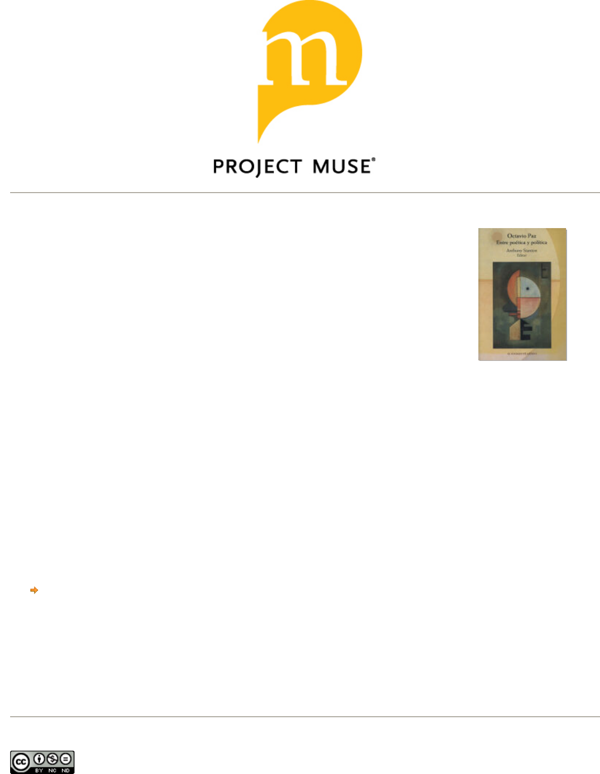 <p>El socialismo en una sola persona: el espectro de Marx en la</p><p>obra de Octavio Paz</p><p>Published by</p><p>Stanton, Anthony.</p><p>Octavio Paz: entre poética y política.</p><p>El Colegio de México, 2009.</p><p>Project MUSE. https://muse.jhu.edu/book/74444. https://muse.jhu.edu/.</p><p>For additional information about this book</p><p>This work is licensed under a</p><p>https://muse.jhu.edu/book/74444</p><p>Creative Commons Attribution 4.0 International License.</p><p>[189.238.47.59] Project MUSE (2024-09-27 20:09 GMT)</p><p>EL SOCIALISMO EN UNA SOLA PERSONA:</p><p>EL ESPECTRO DE MARX EN LA OBRA DE OCTAVIO PAZ</p><p>Yvon Grenier</p><p>Universidad de St. Francis Xavier, Canadd</p><p>If influence is omnipresent in literature,</p><p>it is also, one should emphasize, always</p><p>secondary in any work of quality</p><p>Salman Rushdie1</p><p>La influencia de Marx en la obra de Octavio Paz conlleva por lo me</p><p>nos tres dimensiones clave: la especificidad y profundidad de la in</p><p>fluencia de Marx; su evolución en la trayectoria intelectual de Paz; y</p><p>su trascendencia en relación con otras influencias estéticas e intelec</p><p>tuales.</p><p>Como muchos intelectuales de su generación -y quizá como la</p><p>mayoría de los individuos politizados- las disposiciones de izquier</p><p>da del "joven Paz" eran más agudas (y más ingenuas) que las del in</p><p>telectual maduro. Sin embargo, en muchos comentarios sobre su</p><p>vida y su obra se exagera en extremo el alcance de sus "virajes" ideo</p><p>lógicos (ésta es mi tesis), y esto ocurre de dos maneras complementa</p><p>rias: 1) se amplifica la influencia de Marx en los orígenes del</p><p>pensamiento de Paz; y 2) se atenúa la fidelidad de Paz a posiciones y</p><p>disposiciones de izquierda en su pensamiento político tardío. En</p><p>otros términos, lo que se subvalora es la consistencia notable con la</p><p>cual Paz logró capear el gran temporal ideológico de su siglo. 2</p><p>1 Salman Rushdie, Step Across This Line. Collected Nonfiction, 1992-2002 (Toron</p><p>to: Alfred Knopf Canada, 2002), p. 65.</p><p>2 Comparto el sentimiento de Juan Soriano, gran pintor y viejo amigo de Paz,</p><p>cuando dice: "Yo no sé porqué piensan que Paz ha cambiado; lo conozco desde siempre</p><p>y siempre ha pensado lo mismo. El de 87 es el mismo que el de 37. No se desdice, o ¿es</p><p>211</p><p>[1</p><p>89</p><p>.2</p><p>38</p><p>.4</p><p>7.</p><p>59</p><p>]</p><p>P</p><p>ro</p><p>je</p><p>ct</p><p>M</p><p>U</p><p>S</p><p>E</p><p>(</p><p>20</p><p>24</p><p>-0</p><p>9-</p><p>27</p><p>2</p><p>0:</p><p>09</p><p>G</p><p>M</p><p>T</p><p>)</p><p>2 I 2 YVON GRENIER</p><p>Su pensamiento evolucionó de una manera significativa desde</p><p>los años treinta hasta los años noventa, pero con muy poca variación</p><p>en su defensa de la libertad, de la crítica, del pensamiento y del arte</p><p>independientes. Paz era un republicano progresivo a gusto con las</p><p>prácticas y las ideas liberales. Sin embargo, jamás fue un liberal (o un</p><p>romántico) puro. En otras publicaciones mías, he intentado demos</p><p>trar que en la mayor parte de su obra ensayística, la cual corresponde</p><p>a su época de madurez, el autor de El laberinto de la soledad aparece</p><p>como un liberal escéptico y ecléctico. 3 Esto le da cabida en el gran</p><p>club de los hyphenated liberals: liberal-comunitaristas, liberal-román</p><p>ticos, liberal-socialistas, liberal-conservadores, liberal-anarquistas, li</p><p>beral-cristianos, entre otros.</p><p>Ávido y ambicioso lector, Paz se interesó en las obras de aquellos</p><p>autores que compartían sus inquietudes en el campo del conoci</p><p>miento que más le apasionó (después de la poesía): la "modernidad"</p><p>y su crítica. Paz fue un lector apasionado de Marx, Freud y Nietzs</p><p>che, y muchas veces comentó con admiración ideas de Heidegger,</p><p>Husserl, Tocqueville y Kant. Sin embargo, siempre lo hizo con el</p><p>propósito de buscar su propia voz: no fue su discípulo y no empren</p><p>dió lecturas especializadas y sostenidas de sus obras. También nos</p><p>ofreció comentarios informados y no pocas veces brillantes sobre</p><p>grandes construcciones intelectuales y artísticas de su tiempo, e in</p><p>cluso retratos intelectuales de individuos cuyas disposiciones morales</p><p>le parecían dignas de mención. Sin duda, sería apabullante hacer el</p><p>que entonces no lo conocían bien, entonces? Para mí, nadie en México [ha sido] tan</p><p>consecuente consigo mismo." Citado en Elena Poniatowska, "Una sillita al sol", La</p><p>jornada (12 octubre 1990), p. 9.</p><p>3 En Del arte a la política (México: Fondo de Cultura Económica, 2004) afirmo</p><p>que "Paz fue al mismo tiempo un romántico que rechazó el materialismo y la razón, un</p><p>liberal que alabó la libertad y la democracia, un conservador que respetaba la tradición</p><p>y un socialista que lamentaba el debilitamiento de la fraternidad y la igualdad. Defensor</p><p>de la transformación fundamental de la visión que tenemos de nosotros mismos y de la</p><p>sociedad moderna, Paz fue asimismo un promotor del cambio gradual, no de la revolu</p><p>ción" (p. 88).</p><p>EL SOCIALISMO EN UNA SOLA PERSONA: EL ESPECTRO DE MARX 213</p><p>inventario de todos los pensadores occidentales u orientales con</p><p>quienes Paz dialogó (esencialmente artistas, intelectuales, filósofos,</p><p>algunos historiadores, pero no científicos sociales ni economistas -</p><p>claro, con la posible excepción de Carlos Marx). Casi siempre se se</p><p>ñaló como un observador independiente, perspicaz y generoso,</p><p>regalándonos una de las últimas grandes obras sobre la cultura de su</p><p>tiempo. Al final, su pensamiento constituye una gran receta cuya</p><p>originalidad proviene no tanto de la novedad de sus ingredientes</p><p>como de la elegante intrepidez con la cual combinó elementos su</p><p>puestamente mal surtidos. El arte de la c