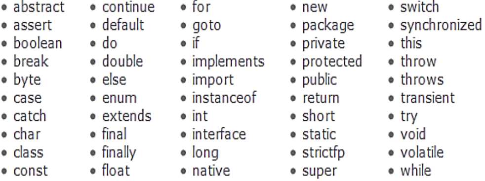 <p>Palabras Reservadas-NetBeans (Java)</p><p>Funcionalidades:</p><p>Abstract</p><p>Se utilizan para implementar una abstracción en Java. Un método sin definición</p><p>debe declararse como abstracto y la clase que lo contiene debe declararse como</p><p>abstracto. Las clases abstractas no pueden ser instanciadas. Los métodos</p><p>abstractos deben ser implementados en las subclases. La palabra clave abstract no</p><p>se puede utilizar con variables o constructores. Tenga en cuenta que no se requiere</p><p>que una clase abstracta tenga un método abstracto en absoluto.</p><p>assert</p><p>Assert describe un predicado (una declaración de verdadero / falso) colocado en un</p><p>programa Java para indicar que el desarrollador piensa que el predicado siempre</p><p>es verdadero en ese lugar. Si una aserción se evalúa como falsa en tiempo de</p><p>ejecución, se produce un error de aserción, que normalmente hace que la ejecución</p><p>se anule. Opcionalmente habilitar por el método ClassLoader.</p><p>boolean</p><p>Define una variable booleana para los valores "true" o "false" solamente. Por</p><p>defecto, el valor del tipo primitivo booleano es falso. Esta palabra clave también se</p><p>usa para declarar que un método devuelve un valor del tipo primitivo booleano.</p><p>break</p><p>Se utiliza para finalizar la ejecución en el cuerpo del bucle actual.</p><p>byte</p><p>La palabra clave byte se utiliza para declarar un campo que puede contener un</p><p>entero de complemento de dos con signo de 8 bits. Esta palabra clave también se</p><p>utiliza para declarar que un método devuelve un valor del byte tipo primitivo.</p><p>case</p><p>Una declaración en el bloque de conmutación se puede etiquetar con una o más</p><p>etiquetas de case. La instrucción switch evalúa su expresión, luego ejecuta todas</p><p>las declaraciones que siguen la etiqueta de caso correspondiente.</p><p>catch</p><p>Se usa junto con un bloque de prueba y un bloque finalmente opcional. Las</p><p>declaraciones en el bloque catch especifican qué hacer si el bloque try lanza un tipo</p><p>específico de excepción.</p><p>char</p><p>Define una variable de carácter capaz de contener cualquier carácter del conjunto</p><p>de caracteres del archivo fuente Java.</p><p>class</p><p>Un tipo que define la implementación de un tipo particular de objeto. Una definición</p><p>de clase define los campos de instancia y clase, los métodos y las clases internas,</p><p>además de especificar las interfaces que implementa la clase y la superclase</p><p>inmediata de la clase. Si la superclase no se especifica explícitamente, la superclase</p><p>es implícitamente Object. La palabra clave de clase también se puede utilizar en el</p><p>formulario Class.class para obtener un objeto Class sin necesidad de una instancia</p><p>de esa clase. Por ejemplo, String.class se puede usar en lugar de hacer una nueva</p><p>String (). GetClass ().</p><p>continue</p><p>Se utiliza para reanudar la ejecución del programa al final del cuerpo del bucle</p><p>actual. Si le sigue una etiqueta, continúe con la ejecución de reanudación al final del</p><p>cuerpo del bucle etiquetado adjunto.</p><p>default</p><p>La palabra clave default se puede usar opcionalmente en una instrucción de cambio</p><p>para etiquetar un bloque de instrucciones que se ejecutarán si ningún caso coincide</p><p>con el valor especificado; ver interruptor. Alternativamente, la palabra clave</p><p>predeterminada también se puede utilizar para declarar valores predeterminados en</p><p>una anotación de Java. Desde Java 8 en adelante, la palabra clave predeterminada</p><p>se puede usar para permitir que una interfaz proporcione una implementación de un</p><p>método.</p><p>do</p><p>La palabra clave do se usa junto con while para crear un bucle do-while, que ejecuta</p><p>un bloque de sentencias asociadas con el bucle y luego prueba una expresión</p><p>booleana asociada con while. Si la expresión se evalúa como verdadera, el bloque</p><p>se ejecuta de nuevo; esto continúa hasta que la expresión se evalúa como falsa.</p><p>double</p><p>La palabra clave double se usa para declarar una variable que puede contener un</p><p>número de punto flotante IEEE 754 de doble precisión de 64 bits. Esta palabra clave</p><p>también se usa para declarar un método que devuelve un valor del tipo primitivo</p><p>double.</p><p>else</p><p>La palabra clave else se usa junto con if para crear una sentencia if-else, que pruebe</p><p>una expresión booleana; si la expresión se evalúa como verdadera, se evalúa el</p><p>bloque de instrucciones asociadas con el if; si se evalúa como falso, se evalúa el</p><p>bloque de declaraciones asociadas con else.</p><p>enum (agregada en J2SE 5.0)</p><p>Una palabra clave de Java utilizada para declarar un tipo enumerado. Las</p><p>enumeraciones amplían la clase base Enum.</p><p>exports</p><p>Se utiliza en java modular para exportar un paquete con un módulo. Esta palabra</p><p>clave sólo está disponible en Java 9 y versiones posteriores.</p><p>extends</p><p>Se utiliza en una declaración de clase para especificar la superclase; utilizado en</p><p>una declaración de interfaz para especificar una o más superinterfaces. La clase X</p><p>extiende la clase Y para agregar funcionalidad, ya sea agregando campos o</p><p>métodos a la clase Y, o reemplazando los métodos de la clase Y. Una interfaz Z</p><p>extiende una o más interfaces al agregar métodos. Se dice que la clase X es una</p><p>subclase de la clase Y; Se dice que la interfaz Z es una subinterfaz de las interfaces</p><p>que se extiende. También se usa para especificar un límite superior en un parámetro</p><p>de tipo en Genéricos.</p><p>final</p><p>Defina una entidad una vez que no se puede cambiar ni derivar de más adelante.</p><p>Más específicamente: una clase final no puede ser subclasificada, un método final</p><p>no puede ser anulado, y una variable final puede aparecer como máximo u