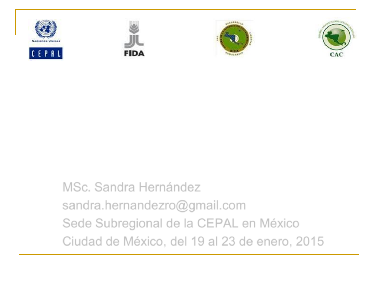 <p>1</p><p>Análisis de Series de Tiempo</p><p>MSc. Sandra Hernández</p><p>sandra.hernandezro@gmail.com</p><p>Sede Subregional de la CEPAL en México</p><p>Ciudad de México, del 19 al 23 de enero, 2015</p><p>CURSO REGIONAL SOBRE HOJA DE BALANCE DE ALIMENTOS,</p><p>SERIES DE TIEMPO Y ANÁLISIS DE POLÍTICA</p><p>2</p><p>Tema II: Los modelos</p><p>ARIMA univariantes</p><p>2</p><p>Análisis de Series de Tiempo</p><p>Tema II: Modelos ARIMA</p><p>1.Modelos ARIMA univariantes (etapas)</p><p>Box y Jenkins 70´s</p><p>Identificación</p><p>p, d, q</p><p>Estimación</p><p>Verificación Pronóstico</p><p>3</p><p>Si No</p><p>Utilizan únicamente el pasado</p><p>de la serie para predecir.</p><p>Esto los hace muy baratos y</p><p>rápidos de construir.</p><p>Sirven de punto de referencia</p><p>3</p><p>Análisis de Series de Tiempo</p><p>Tema II: Modelos ARIMA</p><p>4</p><p>2.Descripción Modelos ARIMA</p><p>q: orden del polinomio Q(B)</p><p>p: orden del polinomio F(B)</p><p>B: operador de rezagos (Backshift) ktt</p><p>k ZZB </p><p>tt aBZB )()( QF </p><p>)...1()( 2</p><p>21</p><p>q</p><p>q BBBB QQQQ</p><p>)...1()( 2</p><p>21</p><p>p</p><p>p BBBB FFFF</p><p>4</p><p>Donde:</p><p>Q(B) es el polinomio de rezagos en at</p><p>F(B) es el polinomio de rezagos en Zt</p><p>Fi y Qi son los ponderadores poblacionales AR y MA</p><p>(fi y qi son los estimadores muestrales de AR y MA)</p><p> es la media de Zt (c es el estimador muestral)</p><p>Análisis de Series de Tiempo</p><p>Tema II: Modelos ARIMA</p><p>5</p><p>3.Los modelos autorregresivos AR(p)</p><p>tt aZB F )(</p><p>tt</p><p>p</p><p>p acZBBB )...1( 2</p><p>21 fff</p><p>tptpttt azzzcZ fff ...2211</p><p>tt acZB )1( 1f</p><p>ttt azcz 11f</p><p>El caso de un AR(1):</p><p>11 1 f</p><p>tt acZBB )1( 2</p><p>21 ff</p><p>tttt azzcz 2211 ff</p><p>El caso de un AR(2):</p><p>11 2 f</p><p>112 ff</p><p>112 ff</p><p>Análisis de Series de Tiempo</p><p>Tema II: Modelos ARIMA</p><p>6</p><p>4.Los modelos de medias móviles MA(q)</p><p>tt aBZ )(Q </p><p>t</p><p>q</p><p>qt aBBBcZ )...1( 2</p><p>21 qqq </p><p>tt aBcZ )1( 1q</p><p>tt aBBcZ )1( 2</p><p>21 qq </p><p>11 ttt aacZ q</p><p>2211 tttt aaacZ qq</p><p>El caso de un MA(1):</p><p>El caso de un MA(2):</p><p>qtqtttt aaaacZ qqq ...2211</p><p>11 1 q</p><p>11 2 q</p><p>112 qq</p><p>112 qq</p><p>Análisis de Series de Tiempo</p><p>Tema II: Modelos ARIMA</p><p>7</p><p>5.Los modelos mixtos AR(p) MA(q): ejemplos</p><p> MA(1) AR(0)</p><p> MA(0) AR(1)</p><p> MA(1) AR(1)</p><p>tt aBZB )()( QF </p><p>11 ttt aaz q</p><p>ttt azz 11f</p><p>p: orden del polinomio F(B)</p><p>q: orden del polinomio Q(B)</p><p>1111 tttt aazz qf</p><p>Análisis de Series de Tiempo</p><p>Tema II: Modelos ARIMA</p><p>8</p><p>6.Si la serie tiene estacionalidad…</p><p>tt aBsBΘZBsB )()()()( QFF </p><p>regular estacional regular estacional</p><p>8</p><p>)...1()( 2</p><p>21</p><p>Ps</p><p>P</p><p>ss</p><p>s BBBB FFFF</p><p>)...1()( 2</p><p>21</p><p>Qs</p><p>Q</p><p>ss</p><p>s BBBB QQQQ</p><p>q: orden del polinomio Q(B)</p><p>p: orden del polinomio F(B)</p><p>Q: orden del polinomio Qs(B)</p><p>P: orden del polinomio Fs(B)</p><p>Análisis de Series de Tiempo</p><p>Tema II: Modelos ARIMA</p><p>9</p><p>7.Ejemplos con estacionalidad</p><p> MA(1) MA(12)</p><p>q=1, Q=1, p=0, P=0, s=12</p><p> AR(1) AR(12)</p><p>q=0, Q=0, p=1, P=1, s=12</p><p> AR(1) MA(12)</p><p>q=0, Q=1, p=1, P=0, s=12</p><p>tt aBZB )1()1( 12</p><p>121 qf </p><p>tt aBBZ )1)(1( 12</p><p>21 qq </p><p>tt aBsBΘZBsB )()()()( QFF </p><p>regular estacional regular estacional</p><p>tt aZBB )1)(1( 12</p><p>121 ff</p><p>Análisis de Series de Tiempo</p><p>Tema II: Modelos ARIMA</p><p>10</p><p>ARIMA (p,d,q) (P,D,Q)</p><p>p,P: # parámetros AR</p><p>d,D: # de diferenciaciones I</p><p>q,Q: # parámetros MA</p><p>Parte regular parte estacional</p><p>o tendencia</p><p>Regulares o</p><p>estacionales</p><p>Ejemplos:</p><p>MA(1) o ARIMA (0,0,1)(0,0,0)</p><p>AR(1) o ARIMA (1,0,0)(0,0,0)</p><p>MA(1) MA(12) o ARIMA(0,0,1)(0,0,1)</p><p>10</p><p>8.Notación general (Box Jenkins)</p><p>Análisis de Series de Tiempo</p><p>Tema II: Modelos ARIMA</p><p>11</p><p>9.Casos especiales</p><p> Ruido blanco (white noise): Zt = at ARIMA(0,0,0)</p><p>at es un componente aleatorio que tiene media cero y varianza</p><p>constante s2</p><p>a. La historia no brinda ninguna información.</p><p> Camino aleatorio (random walk): Zt= Zt-1 + at ARIMA (0,1,0)</p><p>donde: Zt - Zt-1 = at ,con at ruido blanco</p><p>el mejor pronóstico de t+1 es el valor observado en t.</p><p>11</p><p>Ruido blanco Camino aleatorio</p><p>estacionaria no estacionaria</p><p>Análisis de Series de Tiempo</p><p>Tema II: Modelos ARIMA</p><p>12</p><p>10.Supuestos del modelo ARIMA</p><p> Estacionariedad en la serie</p><p> media constante I(0) E(zt)=E(zt+m)</p><p> variancia constante E(zt-)2=E(zt+m-)2</p><p> Función de autocorrelación constante a través del tiempo</p><p> Invertibilidad del modelo</p><p> Cuando los pesos de las observaciones pasadas disminuyen con</p><p>el tiempo. Se consigue cuando q2.</p><p>Serie no estacionaria</p><p>en la variancia</p><p>Diferenciaciones</p><p>Logaritmos</p><p>t</p><p>t</p><p>tt Y</p><p>Y</p><p>YY</p><p>ln</p><p>1</p><p>1 D</p><p></p><p></p><p></p><p>13</p><p>tt aBsBΘYBBsB )()()1)(()( QFF </p><p>Se requiere para que las estimaciones de los parámetros sean útiles. De otra</p><p>forma, no se podrían calcular medias y variancias conforme la serie va creciendo</p><p>Análisis de Series de Tiempo</p><p>Tema II: Modelos ARIMA</p><p>14</p><p>11.1.Ejemplo transformación de los datos</p><p>14</p><p>-80000</p><p>-60000</p><p>-40000</p><p>-20000</p><p>0</p><p>20000</p><p>40000</p><p>60000</p><p>80000</p><p>1990 1991 1992 1993 1994 1995 1996 1997 1998 1999 2000 2001 2002 2003 2004 2005 2006 2007 2008</p><p>Primera diferencia</p><p>4</p><p>4.2</p><p>4.4</p><p>4.6</p><p>4.8</p><p>5</p><p>5.2</p><p>5.4</p><p>5.6</p><p>5.8</p><p>6</p><p>1990 1991 1992 1993 1994 1995 1996 1997 1998 1999 2000 2001 2002 2003 2004 2005 2006 2007 2008</p><p>Logaritmo</p><p>