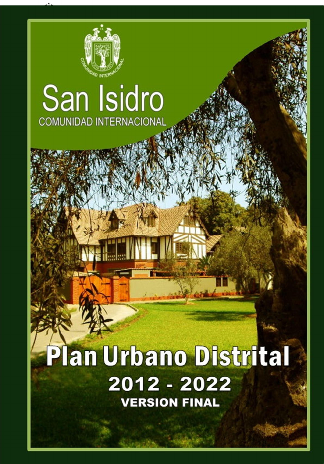 Plan Urbano Distrital de San Isidro 2012-2022 1 Plan Urbano Distrital de San Isidro 2012-2022 2 PRESENTACIÓN 6 INTRODUCCIÓN 7 RESUMEN EJECUTIVO 9 CAPÍTULO I CONSIDERACIONES GENERALES DEL PLAN 1.1 Objetivos 1.1.1 Objetivo General 32 1.1.2 Objetivos Específicos 32 1.2 Marco Conceptual 1.2.1 Marco Conceptual 33 1.2.2 Ámbito de Intervención 34 1.2.3 Horizontes de Planeamiento y Ejecución 35 1.2.4 Metodología de elaboración del Plan 35 1.2.5 Glosario de Términos 37 1.3 Marco Normativo 38 CAPÍTULO II INFORMACIÓN GENERAL DEL DISTRITO 2.1 Creación Política del distrito 49 2.2 Ubicación geográfica 49 2.3 Demarcación política y límites distritales 49 2.4 Reseña Histórica 50 2.5 Extensión 52 2.6 Altitud 52 2.7 Clima 52 2.8 Relieve y suelo 53 2.9 Geomorfología y geotecnia 53 ÍNDICE Plan Urbano Distrital de San Isidro 2012-2022 3 CAPÍTULO III DIAGNÓSTICO URBANO DISTRITAL 3.1 Evolución Urbana 56 3.2 El Crecimiento Urbano 61 3.2.1 Rol y función de San Isidro en el contexto metropolitano 69 3.2.2 Caracterización Urbana Distrital. 70 3.2.3 Caracterización Demográfica 89 3.2.4 Caracterización Económica - Urbana 92 3.2.5 Caracterización Social 104 3.3 La Vialidad y el Tránsito Vehicular Local 108 3.3.1 Vialidad 109 3.3.2 Transporte 113 3.3.3 Tránsito 124 3.4 Los Retiros, Alturas y Áreas Libres de las edificaciones 3.4.1 Los Retiros Municipales 136 3.4.2 Alturas de edificación, procesos y tendencias 139 3.4.3 Áreas libres de edificaciones 155 3.5 El Ornato y Mobiliario Urbano 157 3.6 Estacionamientos en Zonas Comerciales y Residenciales 162 3.7 Identificación de Áreas Públicas Aptas para la Inversión Privada 168 3.8 Identificación de Zonas de Reglamentación Especial (ZRE) 178 CAPÍTULO IV PROPUESTA URBANA 4.1 Planteamiento de Escenarios, Visión de Desarrollo y Organización Espacial 185 4.2 Propuestas por aspectos del Plan Urbano Distrital 194 4.2.1 Relativas al Crecimiento Urbano Distrital 194 4.2.2 Vialidad y Tránsito Vehicular Local – Movilidad Urbana 199 Plan Urbano Distrital de San Isidro 2012-2022 4 4.2.3 Relativas a los Retiros Municipales, Alturas de Edificación y Áreas Libres de las edificaciones 203 4.2.4 Relativas al Ornato y Mobiliario Urbano 208 4.2.5 Relativas a la dotación de estacionamientos en las Zonas Comerciales y Residenciales 215 4.2.6 Relativas a la Identificación de Áreas Públicas aptas para la Inversión Privada 217 4.2.7 Relativas a la Identificación de Zonas de Reglamentación Especial 218 CAPÍTULO V PROGRAMAS DE INVERSIONES URBANAS 5.1 Definición de actividades y/o proyectos 223 CAPÍTULO VI INSTRUMENTACIÓN DEL PLAN 6.1 Instrumentos de Gestión Urbana 226 ANEXO N° 01 Relación de Planos ANEXO N° 02 Programas de Inversiones Urbanas Plan Urbano Distrital de San Isidro 2012-2022 5 RELACIÓN DE PLANOS Plano N° 1: San Isidro en el Contexto Metropolitano Plano Nº 2: Evolución Urbana distrito de San Isidro 1920 – 2000 Plano N° 3: Configuración Físico Espacial del Distrito Plano Nº 4: Estructura Urbana de San Isidro Plano N° 5: Caracterización y Problemática Urbana - Sector 01 Plano Nº 6: Caracterización y Problemática Urbana - Sector 02 Plano Nº 7: Caracterización y problemática Urbana - Sector 03 Plano Nº 8: Caracterización y problemática Urbana - Sector 04 Plano Nº 9: Caracterización y Problemática Urbana - Sector 05 Plano Nº 10: Sectorización Urbana Plano Nº 11: Plano de Alturas Temático Plano Nº 12: Plano de Alturas de Edificación - Sector 01 Plano Nº 13: Plano de Alturas de Edificación - Sector 02 Plano Nº 14: Plano de Alturas de Edificación - Sector 03 Plano Nº 15: Plano de Alturas de Edificación - Sector 04 Plano Nº 16: Plano de Alturas de Edificación - Sector 05 Plano N° 17: Plano de Alturas de Edificación Vigente Plano N° 18: Plano de origen y destino de San Isidro Plano N° 19: Identificación de Centros Atractores de Flujos Vehiculares Plano N° 20: Plano de Flujos de Población Flotante Plano N° 21: Plano de Diagnóstico Sistema Vial Plano N° 22: Identificación de Rutas Alternas Vehiculares S-N Plano N° 23: Identificación de Rutas Alternas Vehiculares N-S Plano N° 24: Identificación de Rutas Alternas Vehiculares O-E Plano N° 25: Identificación de Rutas Alternas Vehiculares E-O Plano N° 26: Intersecciones de Vías Líneas de Transporte Plano N° 27: Rutas Transporte de Carga Pesada Plano N° 28: Identificación de Mayor Demanda y Oferta de Taxistas y Paraderos Plano N° 29: Semaforización por Sectores Plano N° 30: Intersecciones de Vías Paraderos Autorizados por GTU Plano N° 31: Identificación de Posibles Áreas Disponibles para Estacionamiento Plano N° 32: Intersecciones de Vías de Capacidad Según número de Carriles Plano N° 33: Intersecciones de Vías Niveles de Servicio Plano N° 34: Plano de Nodos de Conflictos Peatonales Plano N° 35: Plano Crecimiento de Alturas Plano N° 36: Plano Propuesta Mobiliario Urbano Plano N° 37: Circuitos Turísticos Culturales Plano N° 38: Áreas de Interés para la Inversión Privada Plano N° 39: Zona de Reglamentación Especial ANEXO N° 01 Plan Urbano Distrital de San Isidro 2012-2022 6 El Distrito de San Isidro es una de las áreas urbanas más importantes y valiosas de la ciudad de Lima, donde concurren significativas inversiones, dadas las inmejorables condiciones que tiene el Distrito de accesibilidad, privacidad, paisaje urbano, medio ambiente y seguridad. Consecuentemente, la Municipalidad de San Isidro, se ha propuesto llevar a cabo una Gestión Municipal de excelencia que consolide el rol urbanístico de los agentes que intervienen en el sostenimiento de la calidad ambiental en el Distrito, para un manejo eficiente en el proceso del mejoramiento urbano en el marco del Plan Urbano Distrital, reafirmando la voluntad y expectativas de los vecinos, ante la necesidad de cumplir con los objetivos estratégicos que permitan consolidar a San Isidro como un lugar amable, armónico moderno y seguro para vivir. Se tiene