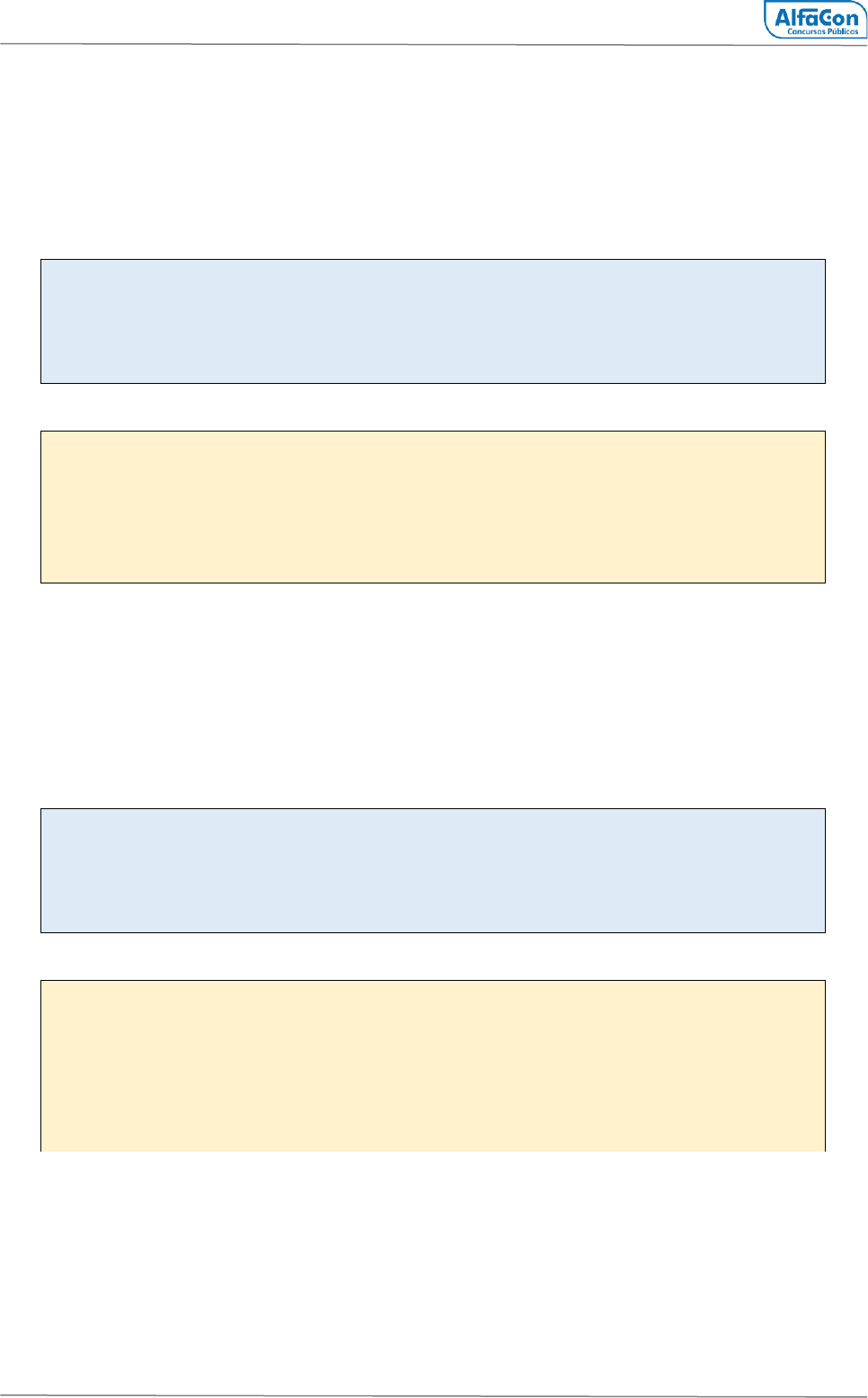 alfaconcursos.com.br MUDE SUA VIDA! 14 O _____ é uma aplicação que funciona sobre o protocolo TCP e pode ser utilizada para copiar arquivos entre máquinas ligadas à Internet. A) NTP B) FTP C) DHCP D) FSP SOLUÇÃO RÁPIDA Gabarito: Letra B O protocolo usado para a transmissão de arquivos em uma rede ou na Internet é o protocolo FTP. SOLUÇÃO COMPLETA O Protocolo FTP é utilizado para a transmissão de arquivos em uma rede ou na Internet, através dele é possível fazer Download e Upload de arquivos. O FTP usa a porta 20 para transmitir os dados e porta 21 para controle de comunicação na camada de transporte. 18 – ANO: 2020 Banca: IBFC Órgão: TRE - PA PROVA: Técnico Judiciário Quanto à comunicação por voz baseada no Protocolo de Internet, assinale a alternativa correta. A) Intranet B) TCP/IP C) VoIP D) Outlook SOLUÇÃO RÁPIDA Gabarito: Letra C O serviço que permite a conversação de voz através da Rede ou da Internet é o VOIP (voz sobre IP). SOLUÇÃO COMPLETA Protocolo e serviço VoIP (Voice over Internet Protocol) também chamado de voz sobre IP, ou telefonia IP, ou telefonia Internet, ou telefonia em banda larga ou, ainda, voz sobre banda larga. Em essência, consiste em enviar sinais de voz pela parte da rede de dados, em vez de usar a telefonia tradicional, embora na prática possa, e é comum, envolver as duas estruturas (dados e voz).