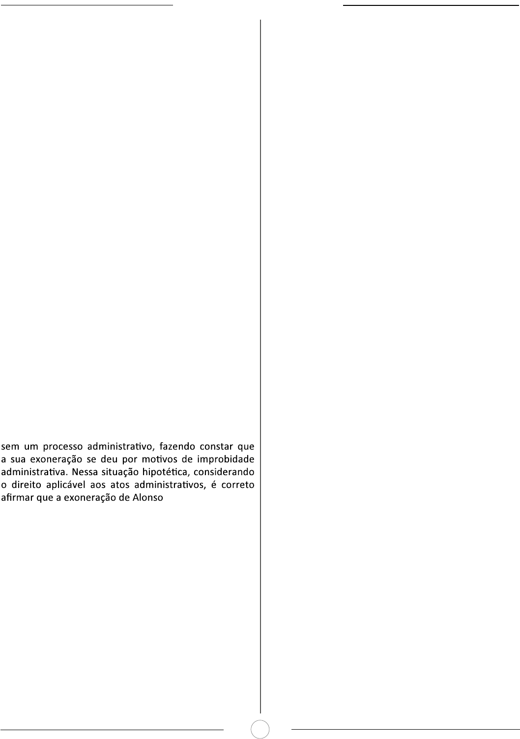 DIREITO ADMINISTRATIVO 9 41. VUNESP - Analista (Pref Ilhabela)/Gestão Pública/Administração Pública/2020 Em havendo ação do Ministério Público que redundou na comprovação de ato da administração pública indevido, portanto, ilegal ou ilegítimo, deverá, após os devidos procedimentos, tal ato ser (A) cancelado. (B) neutralizado. (C) postergado. (D) revogado. (E) anulado. 42. VUNESP - Procurador Jurídico (AVAREPREV)/2020 Assinale a alternativa correta a respeito da convalidação do ato administrativo. (A) A convalidação não terá efeitos retroativos. (B) Os vícios de forma e de procedimento são, em regra, passíveis de convalidação. (C) Se a convalidação não for possível, a Administração não estará obrigada a invalidar o ato. (D) É discricionária a convalidação de ato viciado em relação à sua finalidade ou seu objeto. (E) A questão de eventual existência de má-fé em relação ao ato não interfere na viabilidade da sua convalidação. 43. VUNESP - Analista (Pref Morro Agudo)/ Legislativo/2020 Alonso é servidor público ocupante de cargo em comissão de livre nomeação e exoneração. Seu superior que o nomeou para o cargo, descontente com o seu desempenho, resolveu dispensar Alonso de suas funções, (A) pode ser considerada legal, desde que o motivo alegado pelo seu superior corresponda à verdade. (B) não se deu dentro da legalidade, uma vez que Alonso, nesse caso, somente poderia ser dispensado pelo Poder Judiciário. (C) não poderá ser considerada legal se o motivo da dispensa não foi aquele que constou do ato de exoneração, por violar o princípio da motivação. (D) deve ser considerada legal, ainda que o motivo da exoneração não tenha sido por improbidade, uma vez que a dispensa do cargo em comissão não exige motivação. (E) foi ilegal, uma vez que a exoneração de qualquer cargo público, ainda que de cargo em comissão, depende da conclusão e da decisão do respectivo processo administrativo. 44. VUNESP - Analista de Gestão (FITO)/Recursos Humanos/2020 Um dos poderes do administrador público é aquele pelo qual possui uma razoável liberdade de atuação, agindo de acordo com liberdade de escolha de sua conveniência, oportunidade e conteúdo. O nome desse poder é (A) hierárquico. (B) vinculado. (C) discricionário. (D) disciplinar. (E) regulamentar. 45. VUNESP - Agente (CM Boituva)/ Administrativo/2020 Os poderes administrativos, que delimitam os deveres do administrador público, são prerrogativas outorgadas aos seus agentes que devem exercê-los, com o fim de preservação dos interesses da sociedade. Para esse exercício dos poderes pelos agentes, há a obrigatoriedade de que seja irrenunciável, e é dividido em seis formas de poder. O poder vinculado é aquele que (A) permite distribuir e escalonar as funções de seus órgãos, ordenar e rever a atuação de seus agentes. (B) concede aos agentes a faculdade de aplicar penalidades às infrações funcionais de seus servidores e demais pessoas ligadas à disciplina dos órgãos e serviços da Administração. (C) permite aos agentes que condicionem e restrinjam o uso e gozo de bens, atividades e direitos individuais, em benefício do interesse público. (D) deve ser praticado de acordo com a lei, sem qualquer margem de liberdade. (E) permite aos agentes, de modo explícito ou implícito, praticar atos administrativos com liberdade de escolha de sua conveniência, oportunidade e conteúdo. 46. VUNESP - Analista de Benefícios Previdenciários (VALIPREV)/2020 É o de que dispõe a Administração para distribuir e escalonar as funções de seus órgãos, ordenar e rever a atuação de seus agentes estabelecendo a relação de subordinação entre os servidores de seu quadro de pessoal. Dele decorrem algumas prerrogativas: delegar e avocar atribuições, dar ordens, fiscalizar e rever atividades de órgãos inferiores. É correto afirmar que o texto do enunciado se refere ao poder