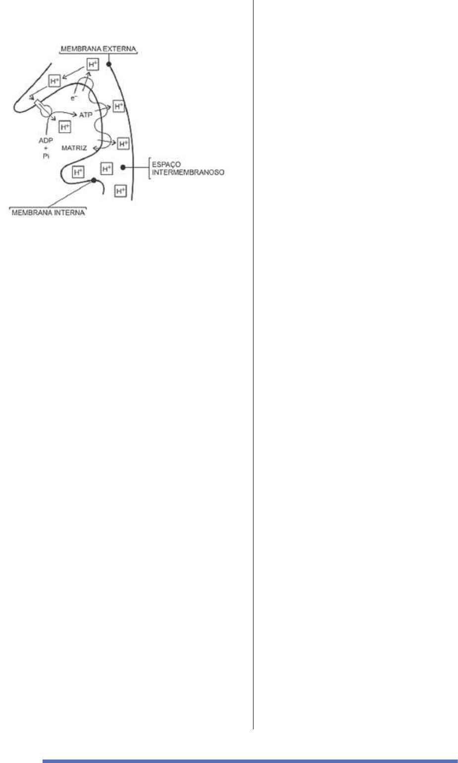 5 19 – (Uesb) A imagem ilustra a produção de ATP em um ambiente membranoso no interior de uma determinada organela presente em células eucarióticas. A respeito desse processo metabólico ilustrado, é correto afirmar: a) Representa a etapa da glicólise, conjunto de reações essenciais ao processo da respiração celular. b) É um processo gerador de um gradiente de prótons no espaço intermembranoso para posterior ativação da enzima ATP sintetase responsável por intensa fosforilação oxidativa. c) A energia luminosa captada pela clorofila presente no estroma dos cloroplastos é utilizada para acumular H+ no espaço intermembranoso através do consumo de moléculas de ATP. d) Os polissomos aderidos à membrana do retículo endoplasmático encadeiam aminoácidos na formação de novas moléculas de proteínas a serem exportadas pelo complexo golgiense. e) As enzimas hidrolíticas presentes no interior dos lisossomos irão se unir ao material englobado do fagossomo com intenso deslocamento de moléculas de ATP. 20 – (Enem) O 2,4-dinitrofenol (DNP) é conhecido como desacoplador da cadeia de elétrons na mitocôndria e apresenta um efeito emagrecedor. Contudo, por ser perigoso e pela ocorrência de casos letais, seu uso como medicamento é proibido em diversos países, inclusive no Brasil. Na mitocôndria, essa substância captura, no espaço intermembranas, prótons (H+) provenientes da atividade das proteínas da cadeia respiratória, retornando-os à matriz mitocondrial. Assim, esses prótons não passam pelo transporte enzimático na membrana interna. GRUNDLINGH, J. et al. 2,4-Dinitrophenol (DNP): a W eight Loss Agent with Significant Acute Toxicity and Risk of Death. Journal of Medical Toxicology, v. 7, 2011 (adaptado). O efeito emagrecedor desse composto está relacionado ao(à) a) obstrução da cadeia respiratória, resultando em maior consumo celular de ácidos graxos. b) bloqueio das reações do ciclo de Krebs, resultando em maior gasto celular de energia. c) diminuição da produção de acetil CoA, resultando em maior gasto celular de piruvato. d) inibição da glicólise, resultando em maior absorção celular da glicose sanguínea. e) redução da produção de ATP, resultando em maior gasto celular de nutrientes. 21 – (Fmj) Com relação ao papel desacoplador, como o dinitrofenol, na fosforilação oxidativa, é correto afirmar que: a) inibe o transporte de elétrons e a síntese de ATP. b) permite que o transporte de elétrons ocorra sem síntese de ATP. c) inibe o transporte de elétrons sem prejuízo da síntese de ATP. d) inibe especificamente a citocromo b. e) atua como inibidor competitivo as reações que requerem NAD+ na mitocôndria. 22 – (Unifor) Cientistas descobriram um mecanismo biológico que transforma gordura branca em gordura marrom. A primeira acumula energia no corpo e está associada à obesidade; a segunda está ligada à regulação da temperatura. Esta descoberta representa uma estratégia para combater a obesidade. Disponível em: Revista Planeta Nov. 2011. Ano 39. Edição 470 (com adaptações) O mecanismo de regulação da temperatura realizado pela gordura marrom está associado à: a) A utilização de ATP (trifosfato de adenosina) para produção de calor. b) A presença de termogenina, uma proteína desacopladora. c) A inibição da cadeia transportadora de elétrons na mitocôndria, dissipando calor. d) A ativação da fosforilação oxidativa na matriz mitocondrial. e) A hidrólise de ATP (trifosfato de adenosina) em ADP (difosfato de adenosina) liberando calor. 23 – (Uerj) As concentrações de ATP / ADP regulam a velocidade de transporte de elétrons pela cadeia respiratória; em concentrações altas de ATP a velocidade é reduzida, mas aumenta se os níveis de ATP baixam. Na presença de inibidores da respiração, como o cianeto, a passagem de elétrons através da cadeia respiratória é bloqueada. Na presença de desacopladores da fosforilação oxidativa, como o