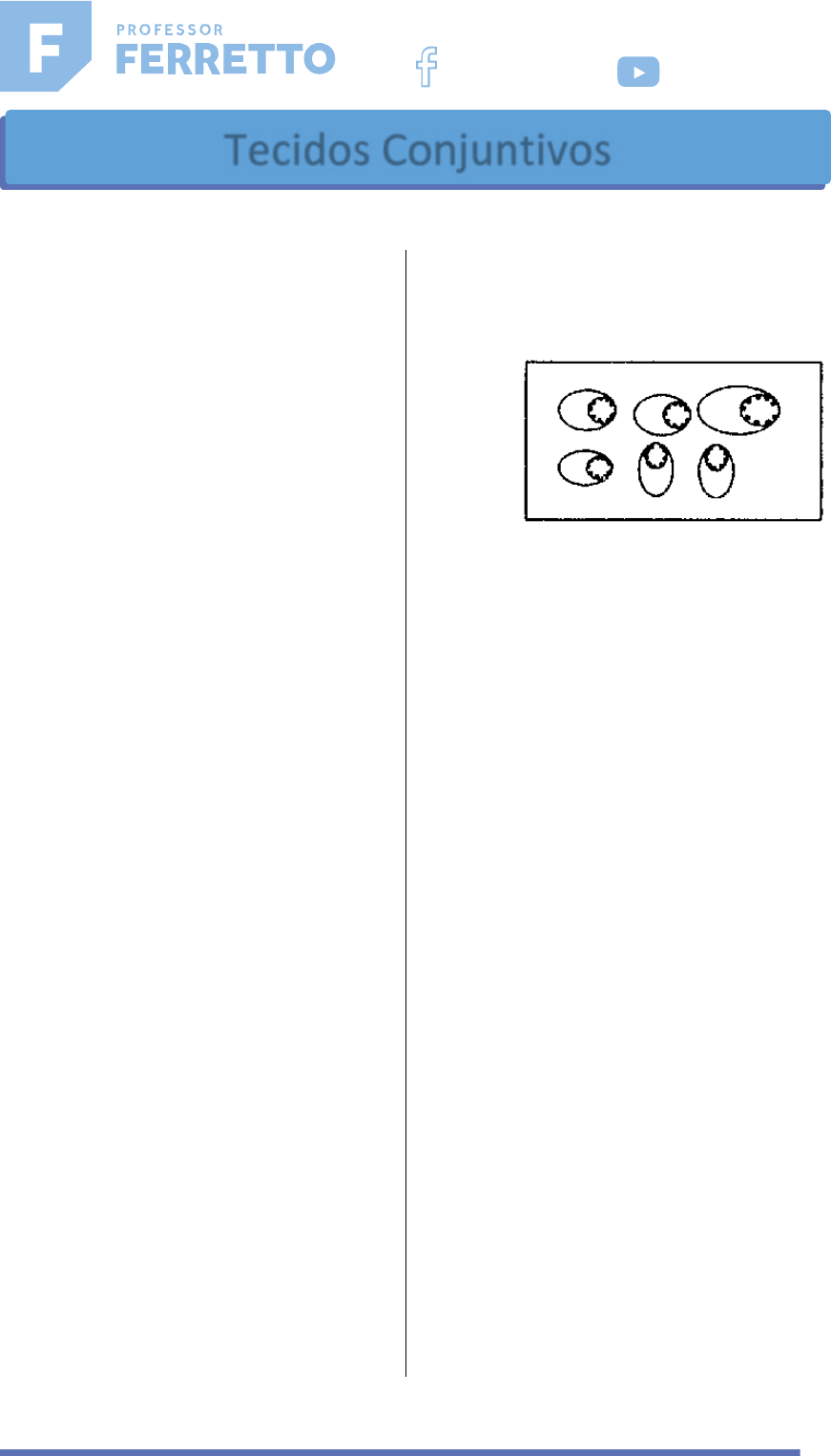 1 01 – (Ufv) Das características a seguir, aquela que é comum a todos os tipos de tecido conjuntivo é: a) possuir grande quantidade de substância intercelular. b) apresentar grande quantidade de fibras elásticas. c) possuir substância intercelular no estado líquido. d) apresentar calcificação ainda no período embrionário. e) apresentar quantidades moderadas de fibras colágenas. 02 – (Ufpb) O nosso corpo é formado por vários tecidos. Um destes, o conjuntivo, tem importantes funções na sustentação e na interação do organismo. São tipos de tecido conjuntivo ou têm esse tecido como principal componente: A) o sangue, os epitélios de revestimento, as glândulas sudoríparas, os tendões, o esqueleto, o pavilhão auditivo. B) o esqueleto, o cérebro, a reserva adiposa, o sangue, os tendões, o revestimento glandular do sistema digestório. C) o esqueleto, a reserva adiposa, o sangue, os tendões, o pavilhão auditivo. D) o esqueleto, o revestimento glandular do tubo digestório, os tendões, o sangue, a reserva adiposa. E) o sangue, as glândulas sudoríparas, o coração, os epitélios de revestimento, os tendões, a derme. 03 – (Fcm) As células que fazem parte do tecido conjuntivo propriamente dito são as seguintes: A) Fibroblastos, macrófagos, plasmócitos e mastócitos. B) Plasmócitos, macrófagos, mastócitos e condrócitos. C) Condrócitos, plasmócitos, macrófagos e basófilos. D) Macrófagos, basófilos, condrócitos e adipócitos. E) Osteoblastos, macrófagos, mastócitos e basófilos. 04 – (Facisa) Dentre as células do tecido conjuntivo, indique a que se apresenta com maior frequência: a) Neutrófilos. b) Macrófago. c) Mastócito. d) Osteócito. e) Fibroblasto. 05 – (Uece) Na figura abaixo, estão representadas as células derivadas de linfócitos, não fagocitárias, mas com grande capacidade de produzir anticorpos. Estas células são: a) macrófagos. b) eosinófilos. c) neutrófilos. d) plasmócitos. 06 – (Unichristus) Alergia ou reação de hipersensibilidade é uma resposta imunológica exagerada, que se desenvolve após a exposição a um determinado antígeno e que ocorre em indivíduos suscetíveis e previamente sensibilizados. Os principais agentes que provocam alergia ou hipersensibilidade são: - Ácaros e baratas. - Mofo (fungos). - Epitélio (pele) e pelos de animais (gatos e cães). - Esporos de fungos e pólen de flores. - Alimentos. - Medicamentos. Disponível em: http://www.minhavida.com.br/saude/temas/alergia. Acesso em: 31 de julho de 2014. Para que ocorra a reação descrita no texto, é necessária a estimulação de células específicas do tecido conjuntivo, as quais são os a) fibroblastos. b) plasmócitos. c) macrófagos. d) mastócitos. e) adipócitos. www.professorferretto.com.br ProfessorFerretto ProfessorFerretto Tecidos Conjuntivos ee